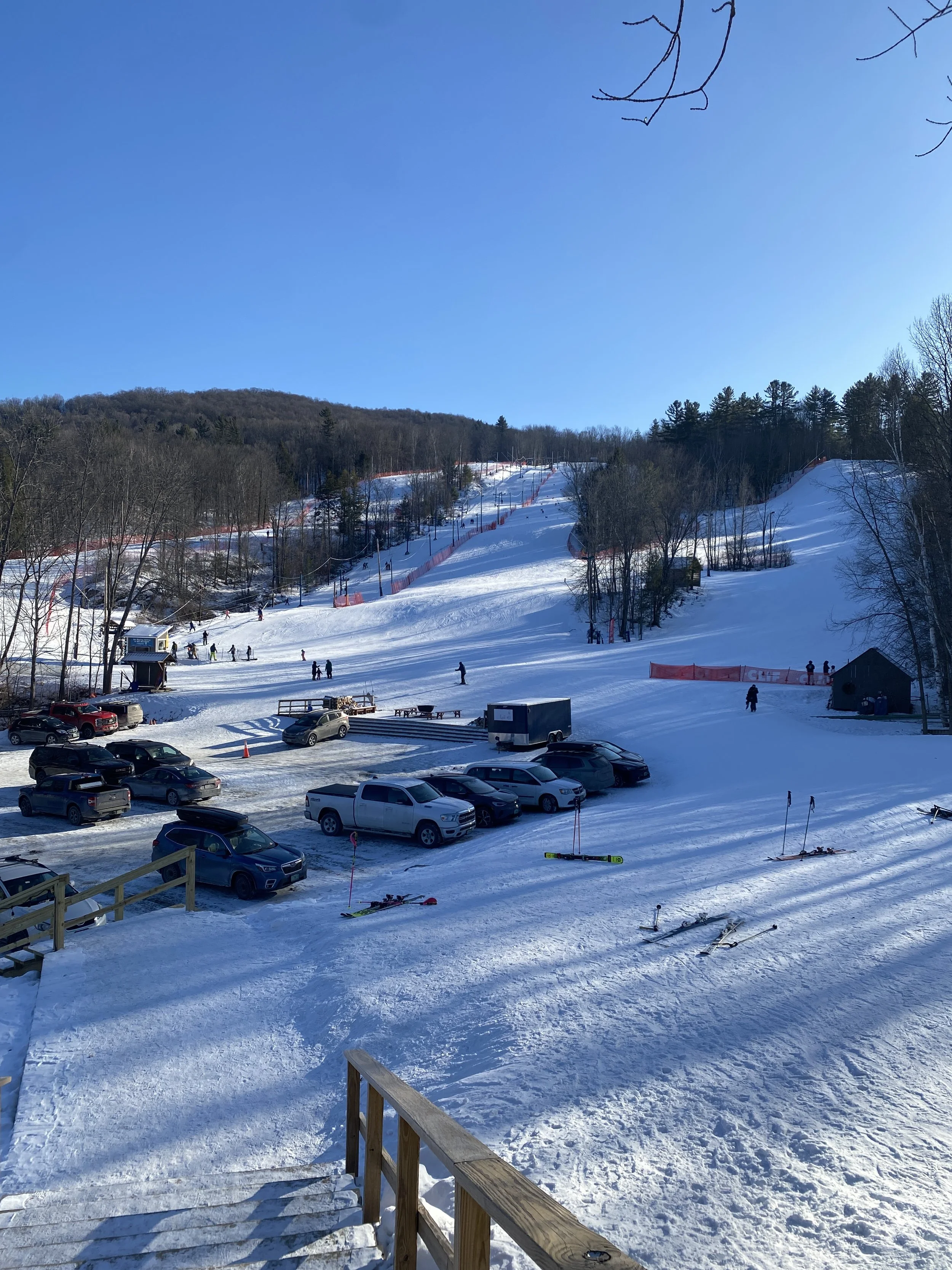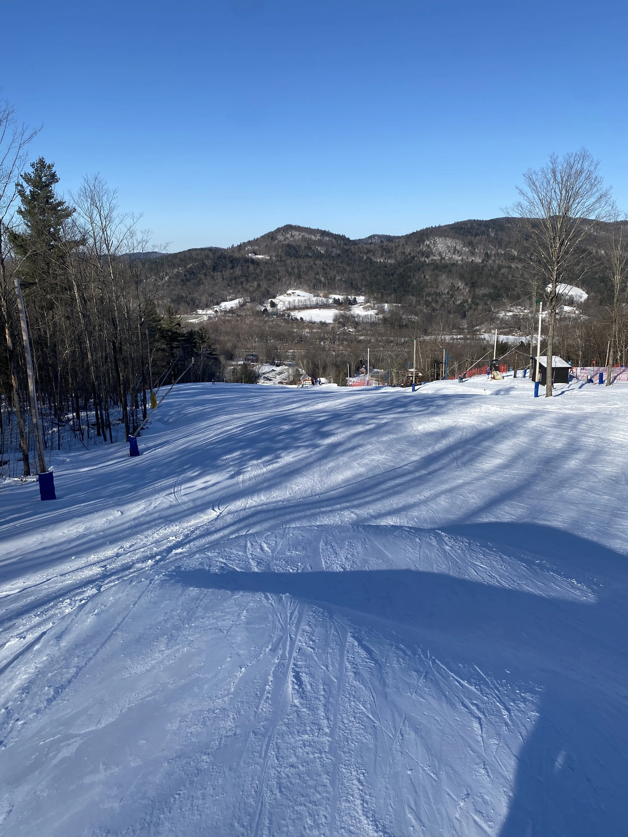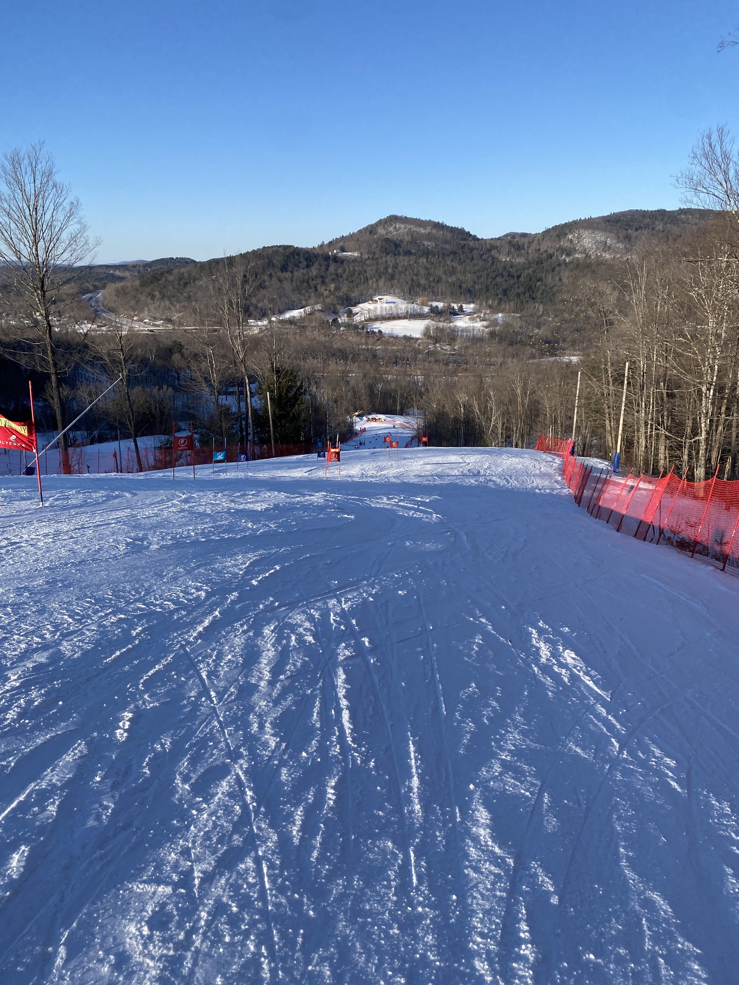 Anyways, I got to the mountain in the afternoon and the place was empty. That tends to be the case everywhere when it’s really cold, in my experience. All the runs on the hill were open, and the snow was great, with packed powder everywhere. There were some firm spots here and there, but nothing too notable. They had racing setup on their trail literally named The Race Trail, as well as the run I-89, which is named after the interstate that’s visible from the ski area. Neither of those trails were closed to the public, though, and I skied each a few times.