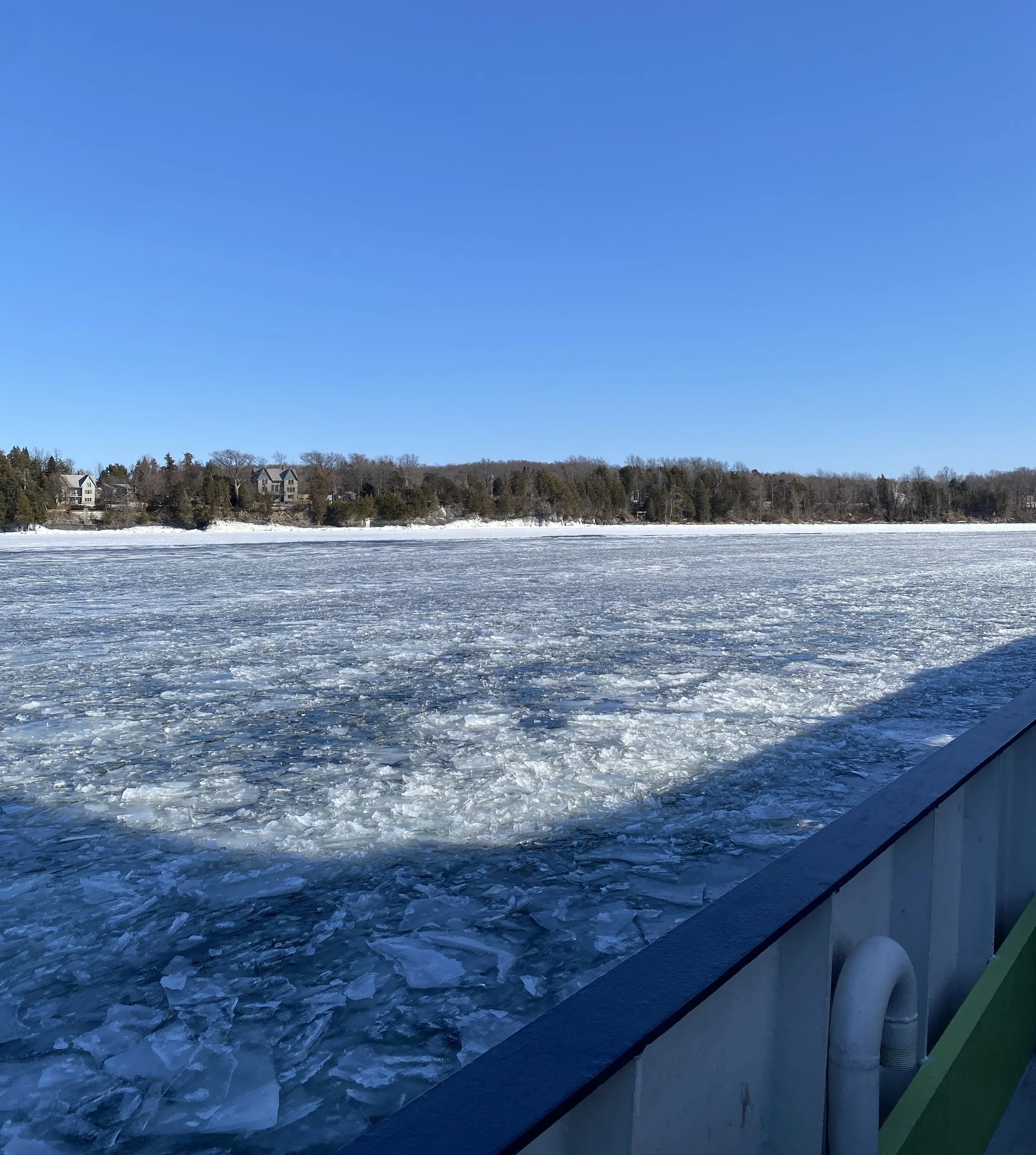 After contemplating not going skiing, because, like I mentioned, I was tired, I decided to head over to Vermont. I don’t normally talk about the ferry I take across Lake Champlain to Vermont in my blog posts, but today I noticed there was a lot more ice on the lake where I cross on the ferry than there was last week. Lake Champlain hasn’t completely iced over since I moved to northern New York more than five years ago. Could this be the year? I guess we will have to wait and see.