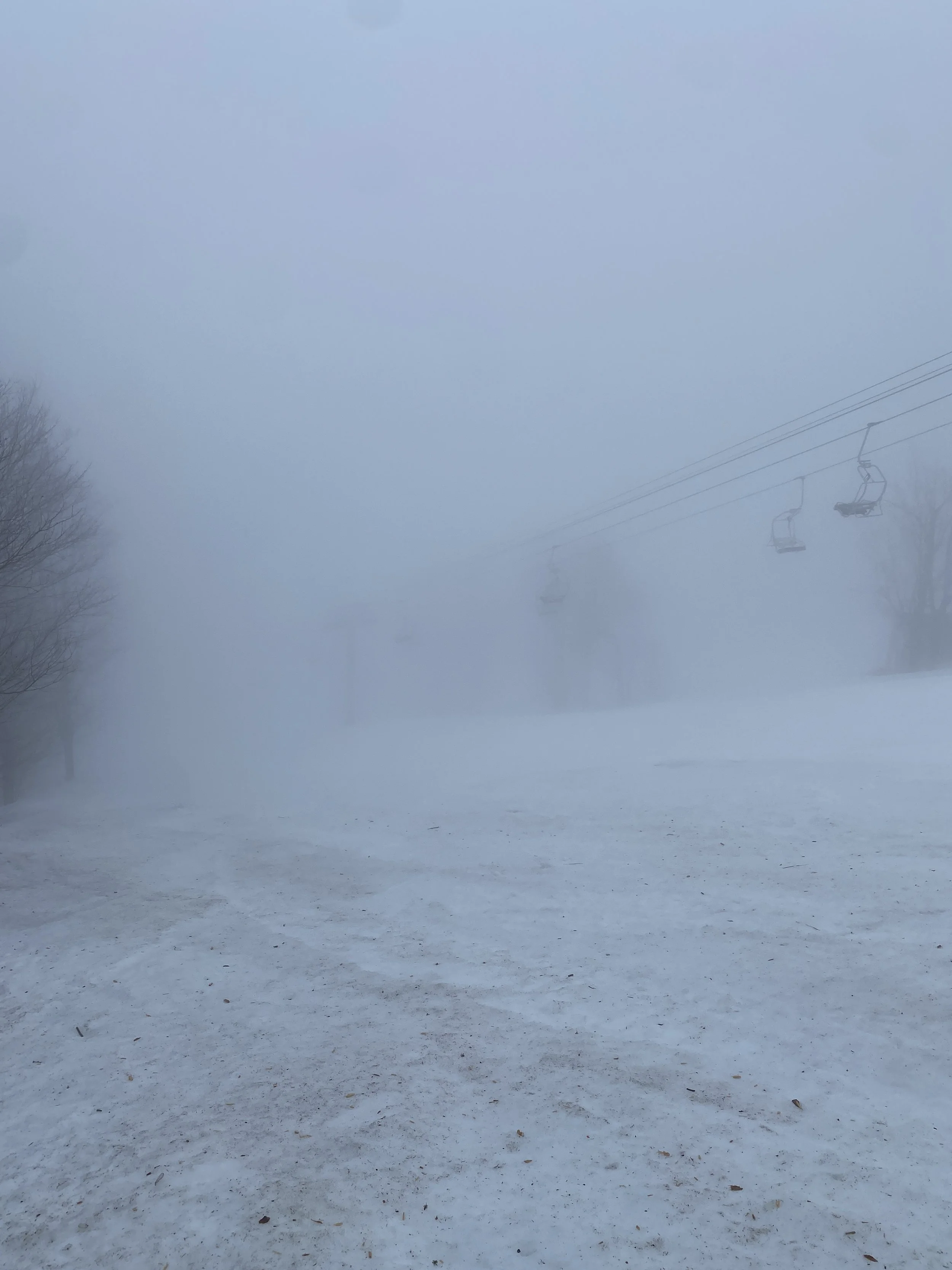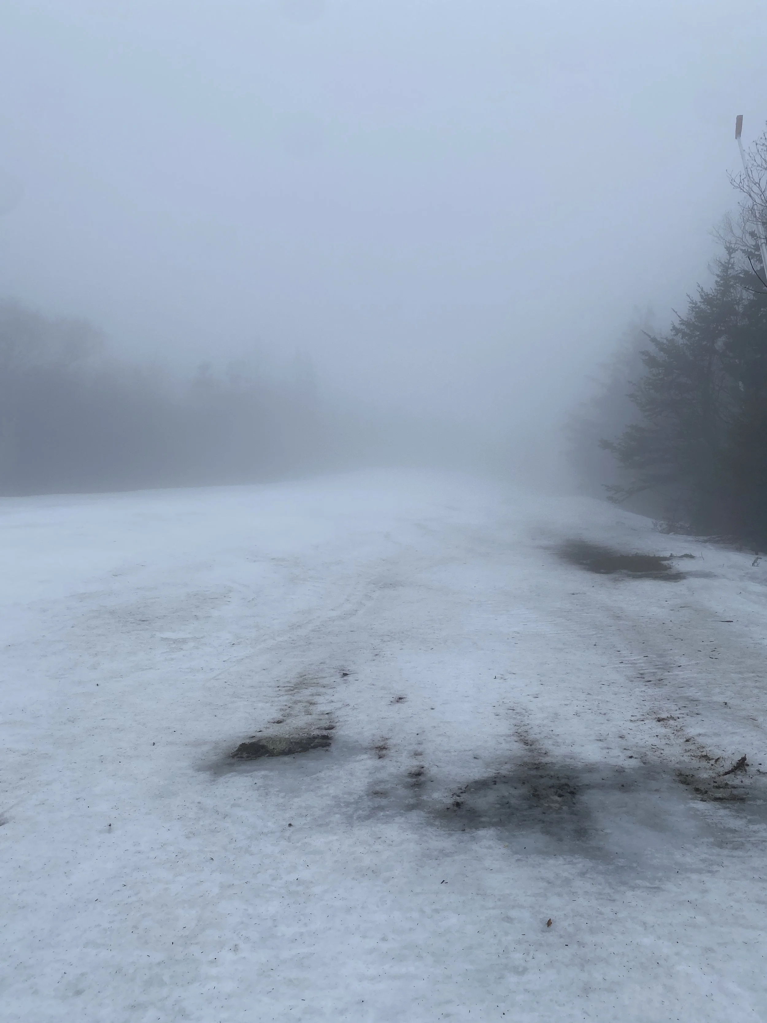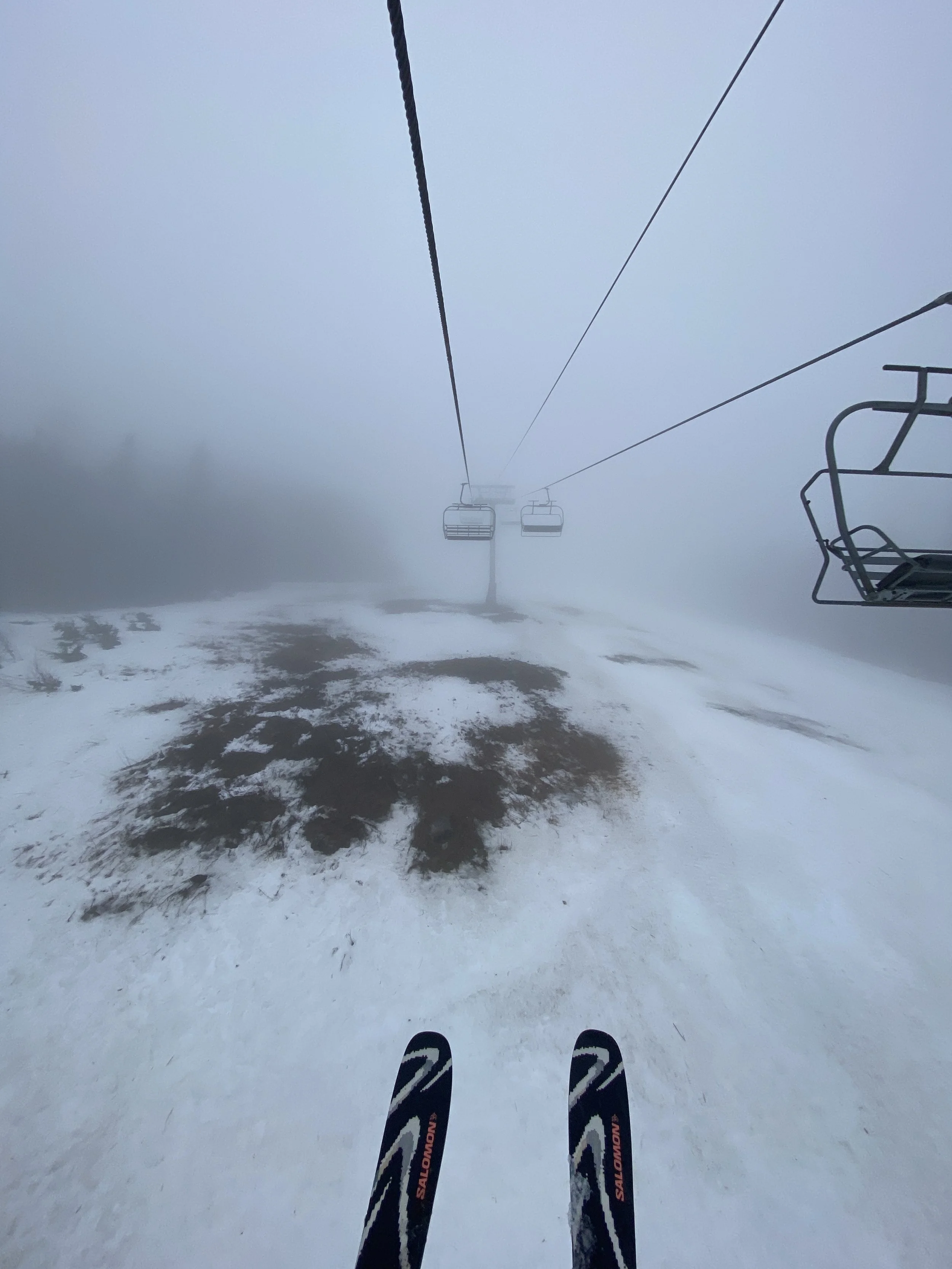 Today was a moody afternoon on the mountain. Visibility was terrible everywhere, except the very bottom. The fog was so dense at times that it felt like I was in a Silent Hill game. There was rain in the air, which left me soaked, and to top it all off, the mountain was empty and it was very quiet. If you stopped on a run you’d hear silence, and maybe some birds rustling in the trees going about their life.