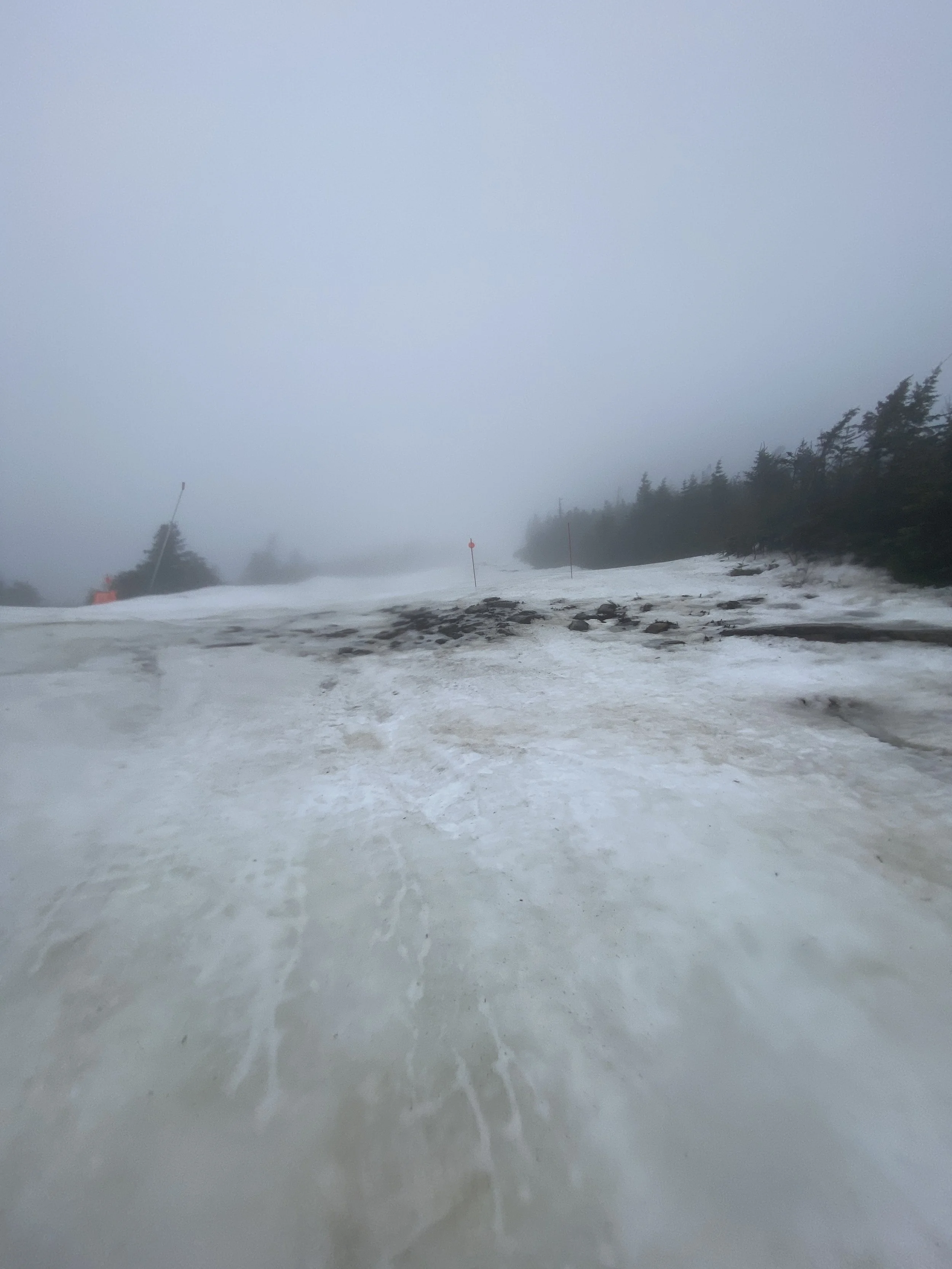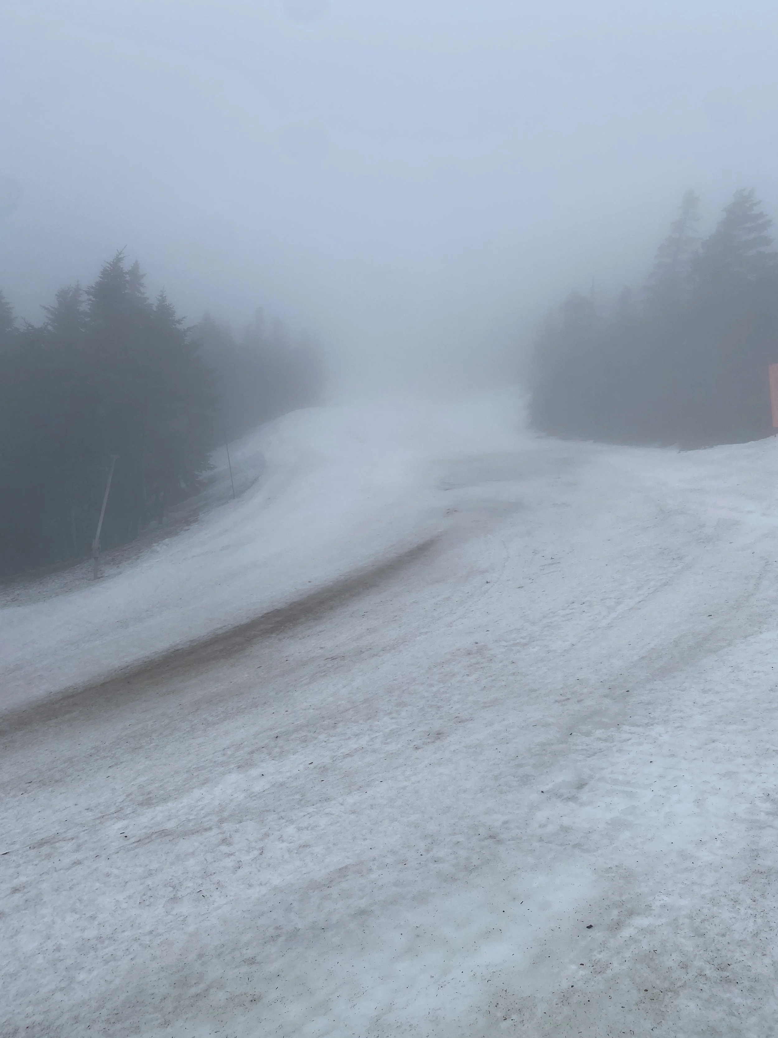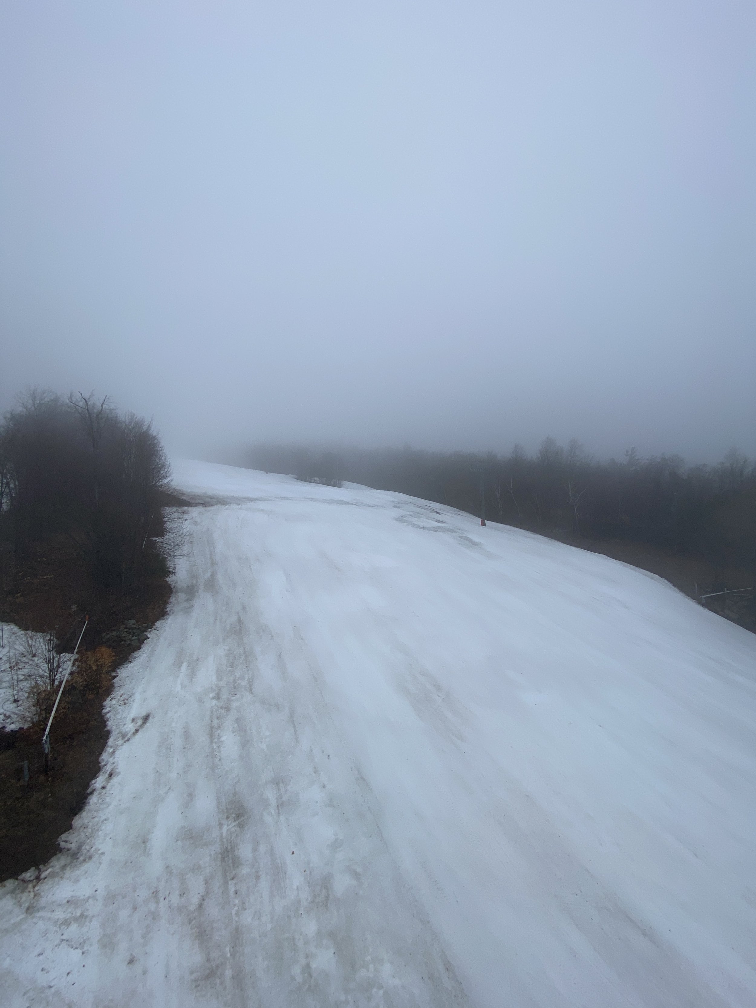 Today was a moody afternoon on the mountain. Visibility was terrible everywhere, except the very bottom. The fog was so dense at times that it felt like I was in a Silent Hill game. There was rain in the air, which left me soaked, and to top it all off, the mountain was empty and it was very quiet. If you stopped on a run you’d hear silence, and maybe some birds rustling in the trees going about their life.