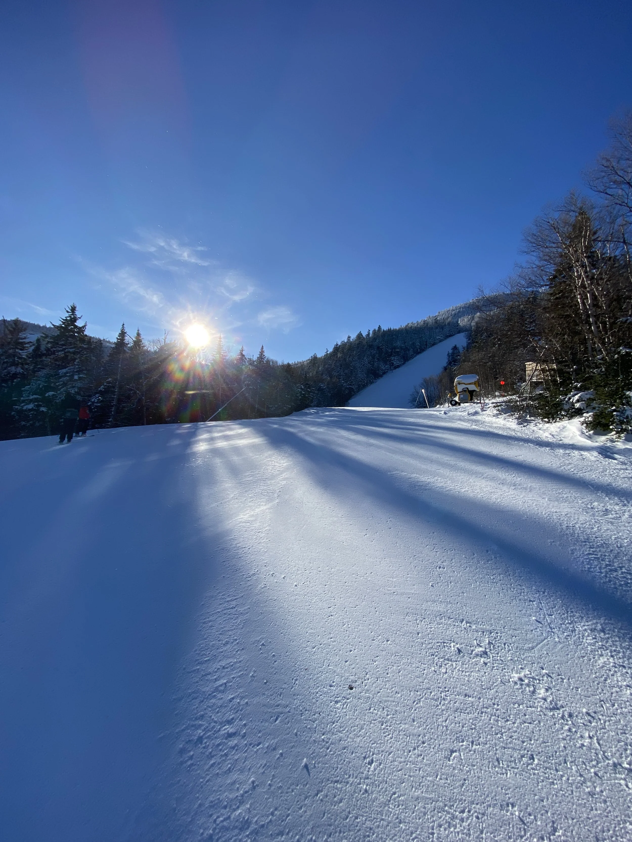 This week has been up and down and all around in terms of ski conditions. We’ve had classic Ice Coast days and soft snow days, and yesterday was a powder day. Whatever you want, this week has had it. Today was a return to Ice Coast form at Whiteface. It was slick out there.