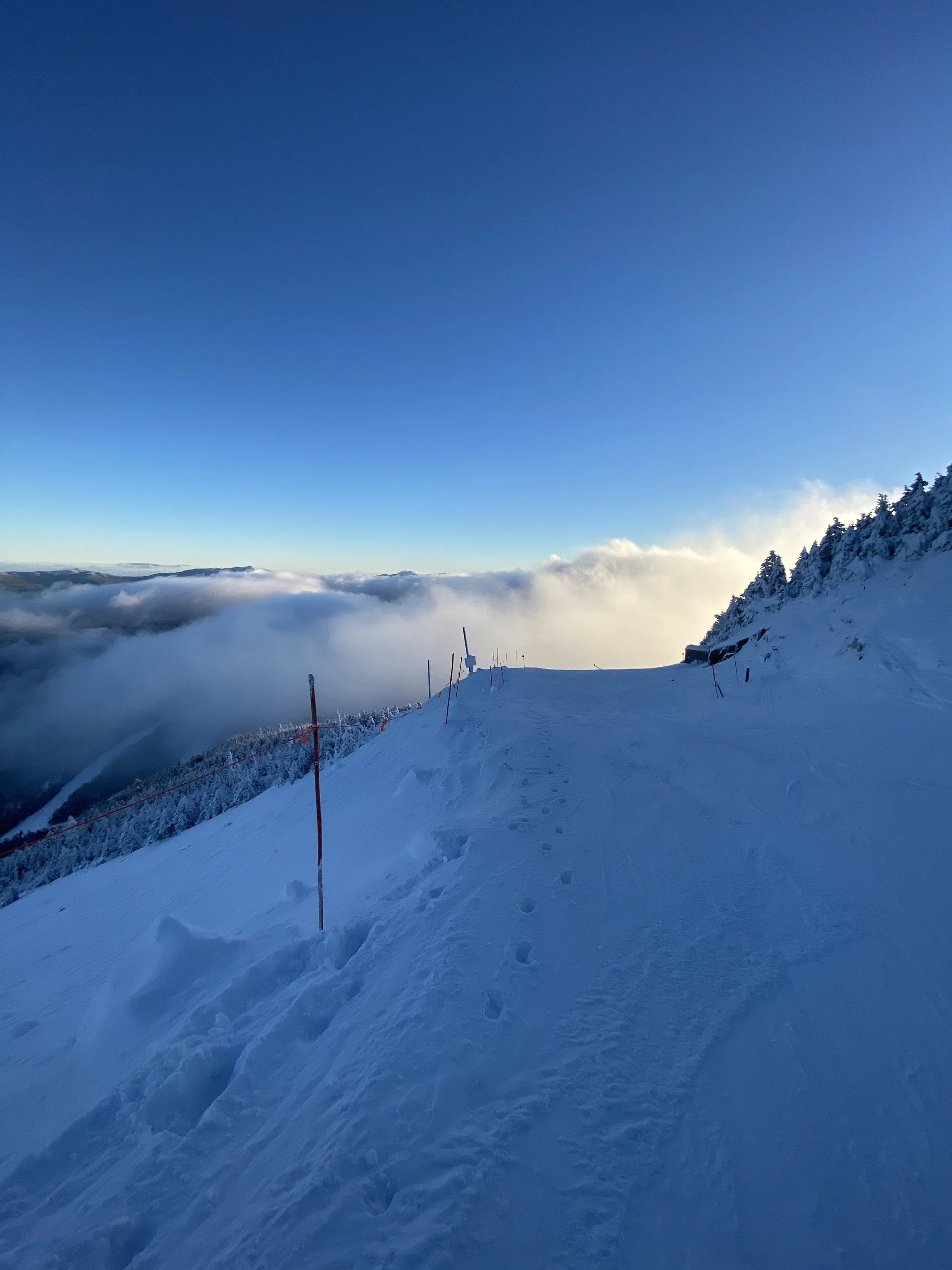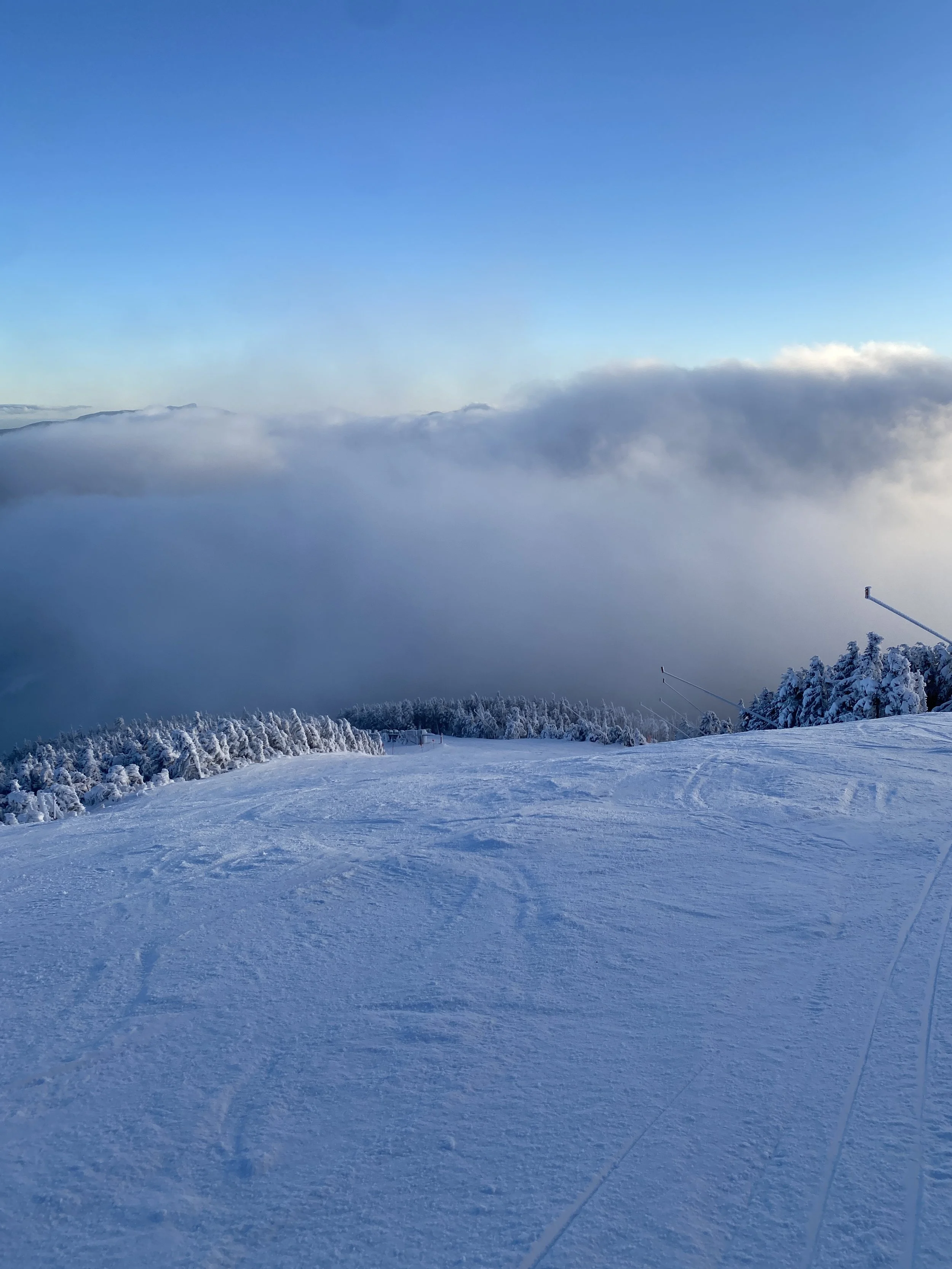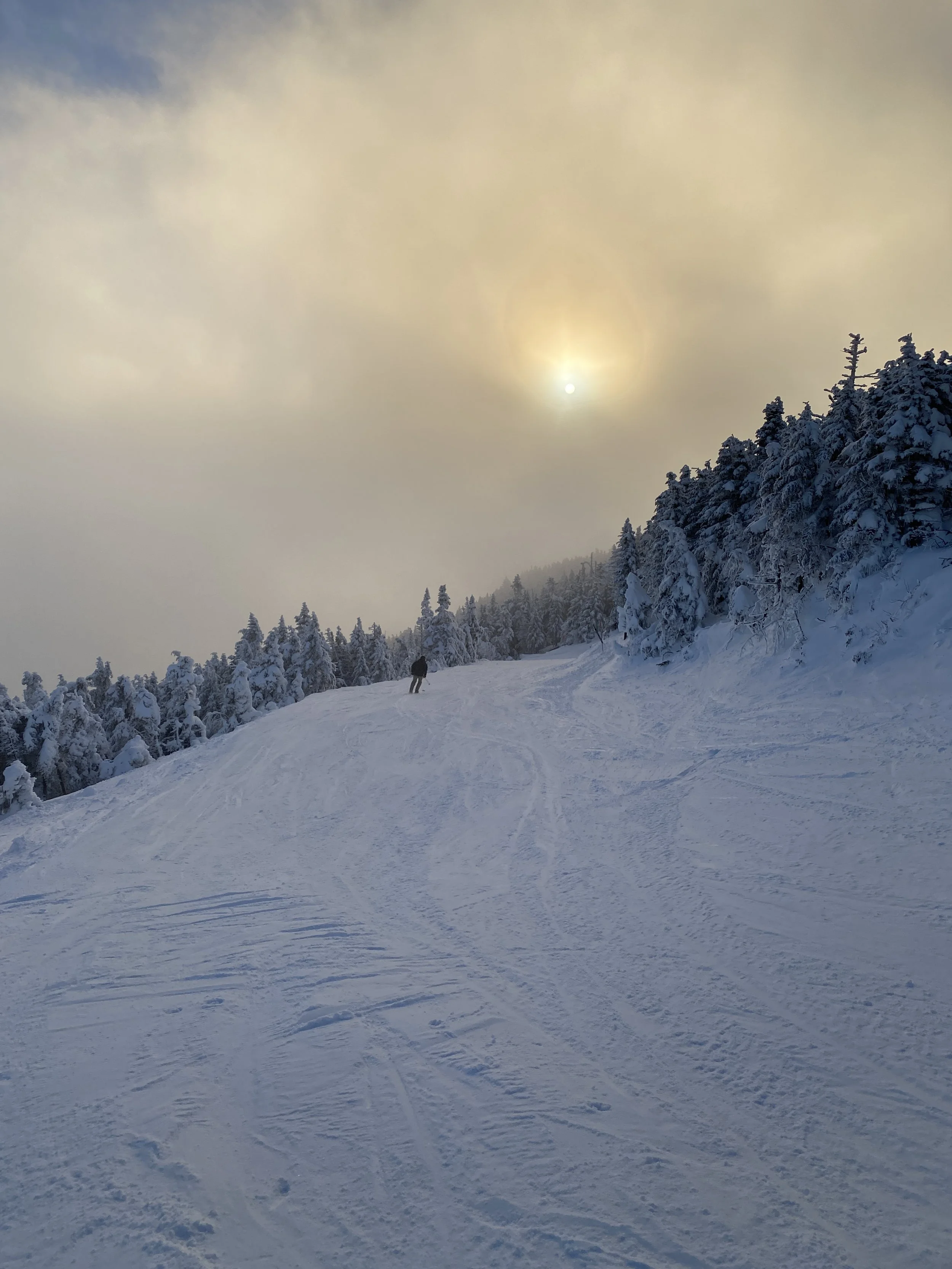 I got to the mountain later than usual and fortunately, according to Wild Bill, it was about the time the clouds cleared and you could actually see the mountain. My last few ski days have all been pretty cloudy, so it was really nice to actually be able to see something. The views at the top of Little Whiteface and the summit were stunning as usual, especially as the sun set. I know most don’t like it getting dark early, but it’s really beautiful to ski down a mountain during golden hour.
