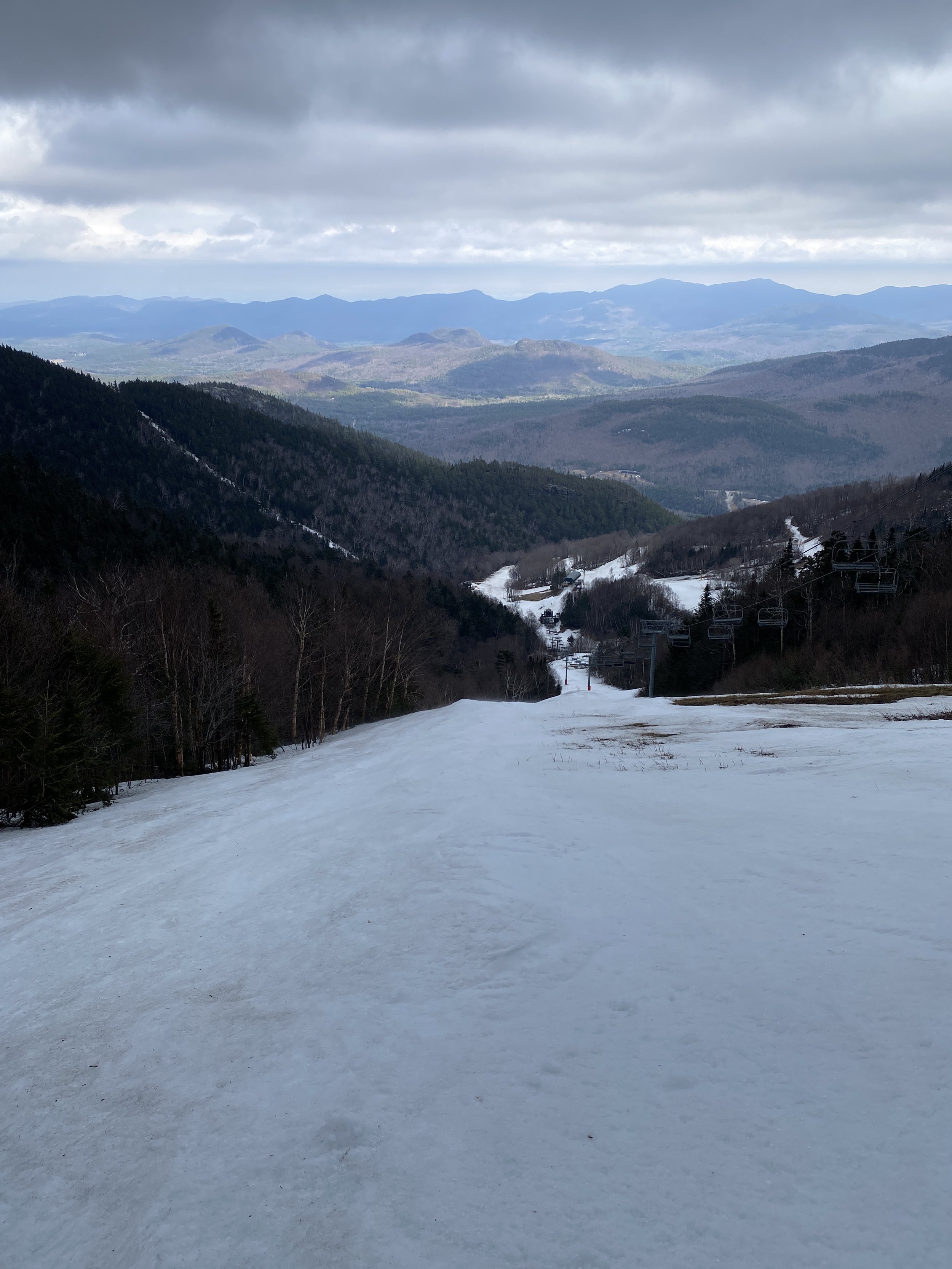They had seven lifts spinning, including the gondola and the Summit Quad. Lookout Mountain is closed for the season, so the Lookout Mountain Triple wasn’t spinning, and neither were the Little Whiteface Double or the Freeway Lift. There were 62 runs open. The only notable trail closures were The Follies and Paron’s Run off the summit, as that meant that Upper Skyward was the only way down. I’m not sure if those runs were closed due to coverage or surface conditions.