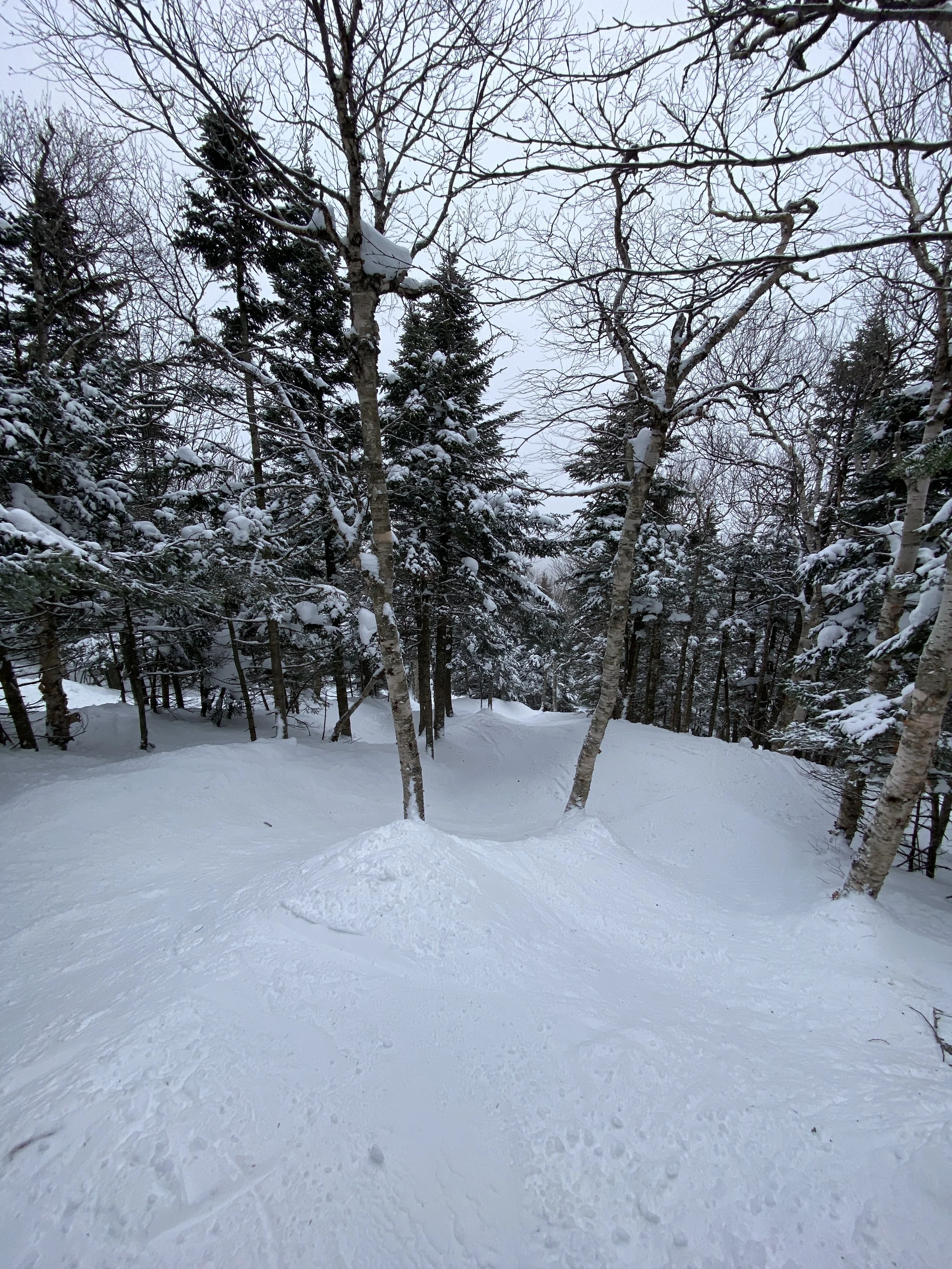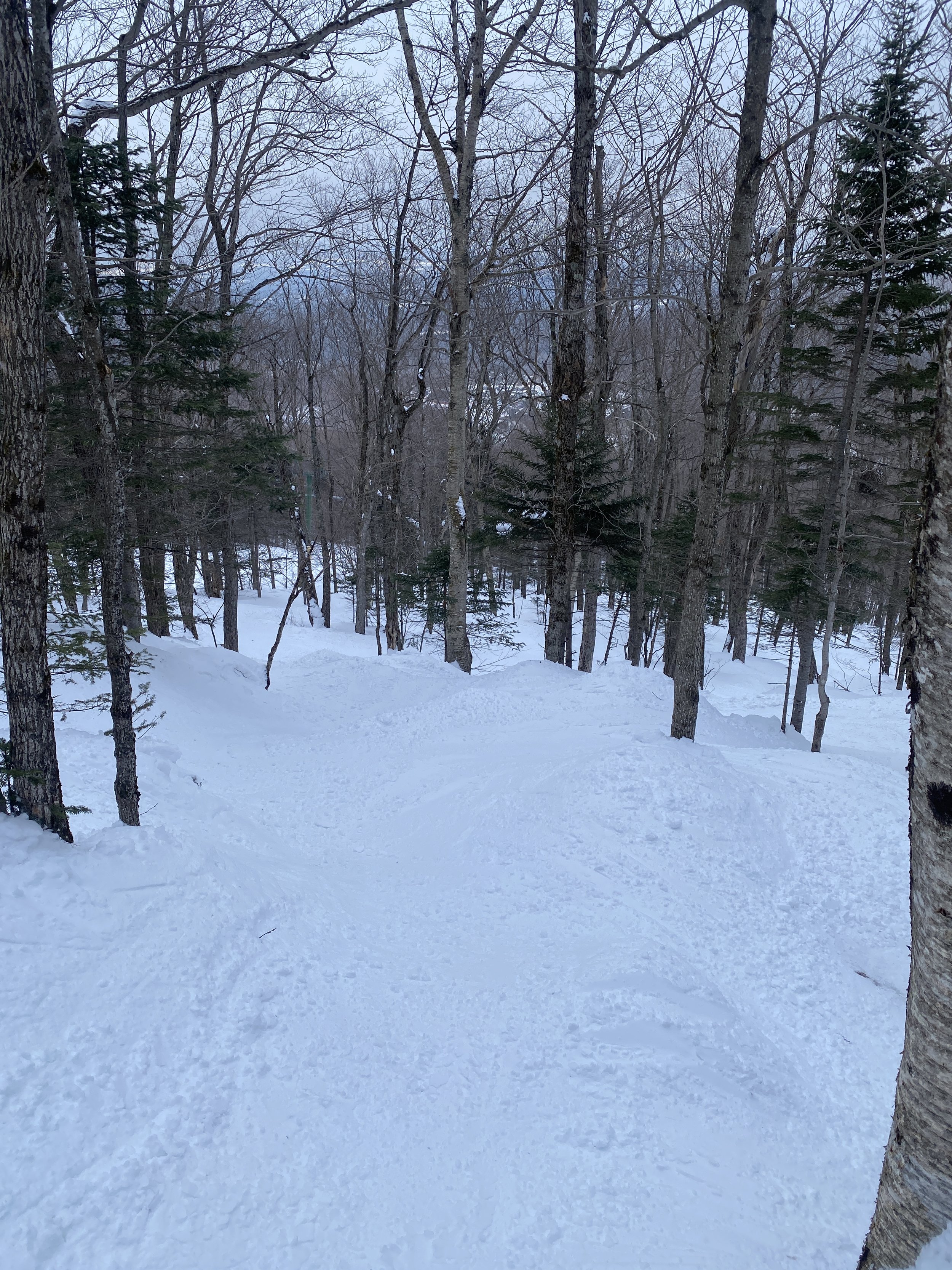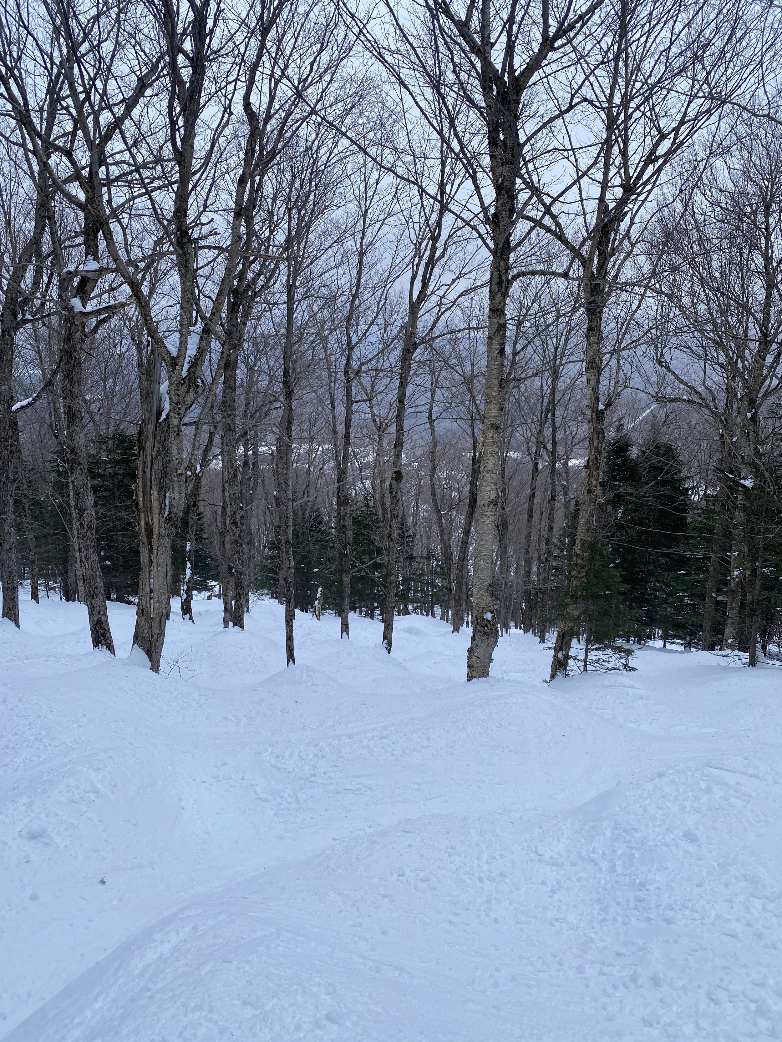 I got to the mountain between 1:30-1:45. All of their lifts spin until 4, so I was able to get more than two hours in on the snow, all of which was spent skiing Jay’s legendary trees. It may be a holiday period, but the mountain was pretty quiet. I mainly stuck to the Stateside base area, so I’m not sure what Tramside looked like, but there were no lines for the lifts on Stateside.