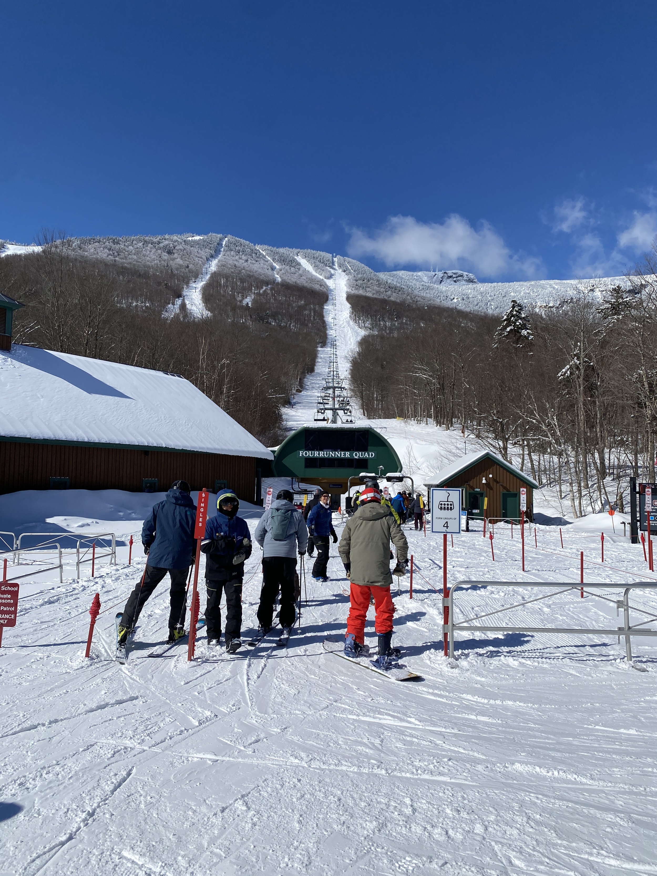 The runs we took off the Sunny Spruce Quad, which is really an intermediate lift, were my favorite of our time at Spruce Peak. West Run, Lower West Run, Lower Smugglers and West Slope all had soft snow and they were a blast to ski. After our few runs at Spruce Peak, we hopped back on the Over Easy gondola and headed back over to Mount Mansfield.