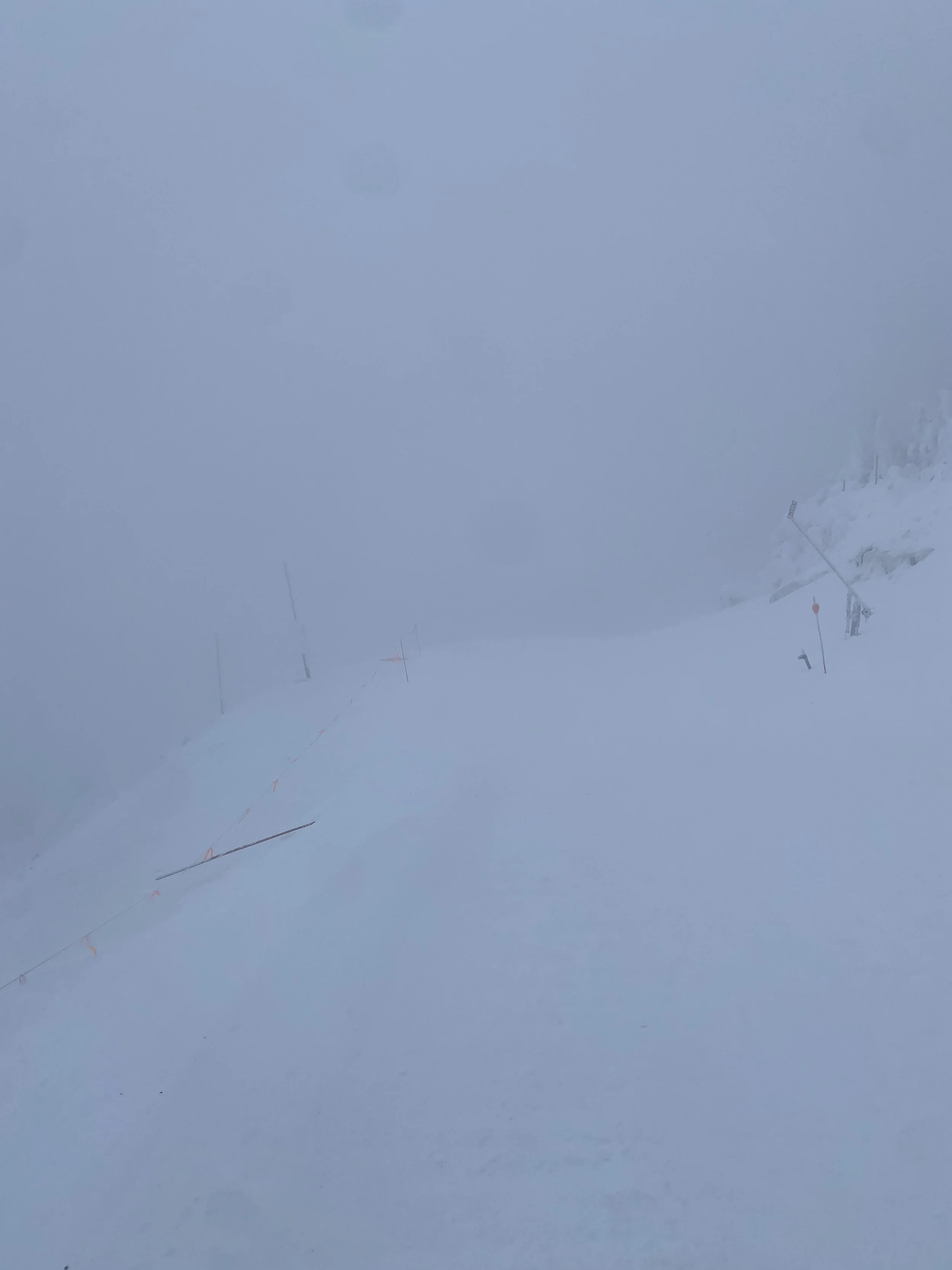 Visibility high up on the mountain was pretty terrible today. That combined with very flat light made for some interesting trips down the terrain. I found both Paron’s Run and The Follies to be pretty wind blown in spots, but all of that snow has to go somewhere so there were some powder stashes here and there on those trails. Over on Little Whiteface, Essex was in a similar shape. Near the top of the run it was a bit firm, but as you descended you’d come across the snow.