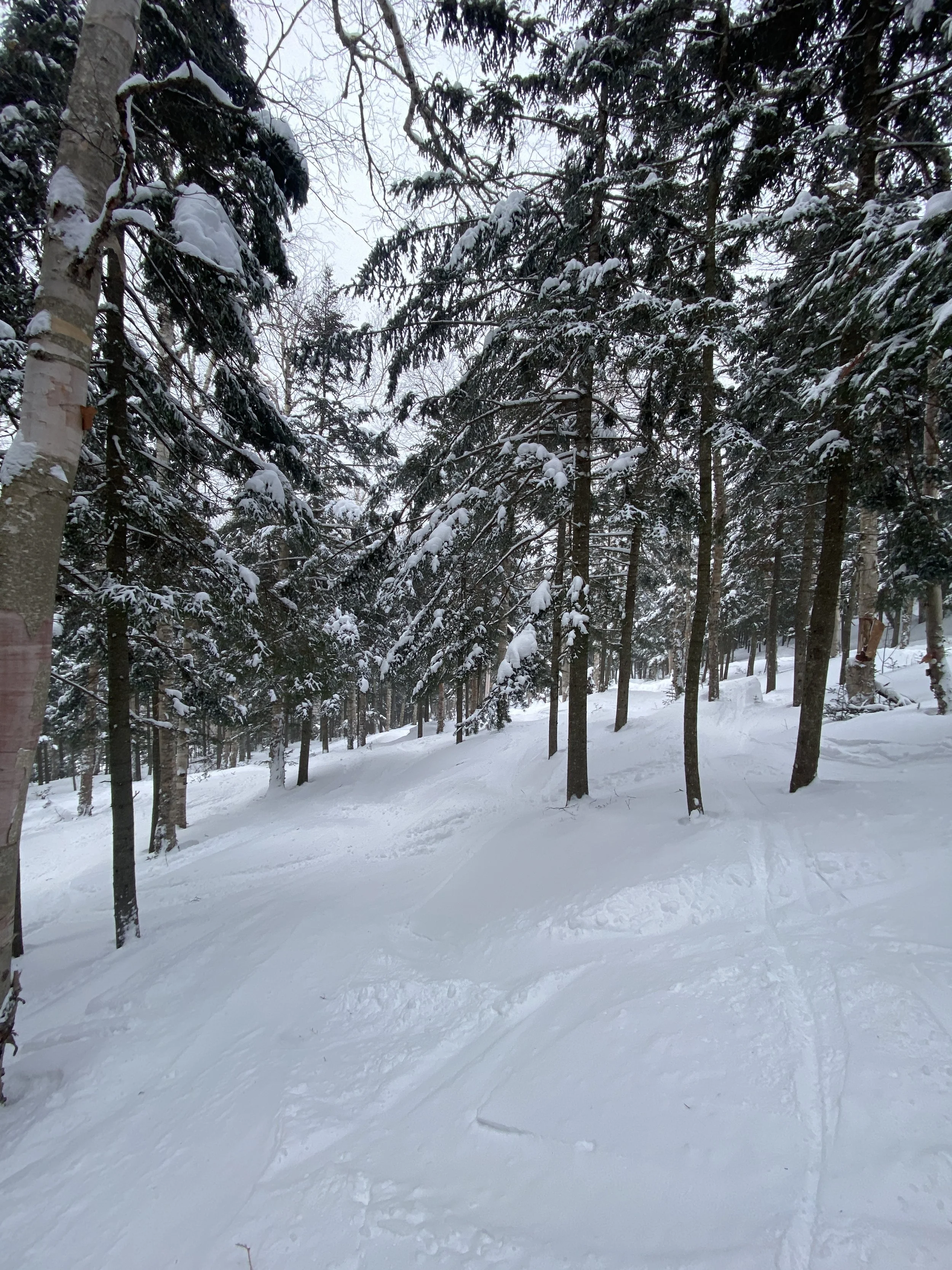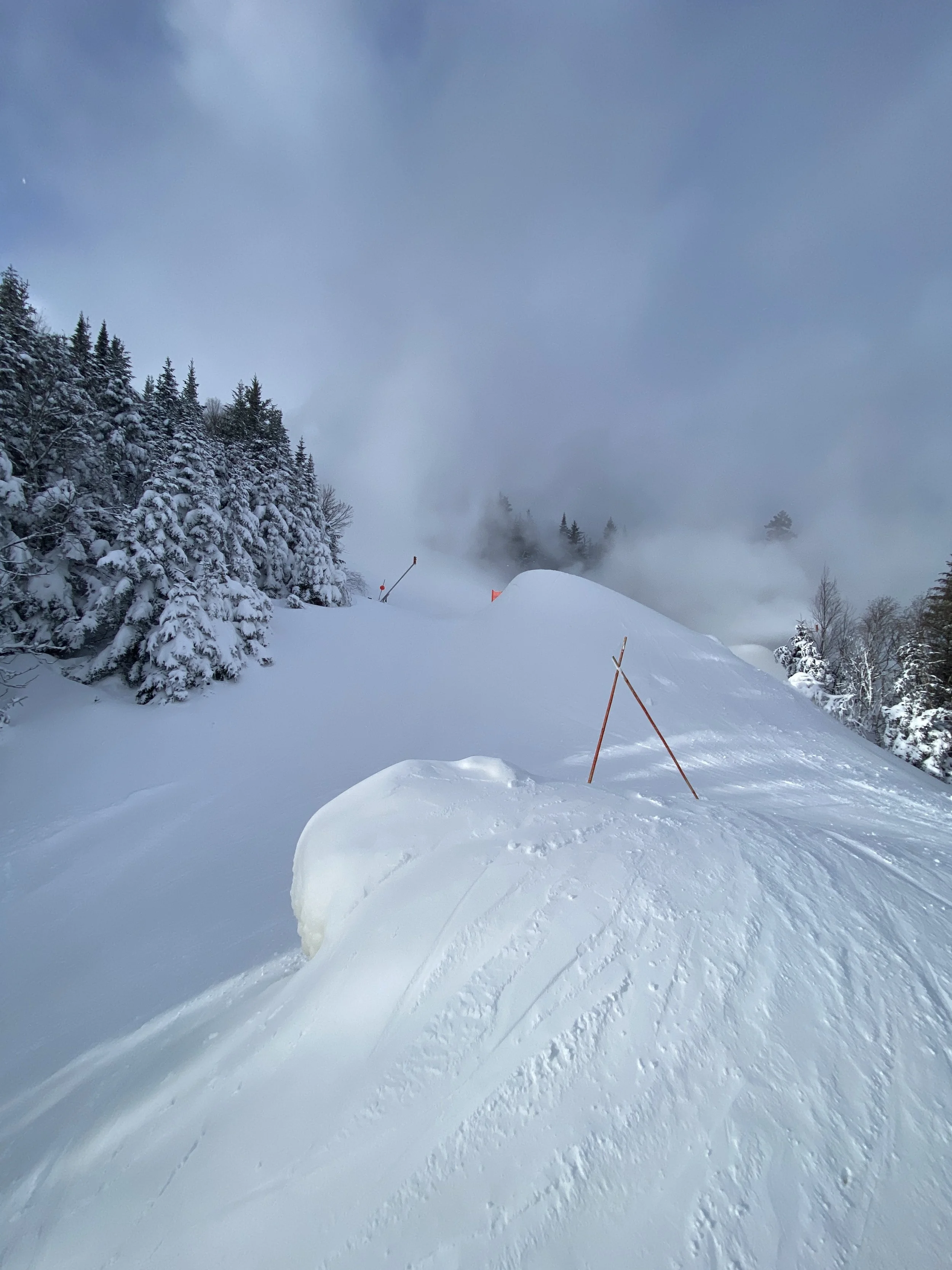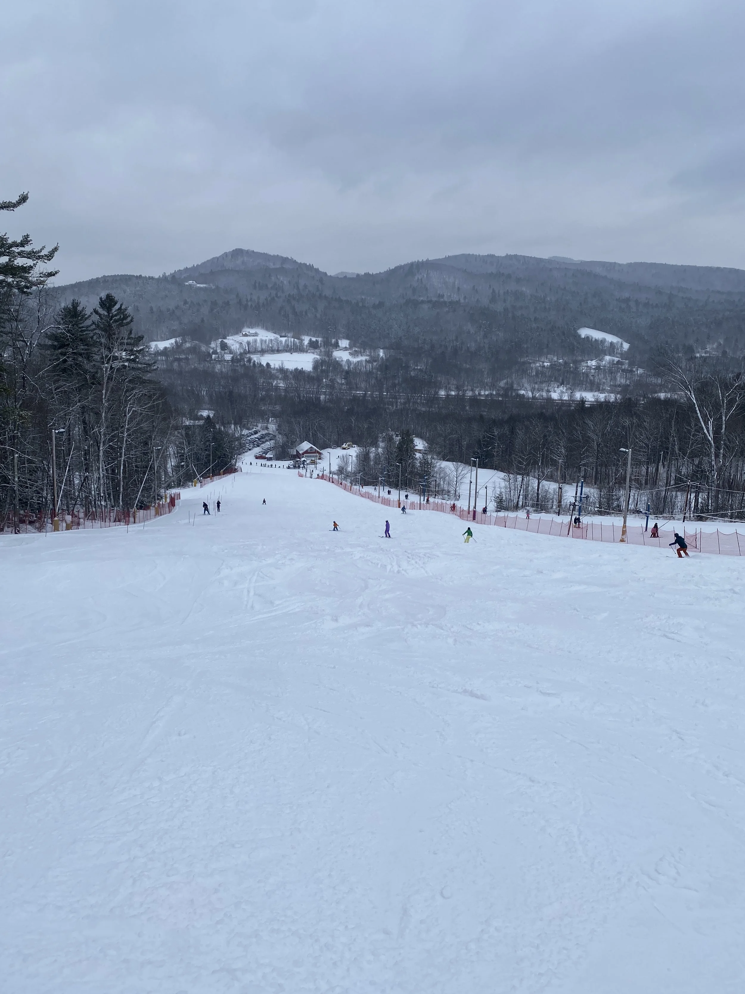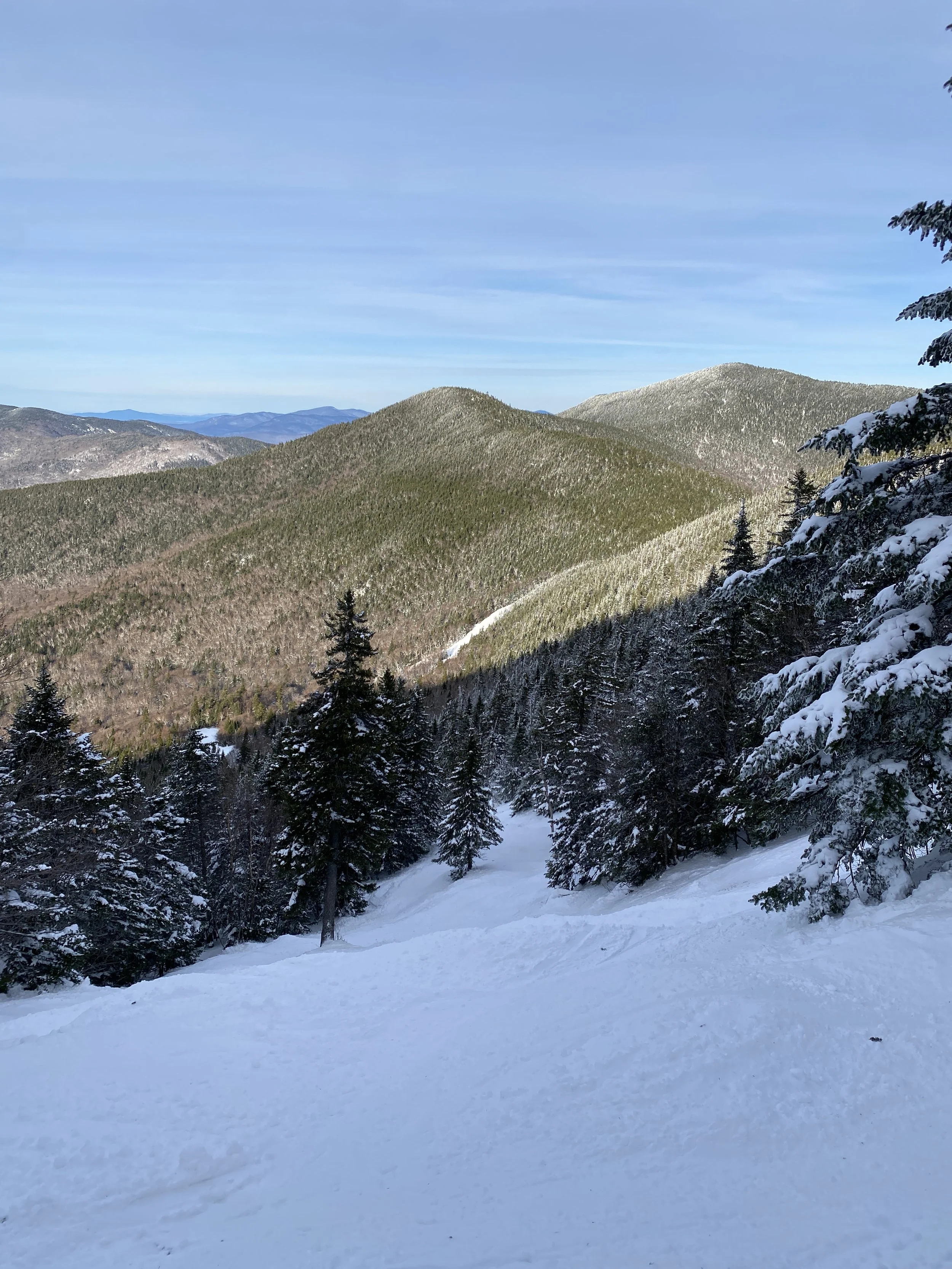 They had all but the Little Whiteface double spinning. There were more than 80 runs and glades open, and they received two to four inches of fresh snow overnight. Despite the new snow, though, it was fairly windy, and you could find some firm spots and ice patches here and there. Upper Skyward was even closed, presumably due to firm conditions. That being said, I’d say the conditions were mostly packed powder, with wind-blown powder in the mix in random spots and along the edges. Some runs were firmer, like Paron’s Run, and others were nice and soft, like Excelsior, the left side of Victoria and the top part of Upper Parkway.
