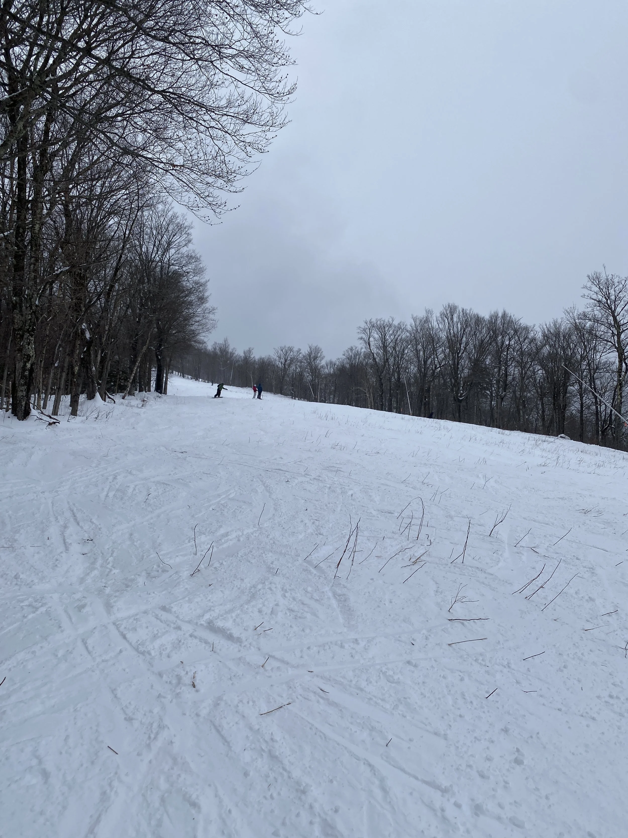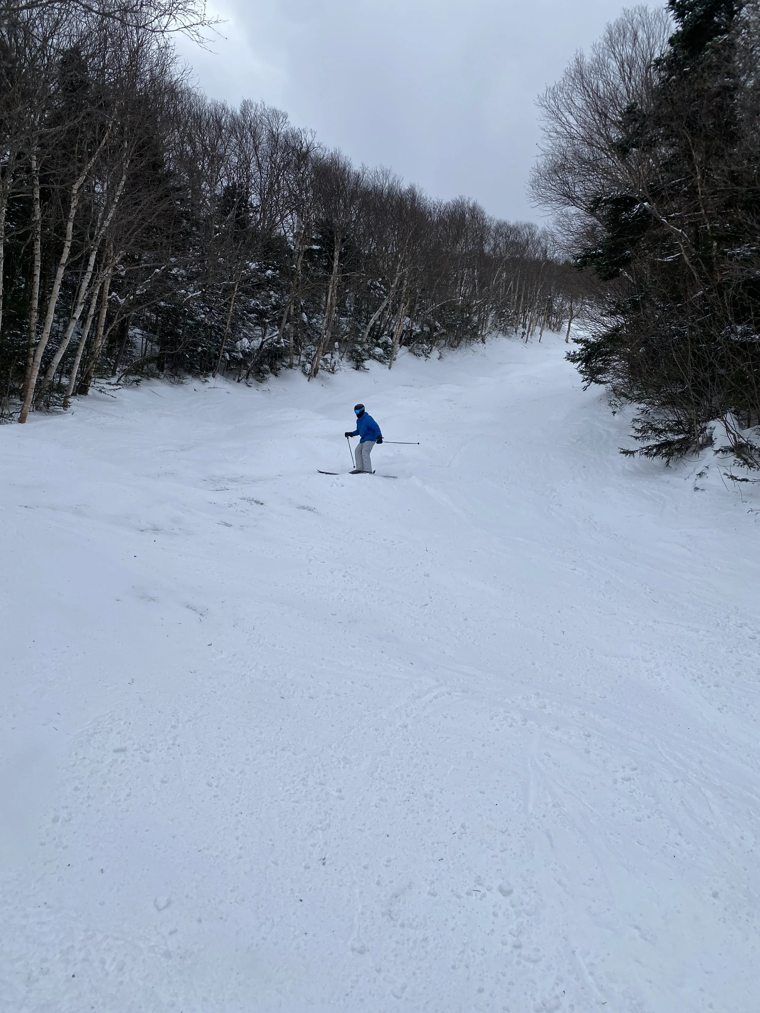 The snow on most of the groomers was also pretty good. Pro Skier Darren White even commented multiple times on how several high-traffic trails were holding up really well. There were a few firm runs, like Lower Organgrinder, and there were a couple of runs covered in slick whales, like Downspout and Spring Fever, but there was nice snow to be found on the sides of these trails. Personally, my run of the day may have been Jester, which is probably the busiest run off the summit at Lincoln Peak. This run tends to get icy as the day goes on, but today it was fantastic basically all day, with packed powder.