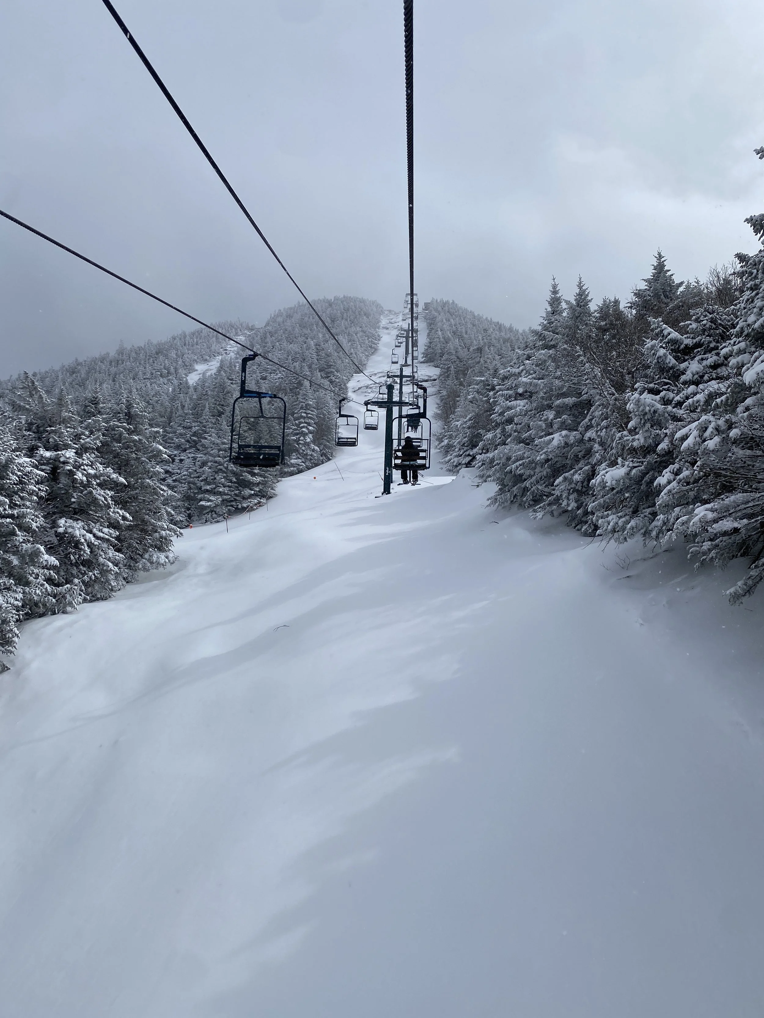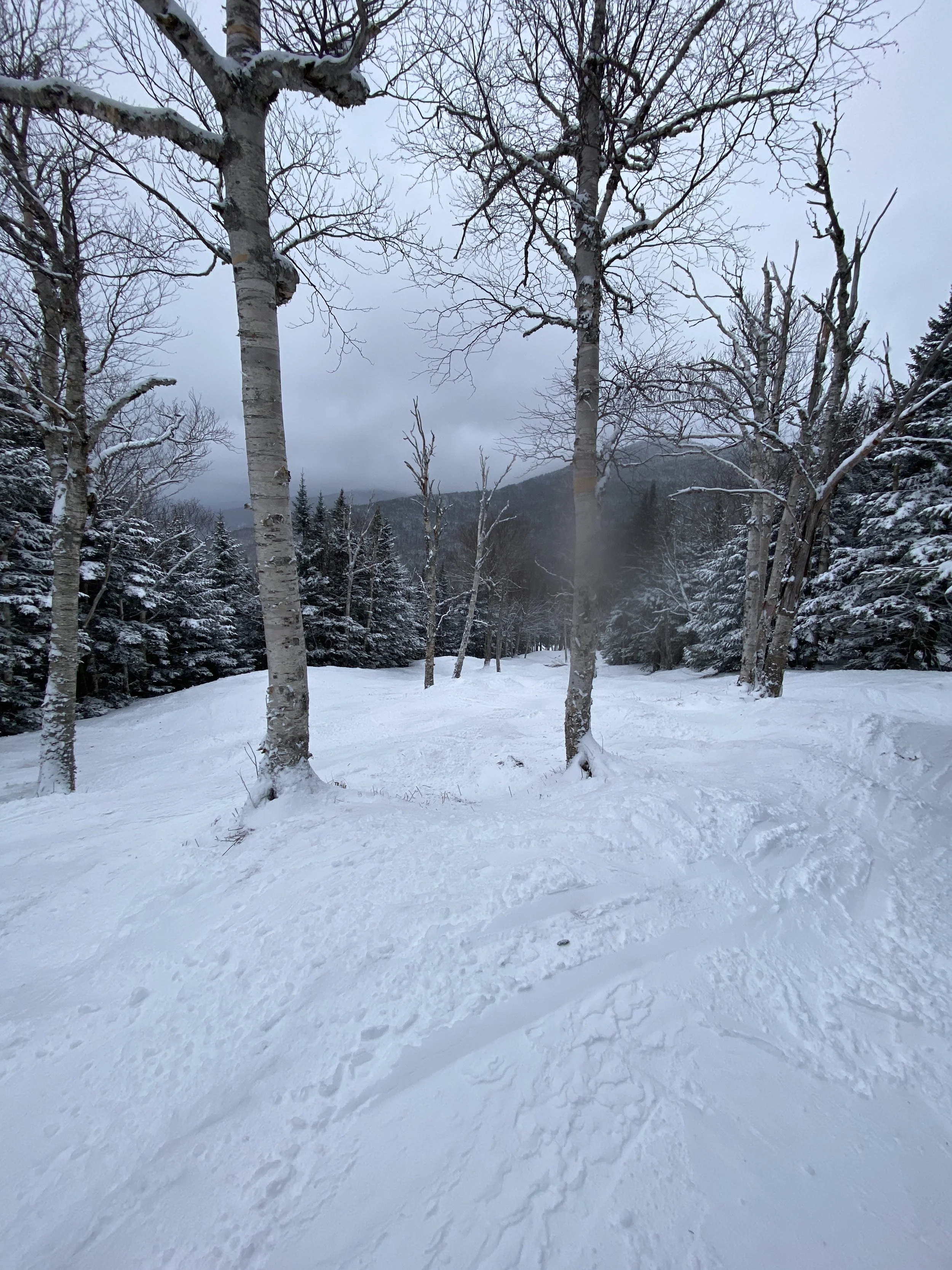 After that run in Highlander Glade is when the magic happened: It started dumping snow. The snow was coming down heavy, and stacking up fast. The day went from fun to epic in a matter of minutes. All of the runs quickly transitioned to powder conditions, with free refills. It felt like that was my reward for skiing the icy conditions over the last couple of days. Those final two hours at Smugglers’ Notch today are something I’ll be reminiscing on this off-season. I loved every second of it.