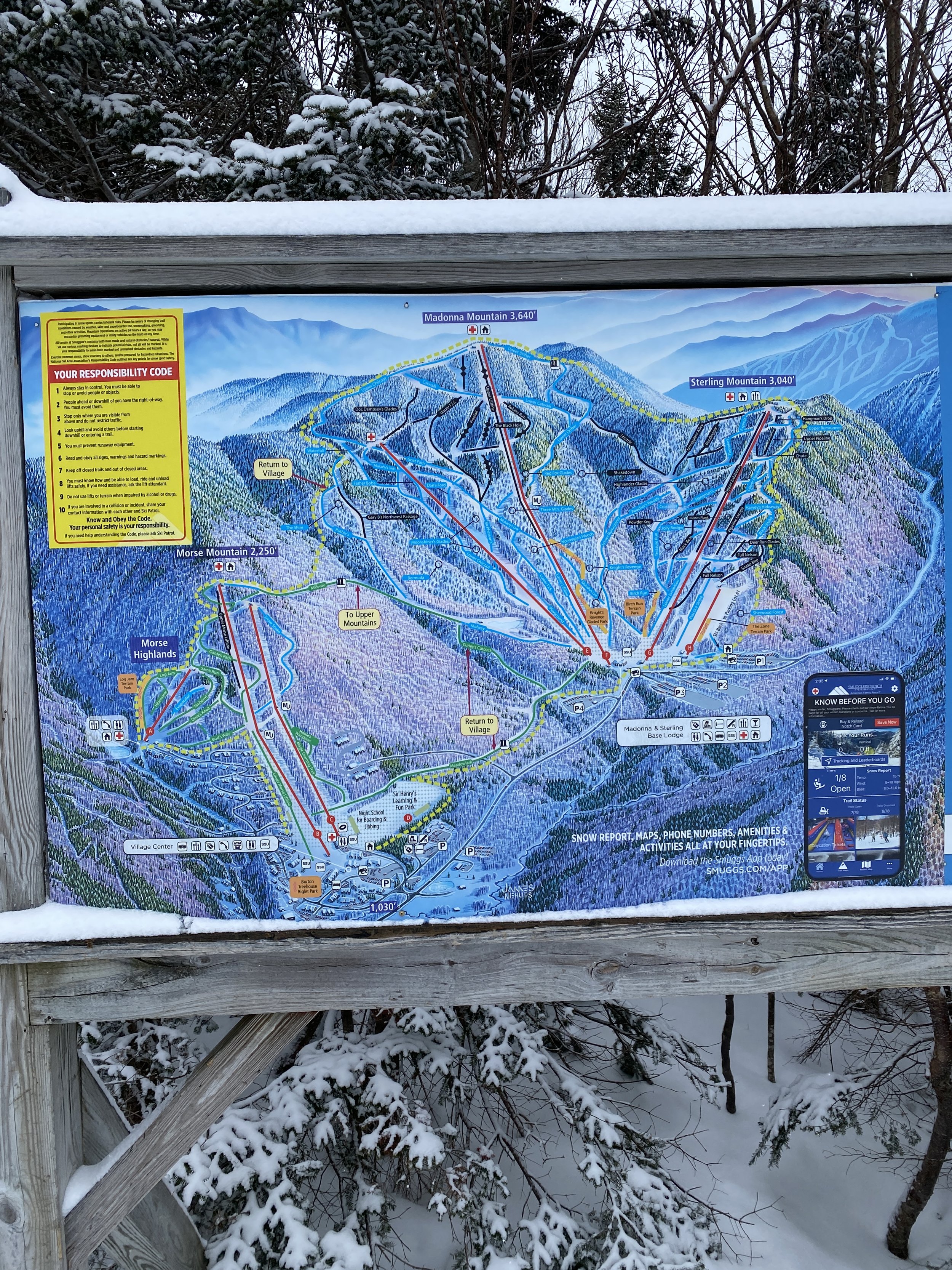 Between the warm up and the freeze this week, they only had around 35-40 runs open out of a possible 78. Some of the terrain was closed due to icy conditions, while others were closed due to coverage. The good news, though, was that all three mountains were open. When the day started, there weren’t really any glades open, but by the end of the day they had opened at least one that I saw, which was the Highlander Glade on Sterling Mountain.
