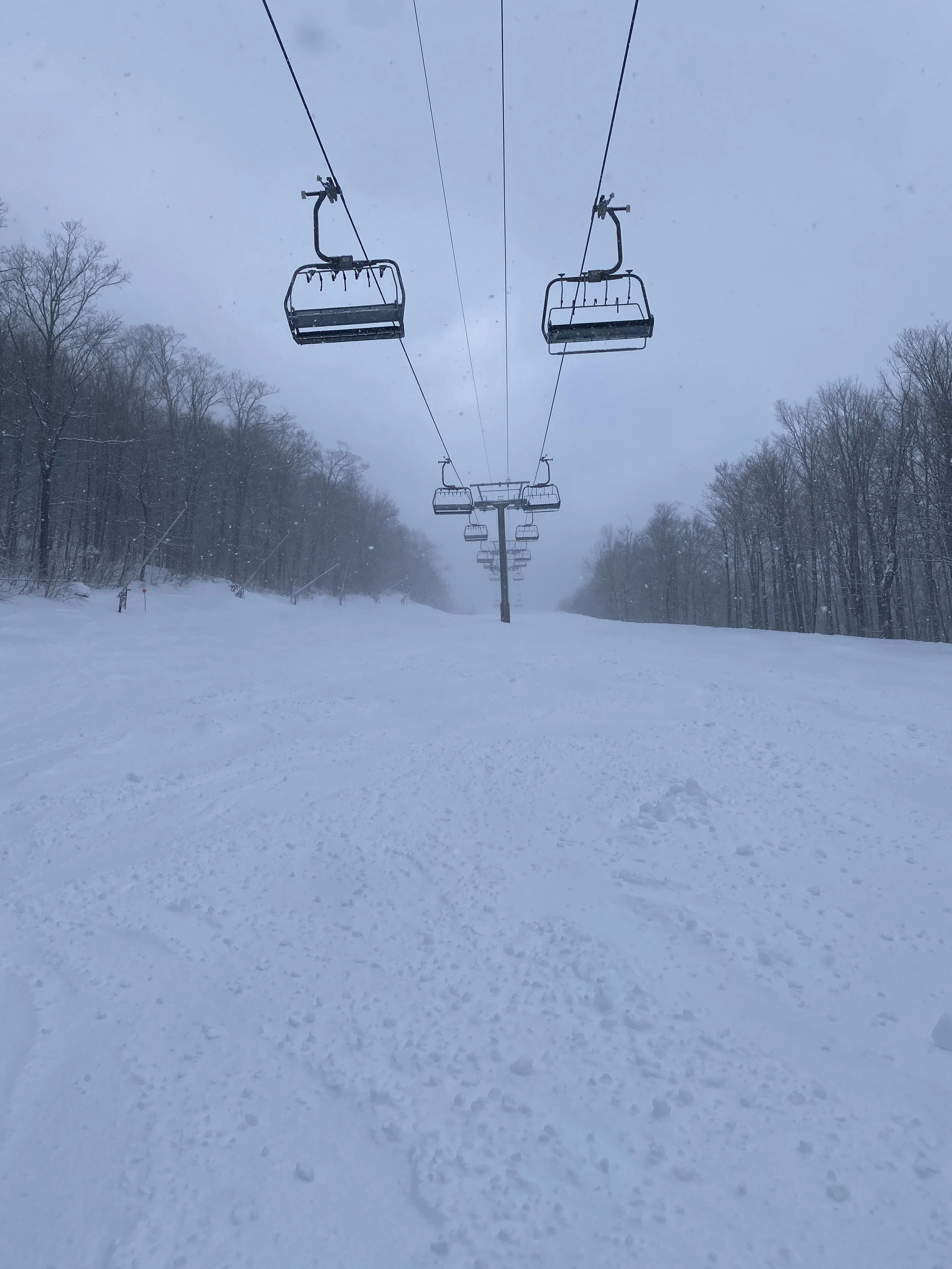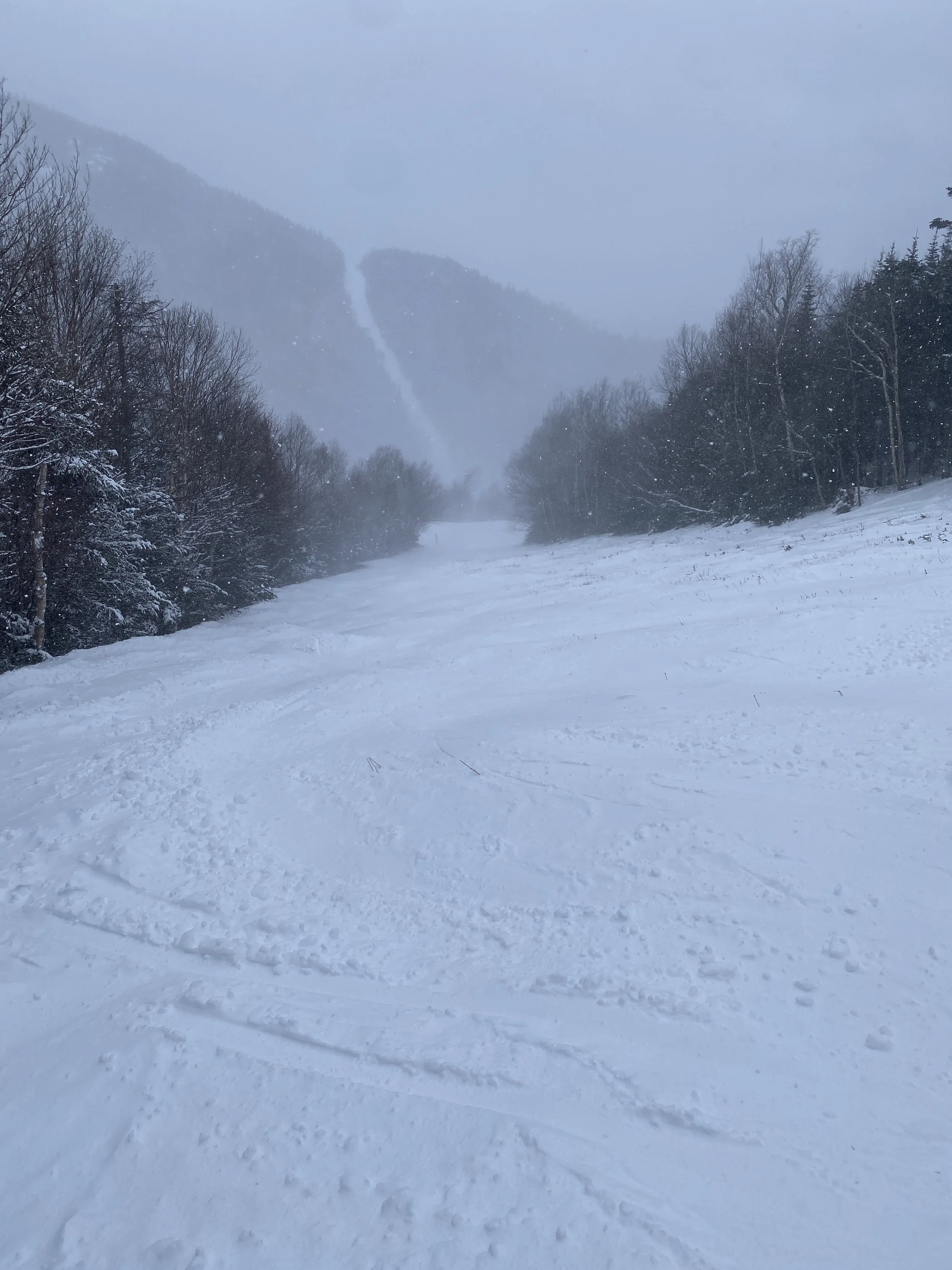 With a few inches of fresh snow on the ground, and snow in the air, this afternoon was a treat at Whiteface. Numerous ropes dropped as a result of the new snow, and conditions were terrific. Plus, it wasn’t too busy, which is always nice on a day like today.