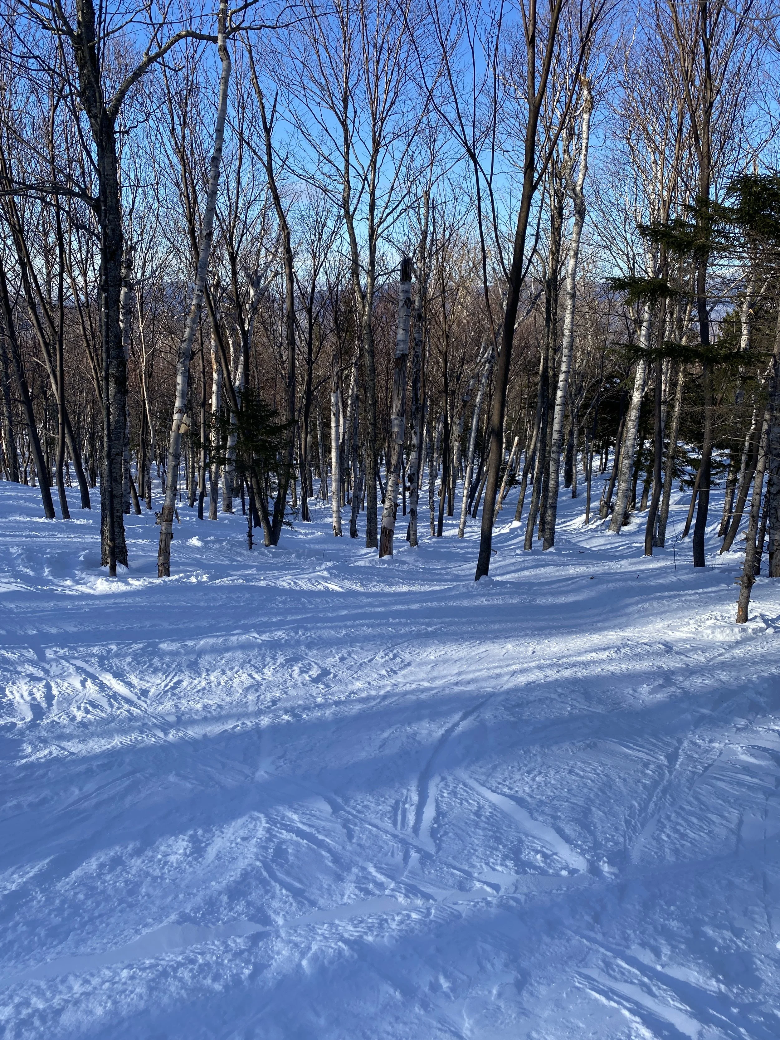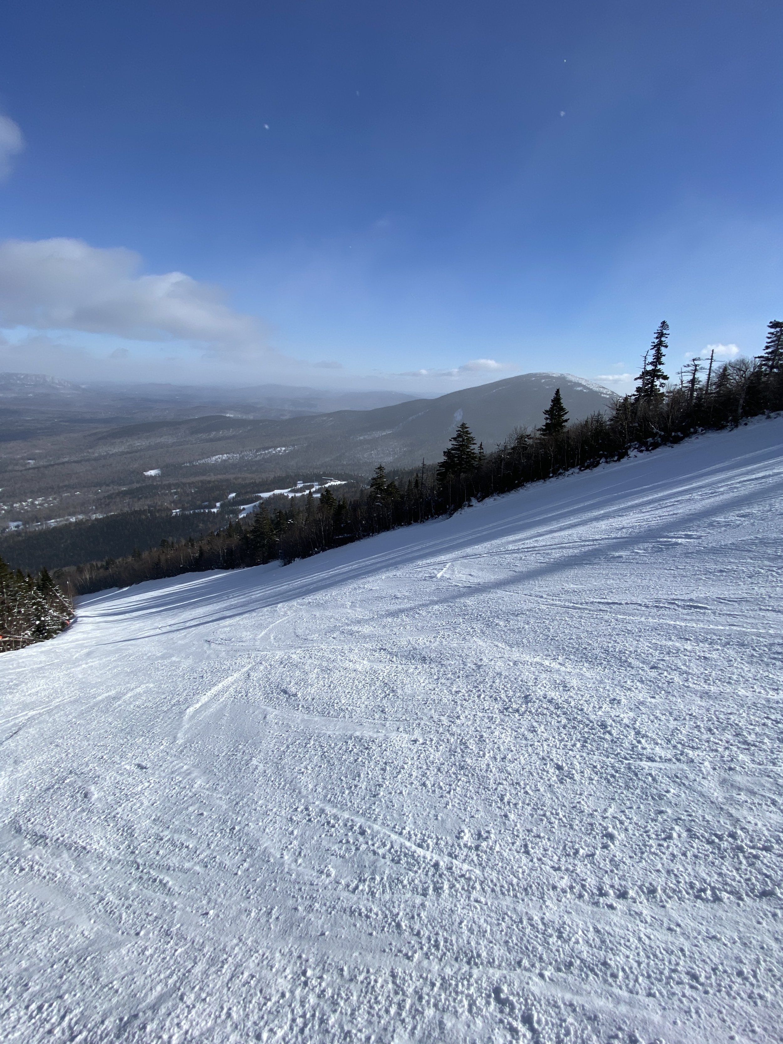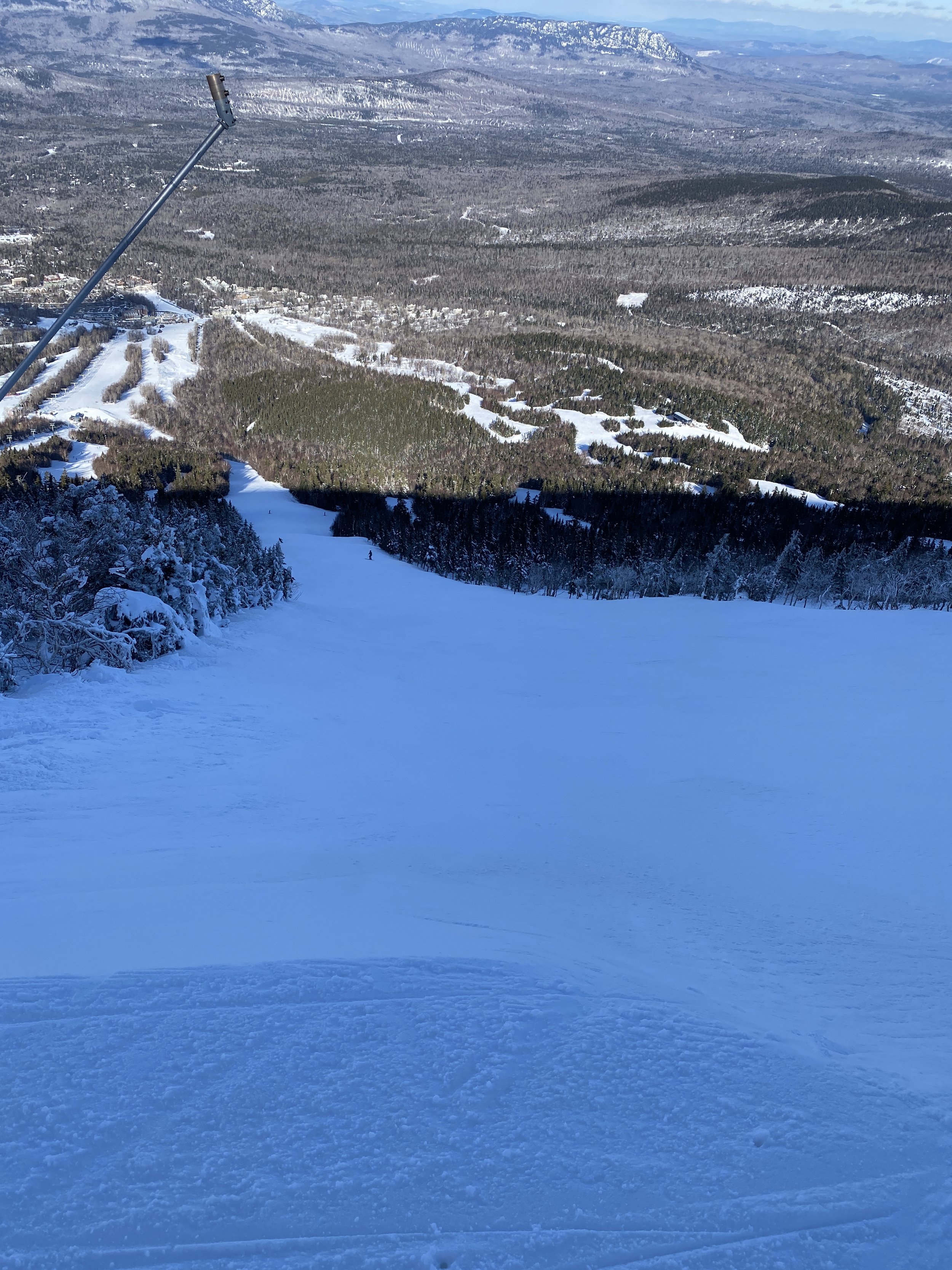 Sugarloaf has a lot of great groomers, with some of them being pretty steep. Conditions on the groomers were great. You had packed powder everywhere, with the occasional firm spot thrown in to the mix. The natural terrain was better up high. As you descended the mountain, there were more rocks, etc. poking through, but overall it wasn't too bad. I didn’t get in the trees much, but the ones I did were low down on the mountain, and while there was some stuff poking through, it was all easily avoidable.