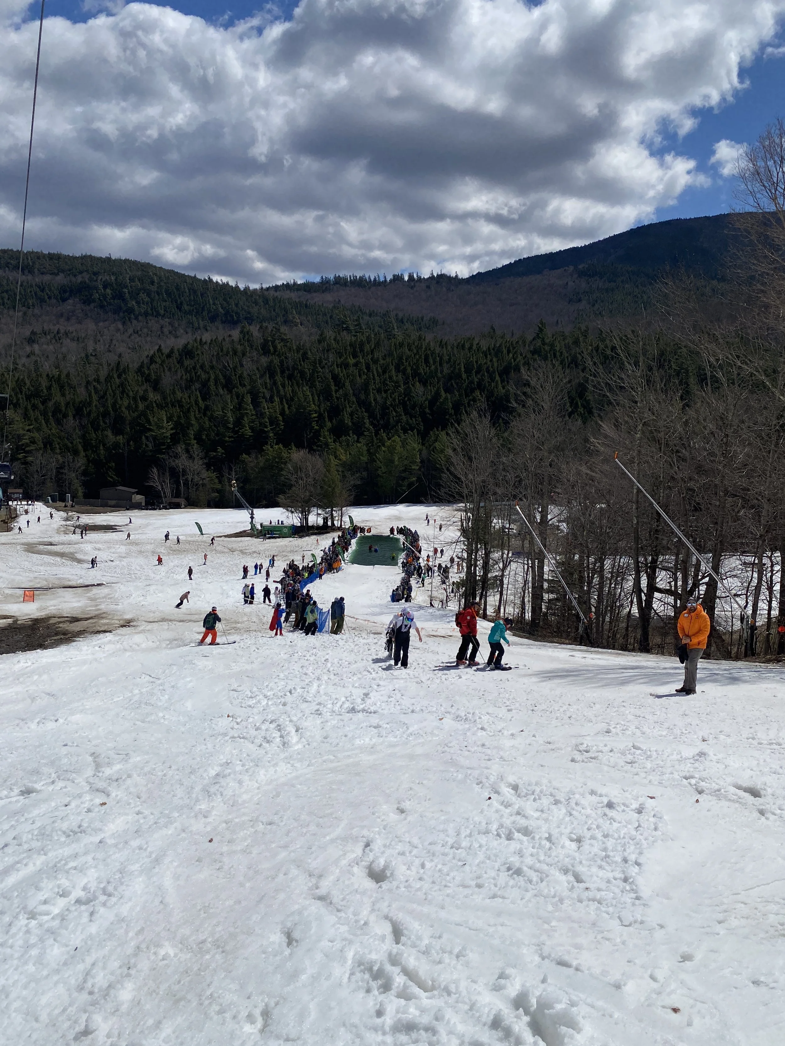 I haven’t felt great all week, and I’ve missed a couple of ski days due to that, so I was on the fence about skiing today when I woke up. In the end, I figured I should probably head up to Whiteface in case this is their last weekend of the season. It was a great spring skiing day. There was sunshine, it was warm (but not terribly warm), the pond skim happened and, just in general, there was a fun atmosphere around the mountain. If today was my last day there this season, it was a good way to end it.