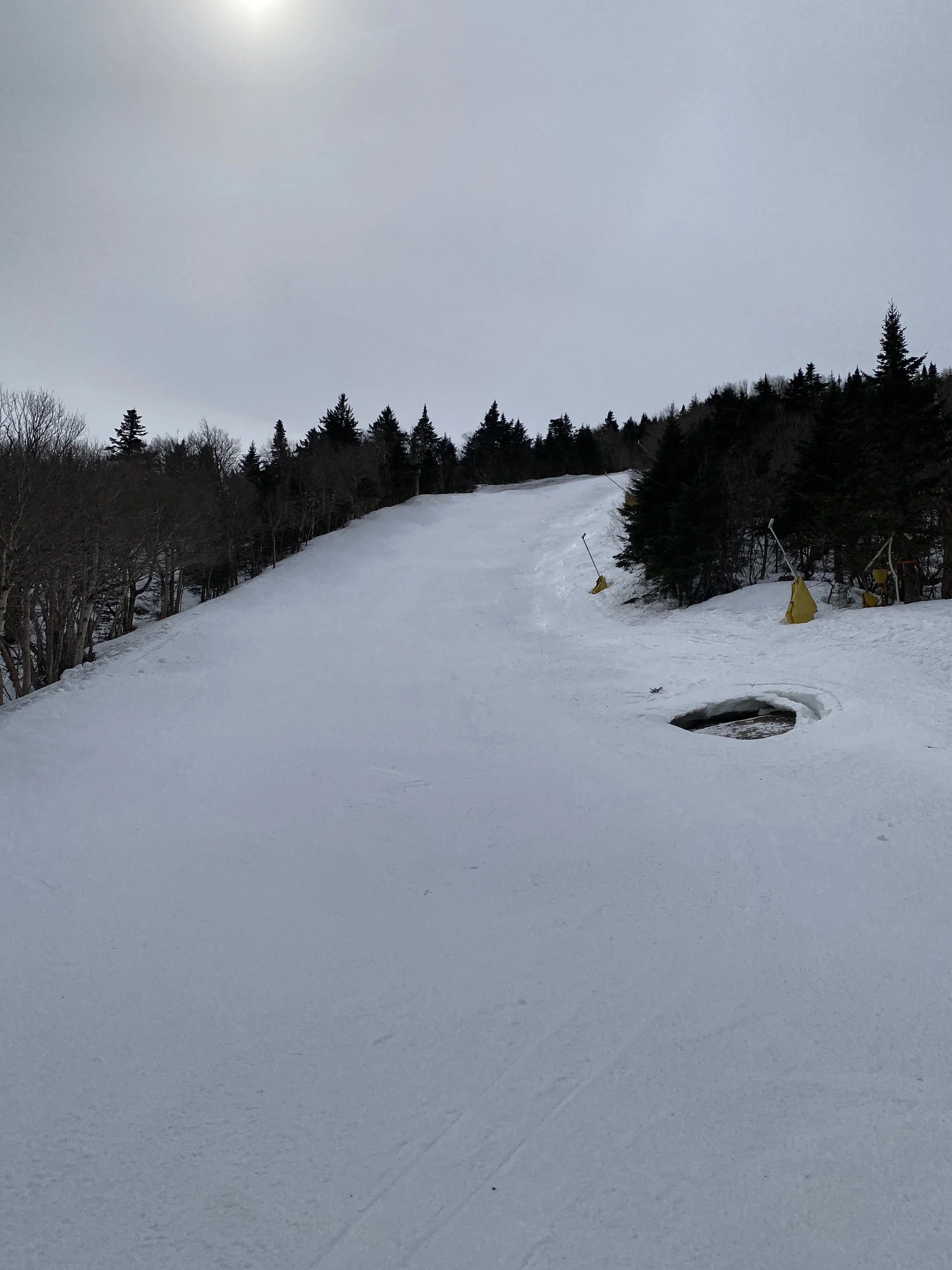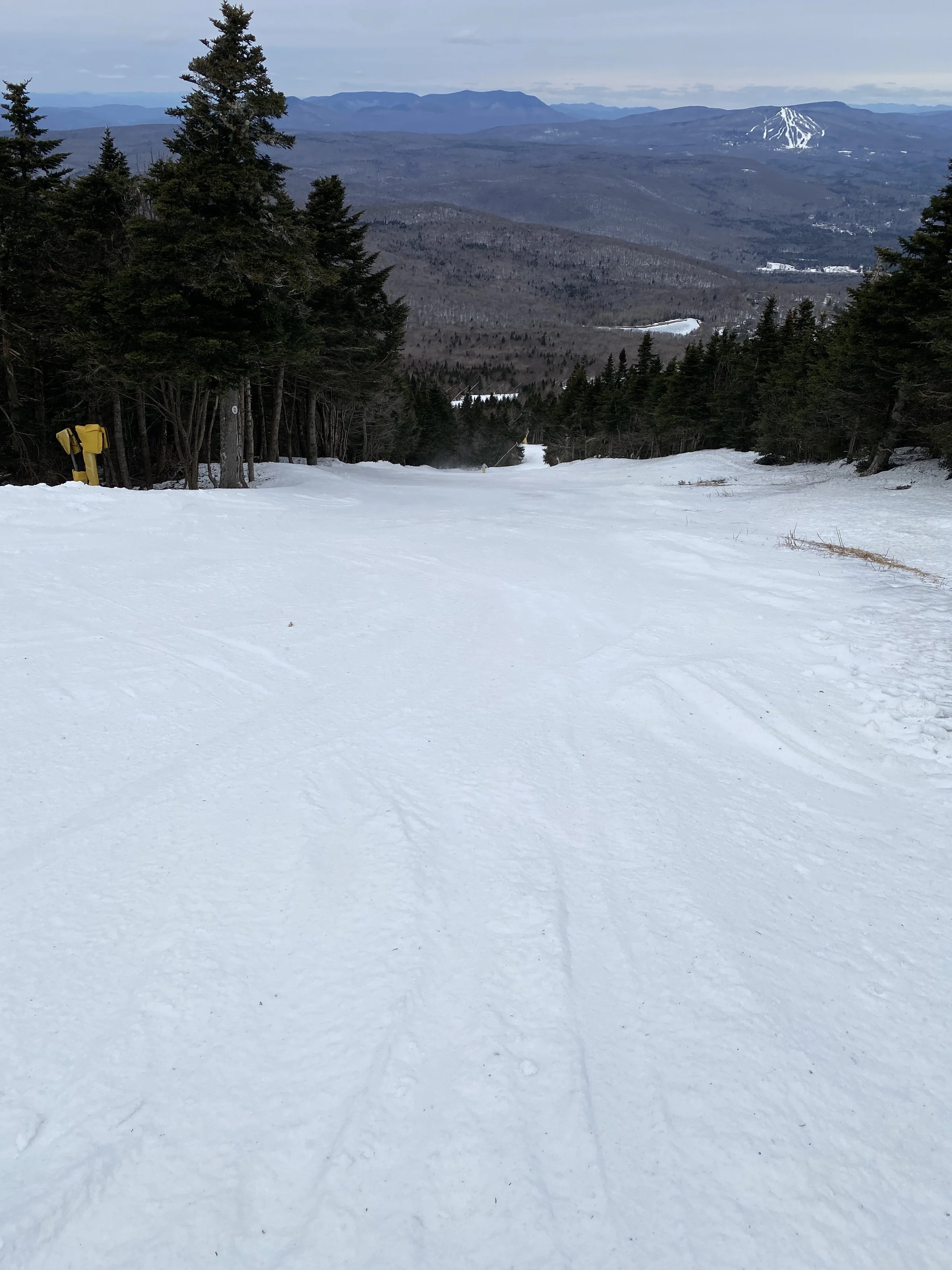 As for the terrain itself, despite its ‘Flatton’ nickname, Stratton does have some steeper trails off the summit, and I found them to be fun. A lot of the steeper runs were closed today, but Frank’s Fall Line, Upper Standard and especially Upper Spruce were all enjoyable. The first two weren’t necessarily challenging, but Upper Spruce, which was my favorite run of the day, had a nice steep pitch to it.