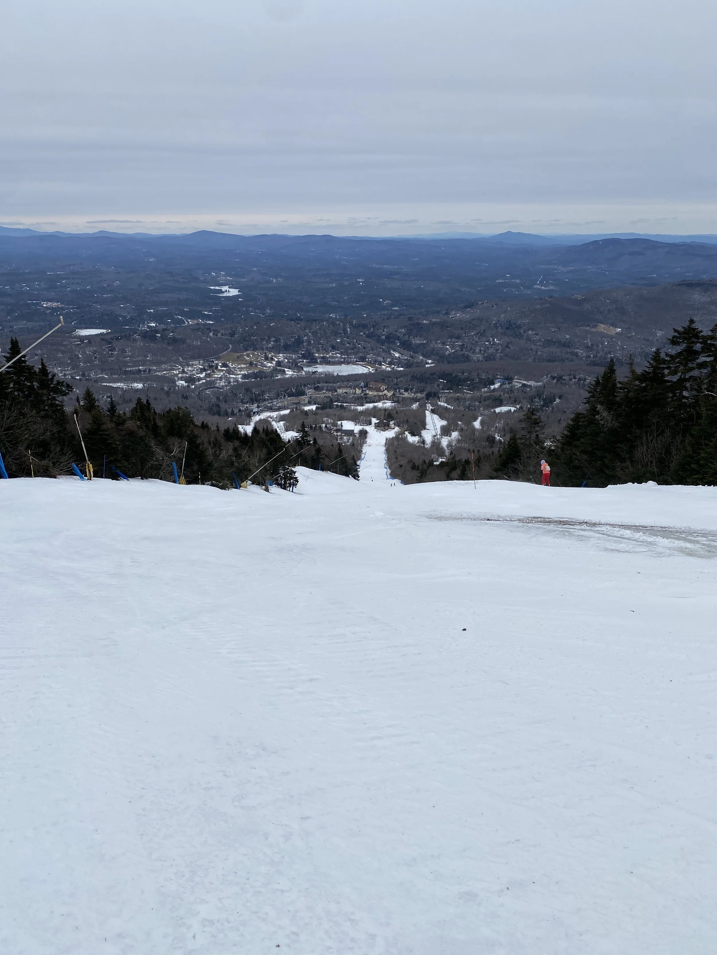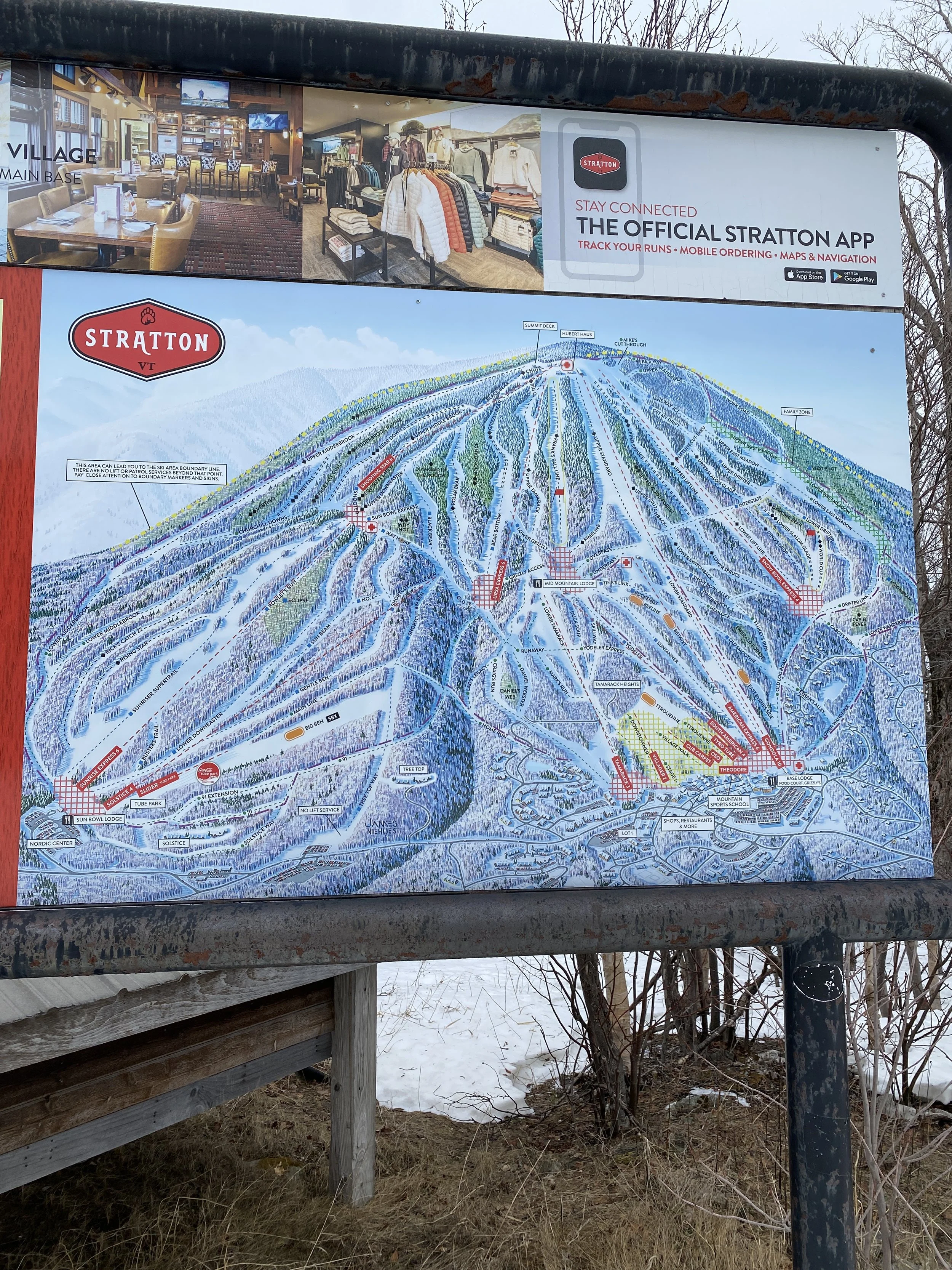In today’s edition of ‘I did this thing so you don’t have to,’ I headed to southern Vermont to ski Stratton Mountain. I didn’t really go there so you don’t have to, but rather, it’s on my Ikon Base Pass and it’s the last mountain in the Northeast US that I’ve yet to visit on the pass this season (or ever). I like to ski all of the places, so naturally I wanted to visit Stratton. I actually had been trying to get there earlier in the week, but things kept coming up, and then yesterday looked like it could be windy, so today it was. This mountain has been nicknamed ‘Flatton,’ hence why I asked if it was really flat in this blog’s headline. We’ll talk more about that later.