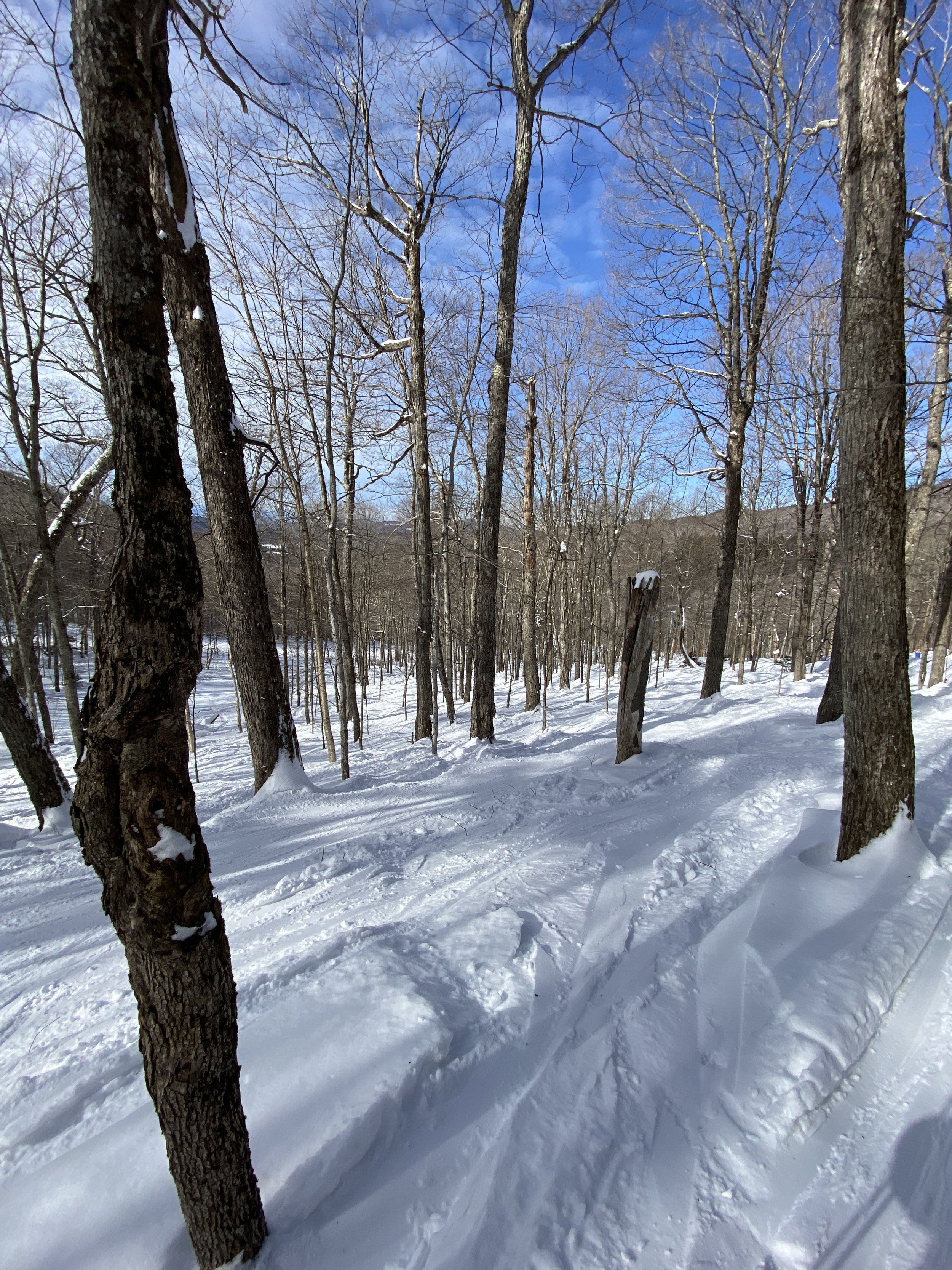 Let’s talk about the glades, because I think that’s where this place shines, at least to me and Pro Skier Darren White, aka the Glade Master himself. Middlebury has a pretty good mix of skiable trees. Some are steep, some have a low pitch, some are tight, and some are wide open. If you want it, they got it. The trees here are a ton of fun.