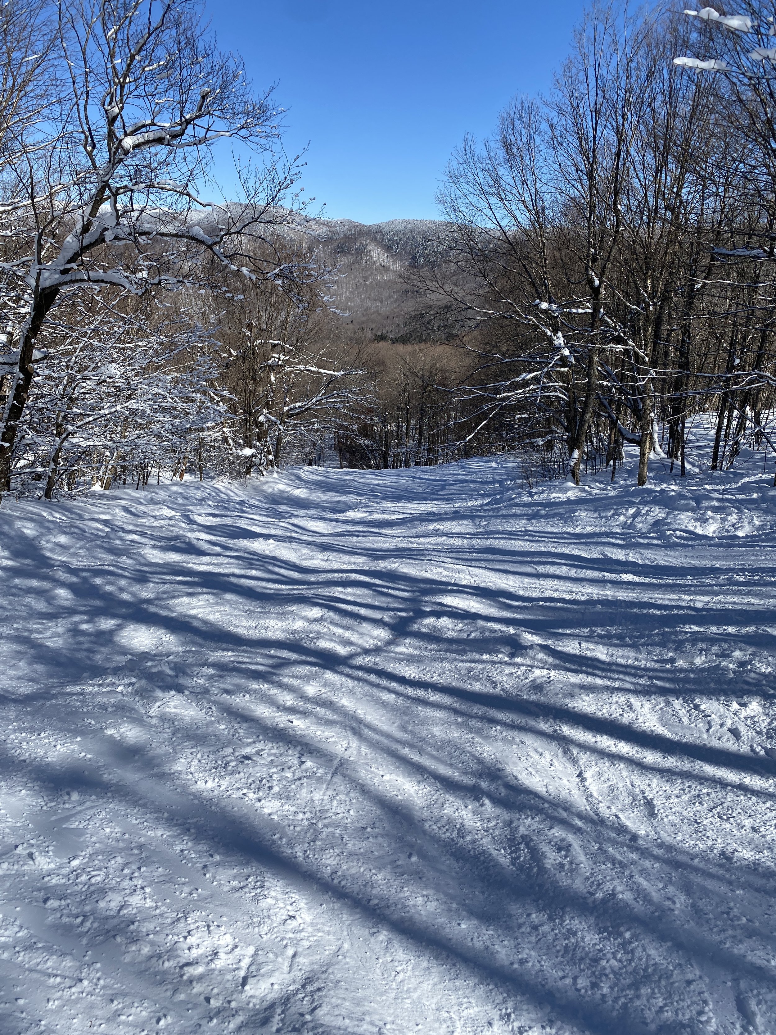 As mentioned, today was a surprise. Not because we ended up at Middlebury Snowbowl — but because this place is awesome. It is an underrated gem. There’s a pretty good variety of terrain. You have fun trees, fun bumps, and some decent groomers. Both Pro Skier Darren White and I were surprised at how steep some of the glades were. The best part? You didn’t have to ski the steep parts if you didn’t want to, as there were ample access points.