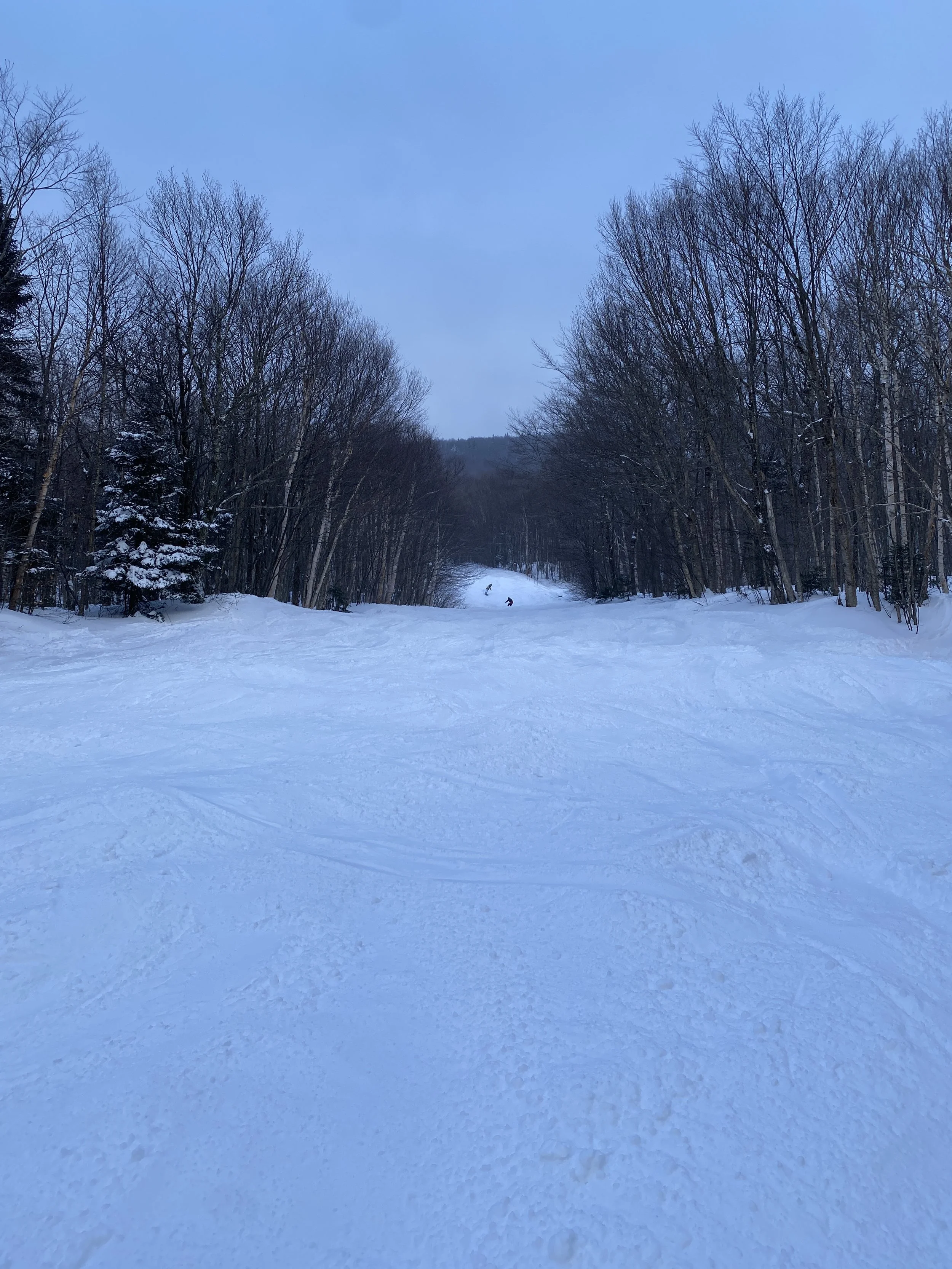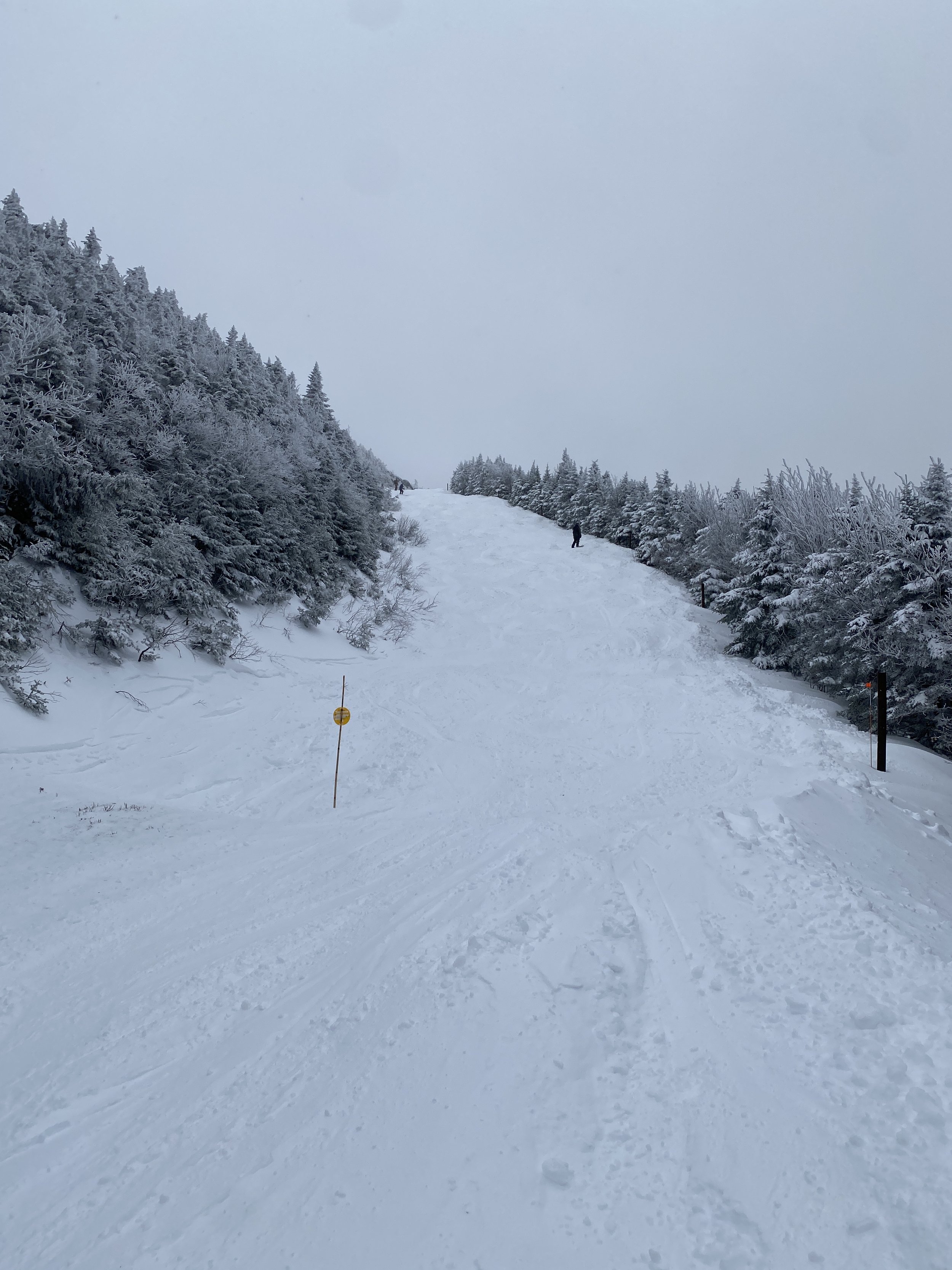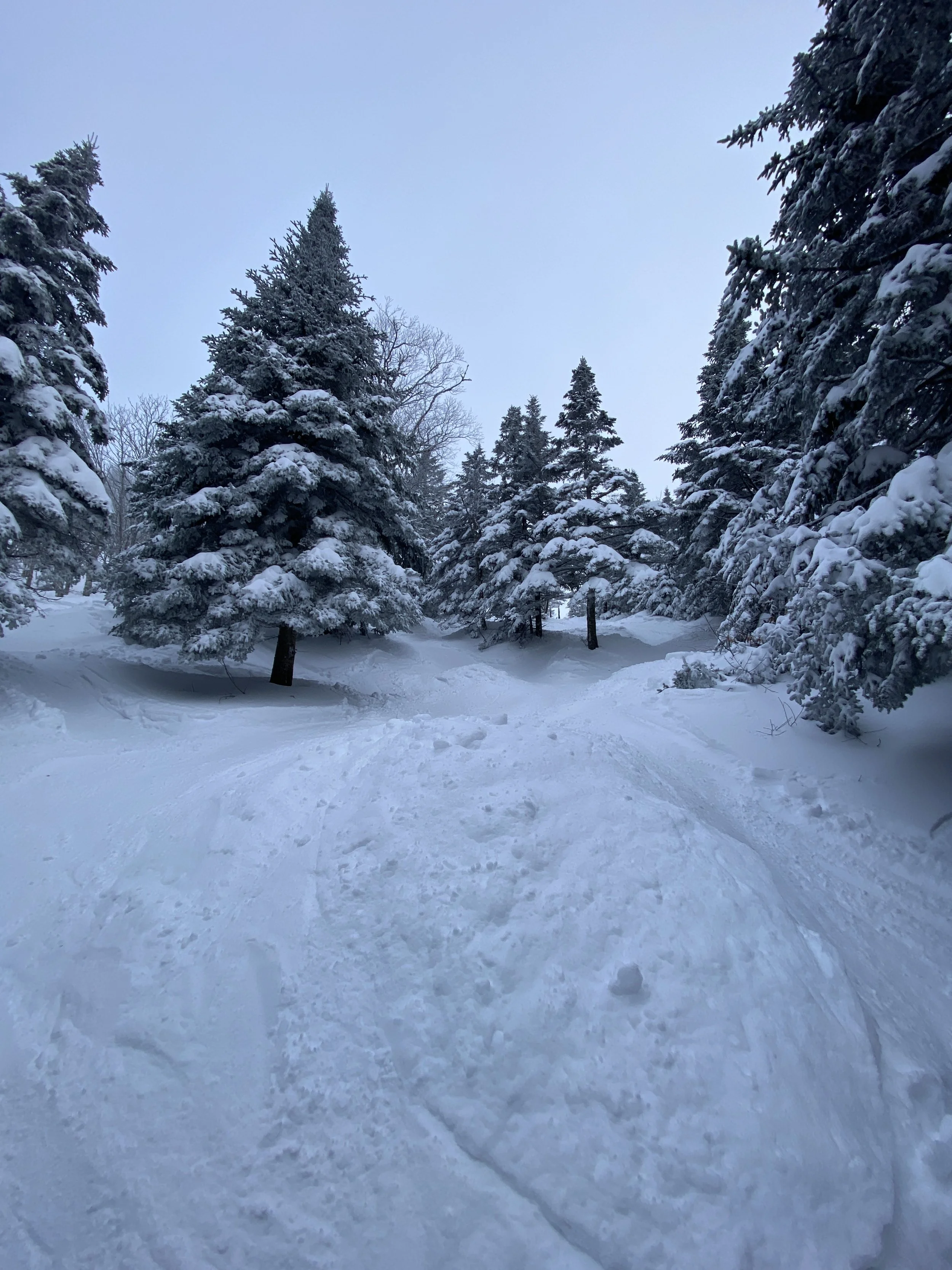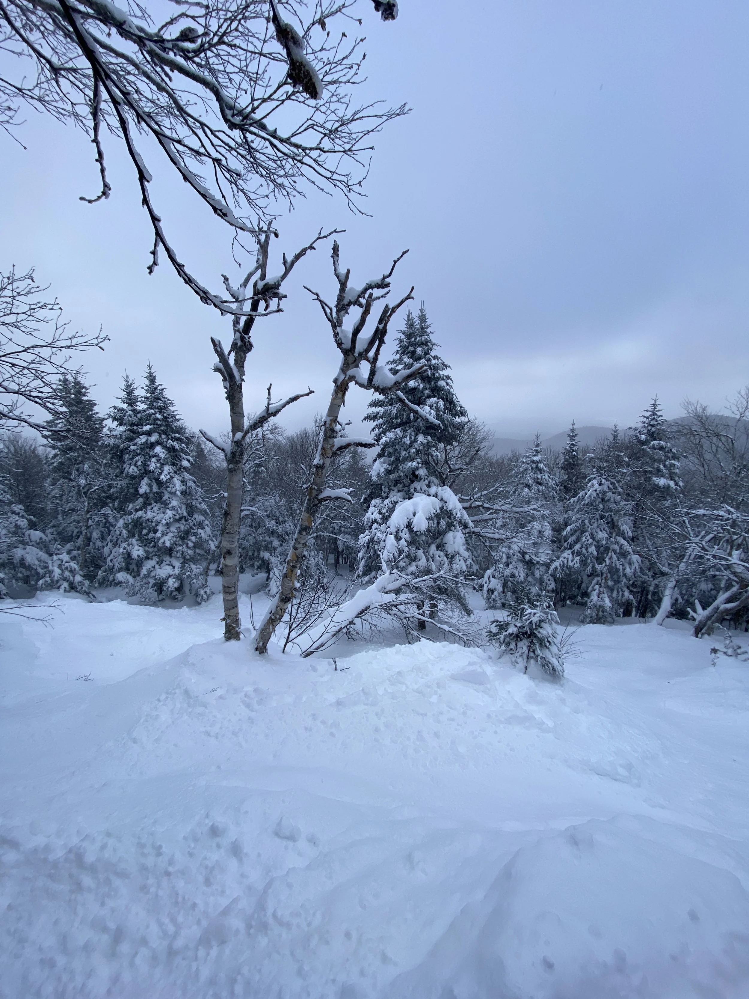 I spent most of my day skiing the trees, but I did ski some groomers and cut trails to reach the glades. Conditions everywhere were fantastic. It was essentially a powder day. Despite a little warm spell this week, Jay has received more snow since and it was actively snowing today, so all of the terrain was covered in quite a bit of light and fluffy snow.