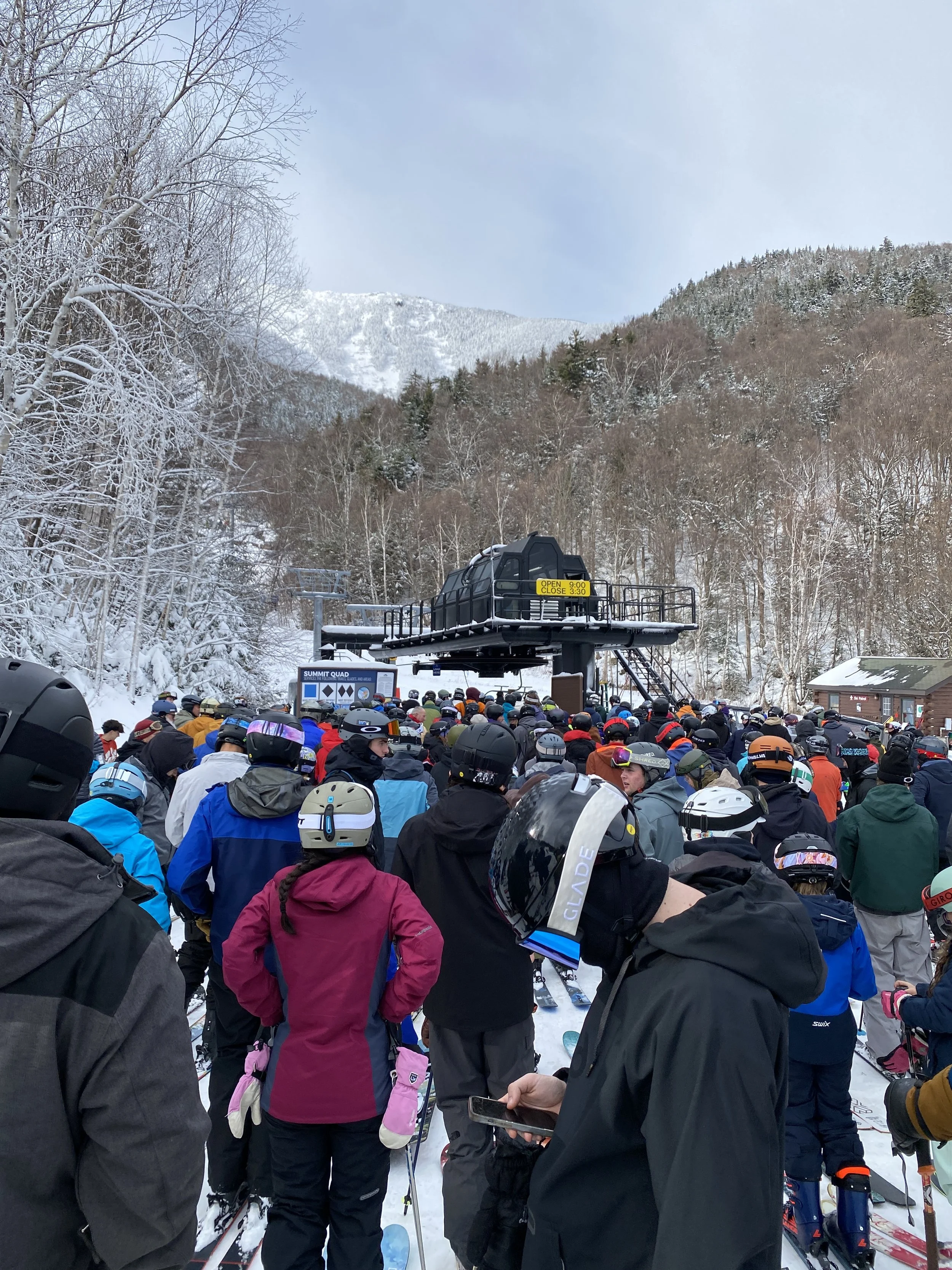 When I got there, there was no line for the Face Lift and I was able to hop right on and head up to the Summit Quad. As I exited the Face Lift, I met up with Ryan from Vermont, who I skied with on closing day at Jay Peak last year. Our first run or two together, the line for the Summit Quad was pretty long, around 30 minutes. After those first few runs, the mountain started to clear out and it was a short wait for the ride up to 4,386 ft.