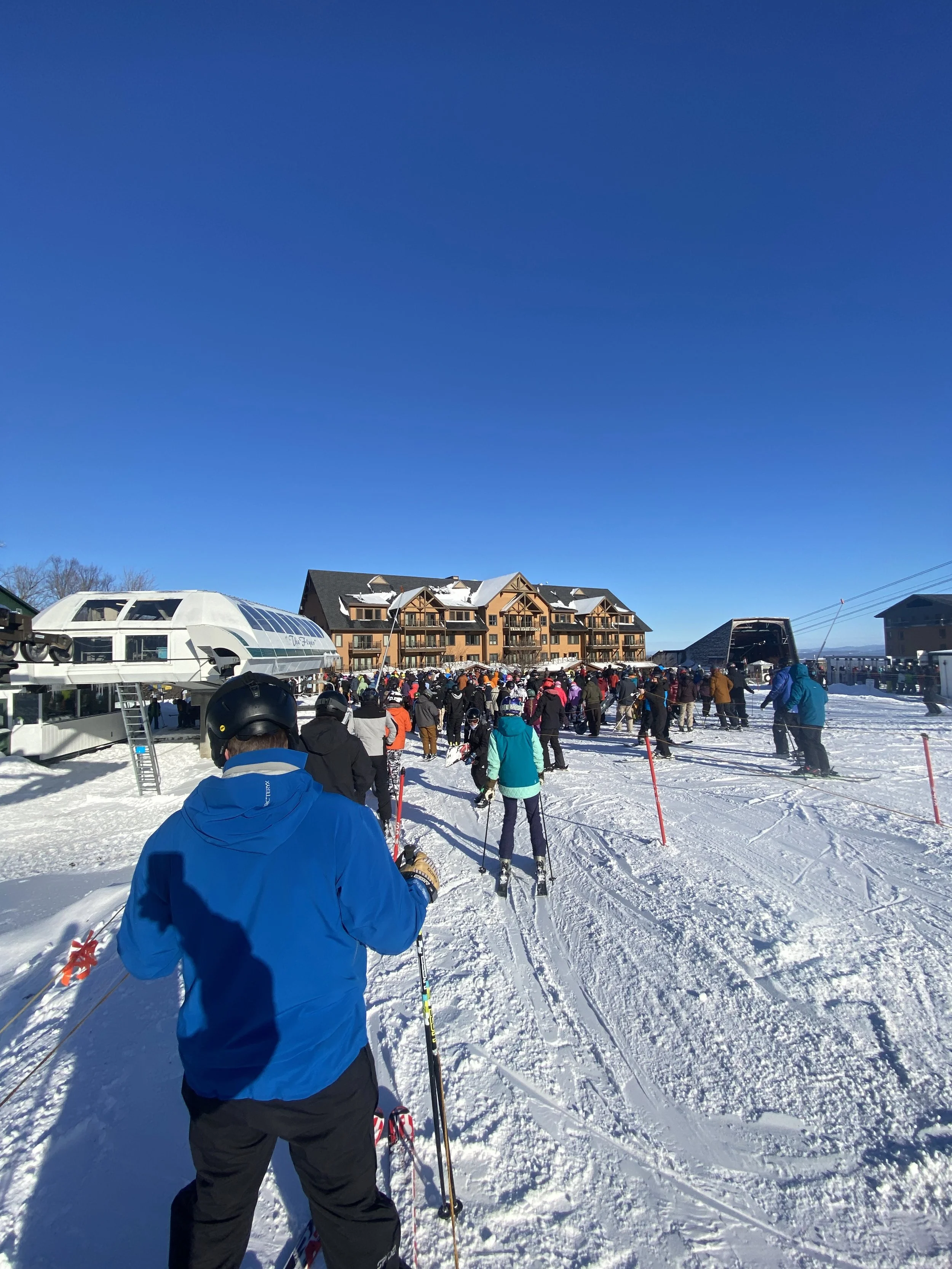 I got to the mountain at noon, which is when I was able to pick up my season pass holder gift.They were spinning all of their lifts today, and basically all of the mountain was open, minus some trails they were making snow on. We’re in a peak holiday period, and the lines at the Tram and the Flyer reflected that. As a result, after taking a couple of runs off the Flyer, I stuck to the Bonaventure Quad most of the afternoon. Sadly, I never made it to the Jet, but it is what it is. I had a great time elsewhere on the mountain.