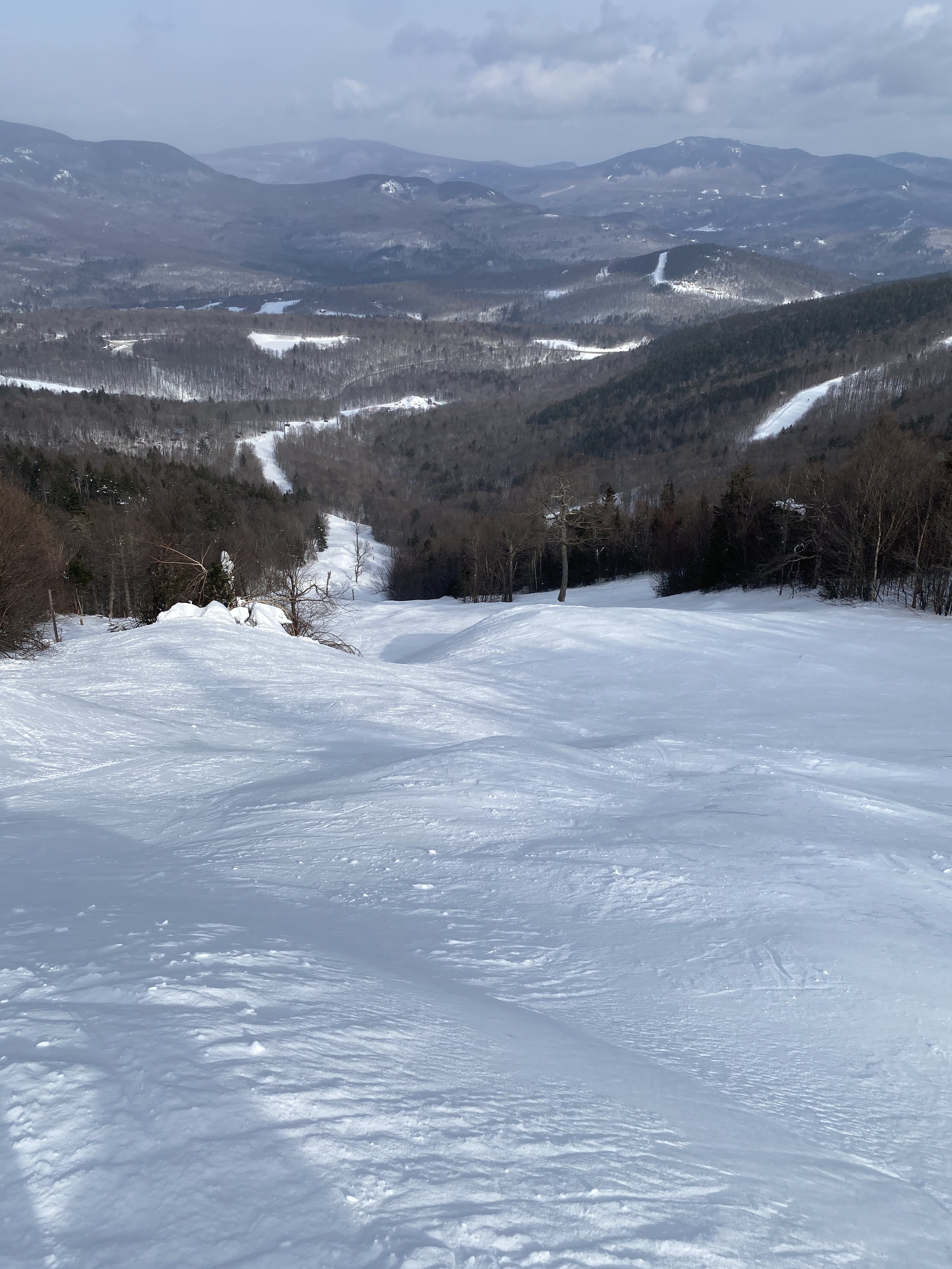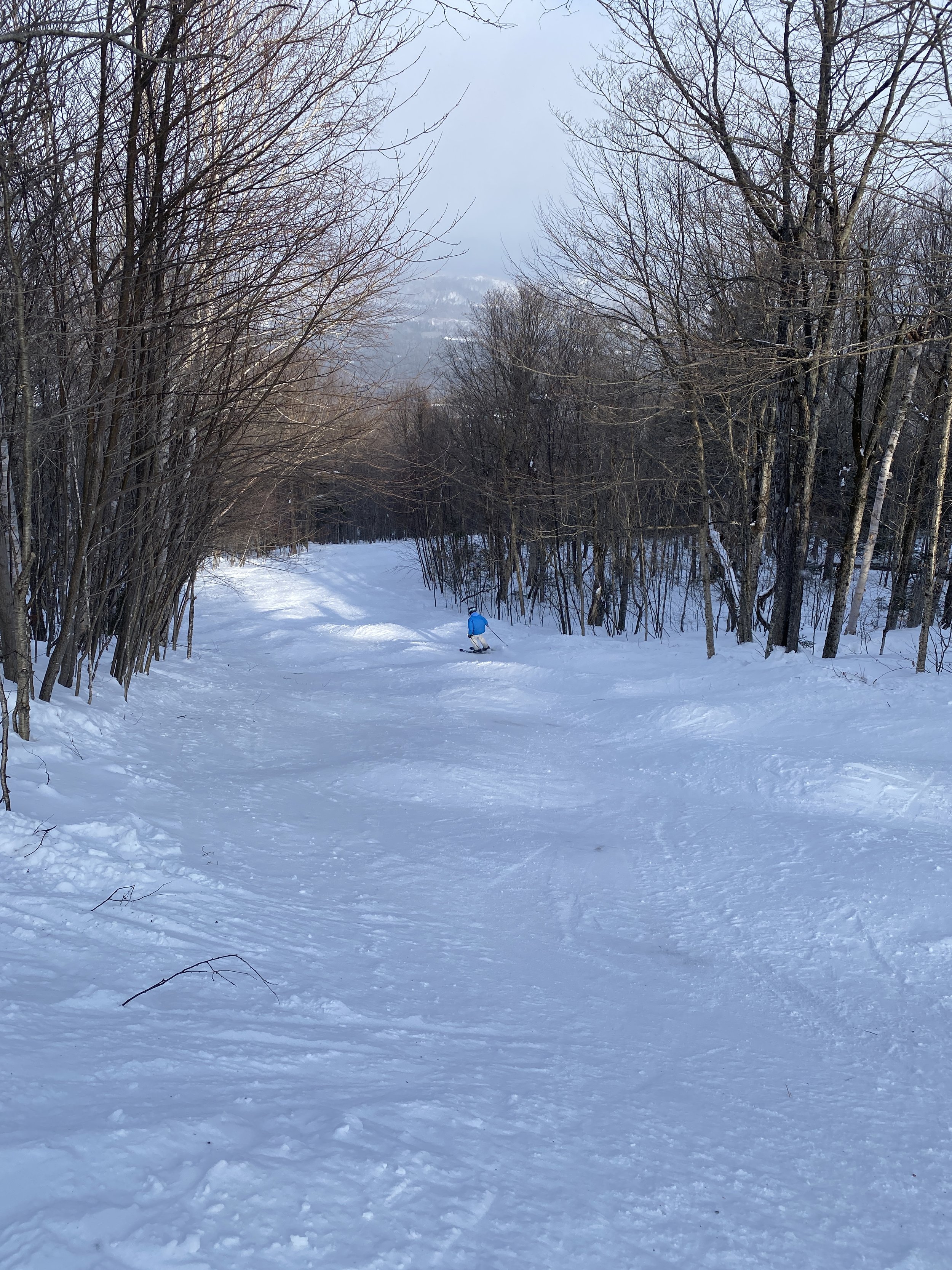 All but three runs were open and conditions were overall pretty good everywhere. On the groomers, there were some firm spots here and there, but nothing too notable. We skied two glades: Last Tango and Blind Ambition. Coverage was good enough in these woods, but there were some obstacles to avoid here and there. These trees were actually a ton of fun with amazing spacing. Next time I’m at Sunday River I hope to spend a little more time in the glades.