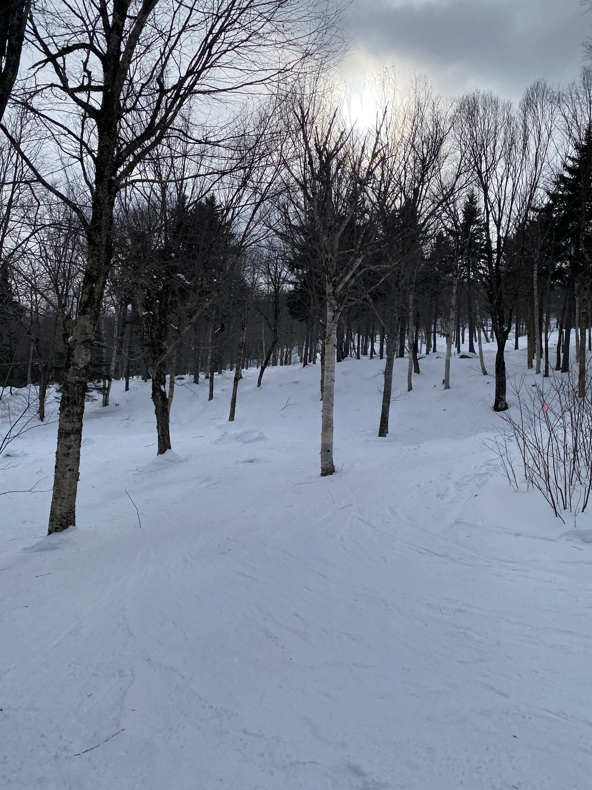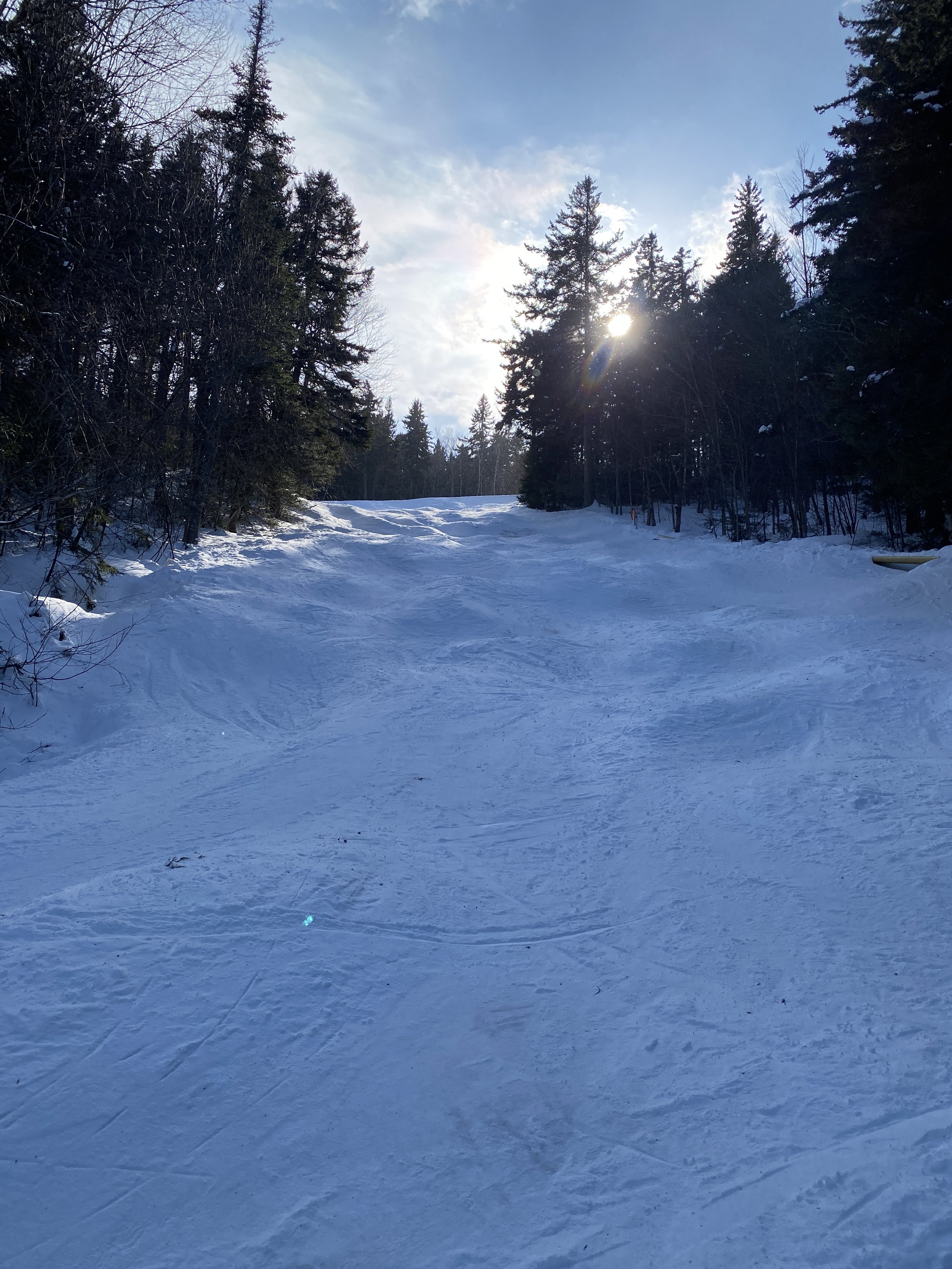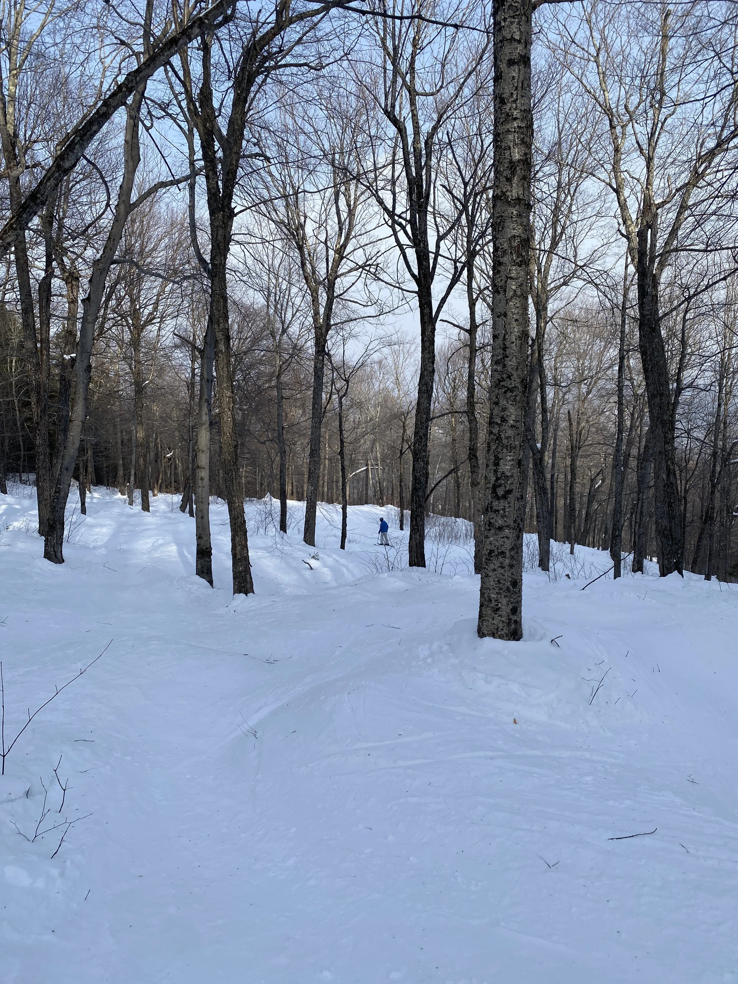 Of course it varied from trail to trail, but the natural snow trails we skied all had pretty coverage. There was the occasional time you had to dodge a rock here and there, but it wasn't enough to ruin the experience. Some of my favorite natural snow only trails today were probably Upper Cut and Lower Upper Cut, as well as Tightwire. Upper Cut is a narrow run through trees, and it was bumped up with relatively soft snow. Lower Upper Cut is a continuation of Upper Cut, though it’s not nearly as narrow. Tightwire followed the lift line of a lift. It was bumped up as well, but the snow was relatively soft.