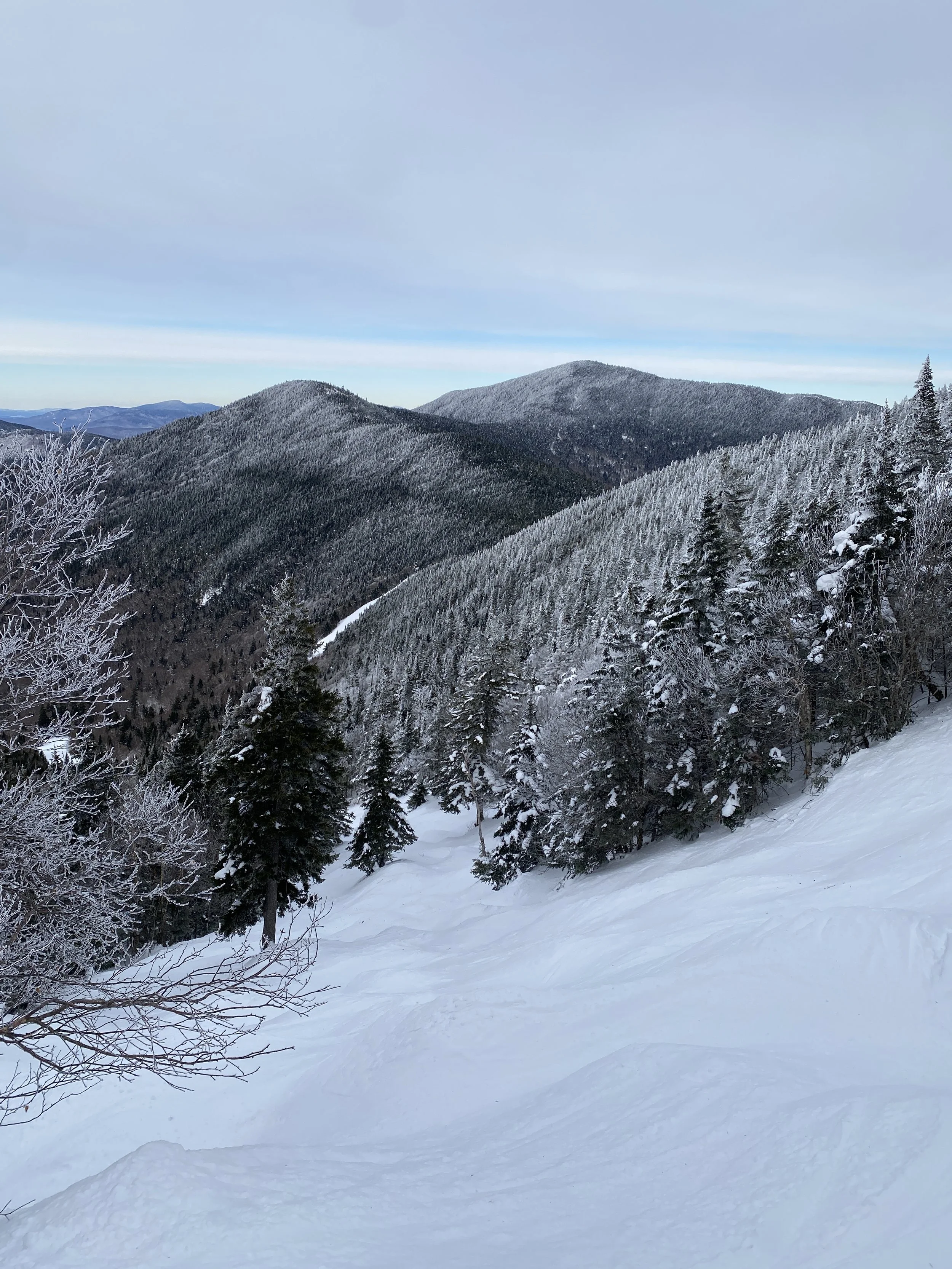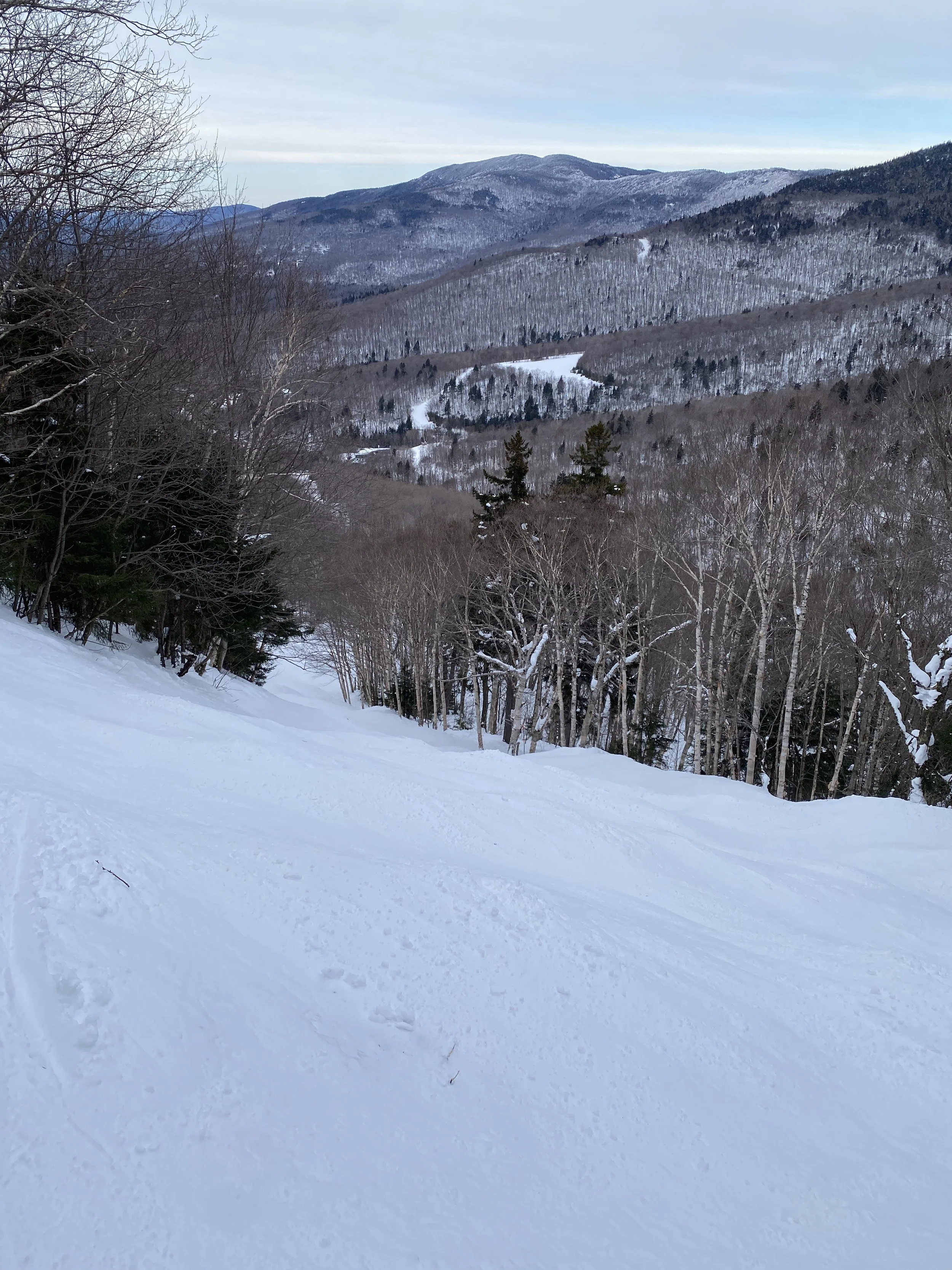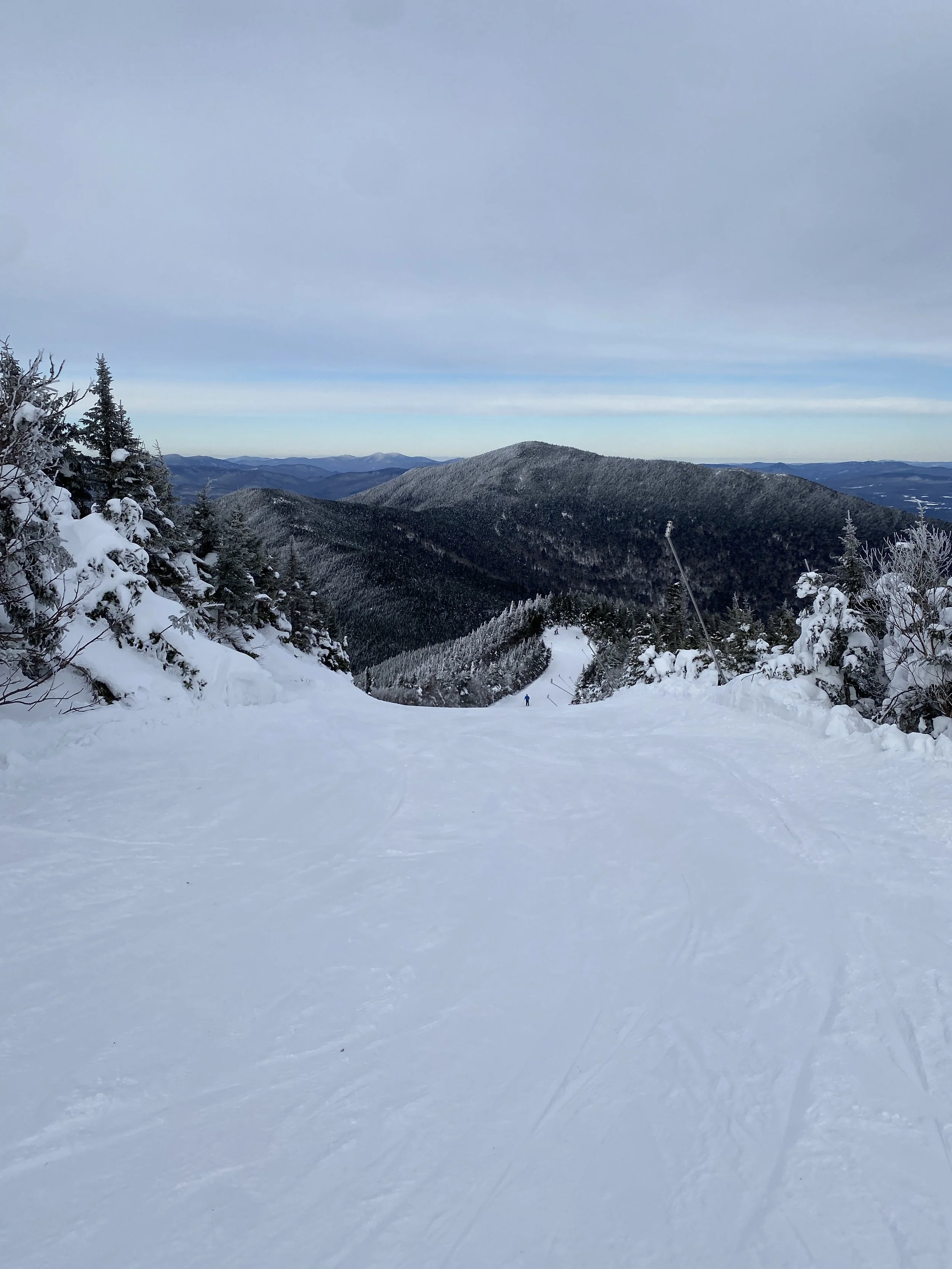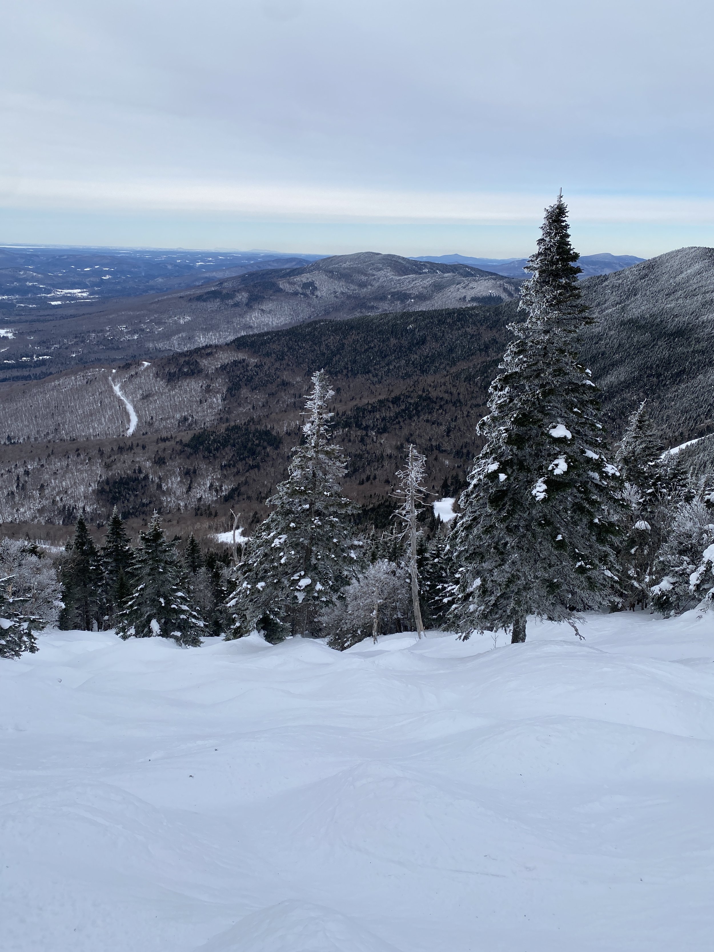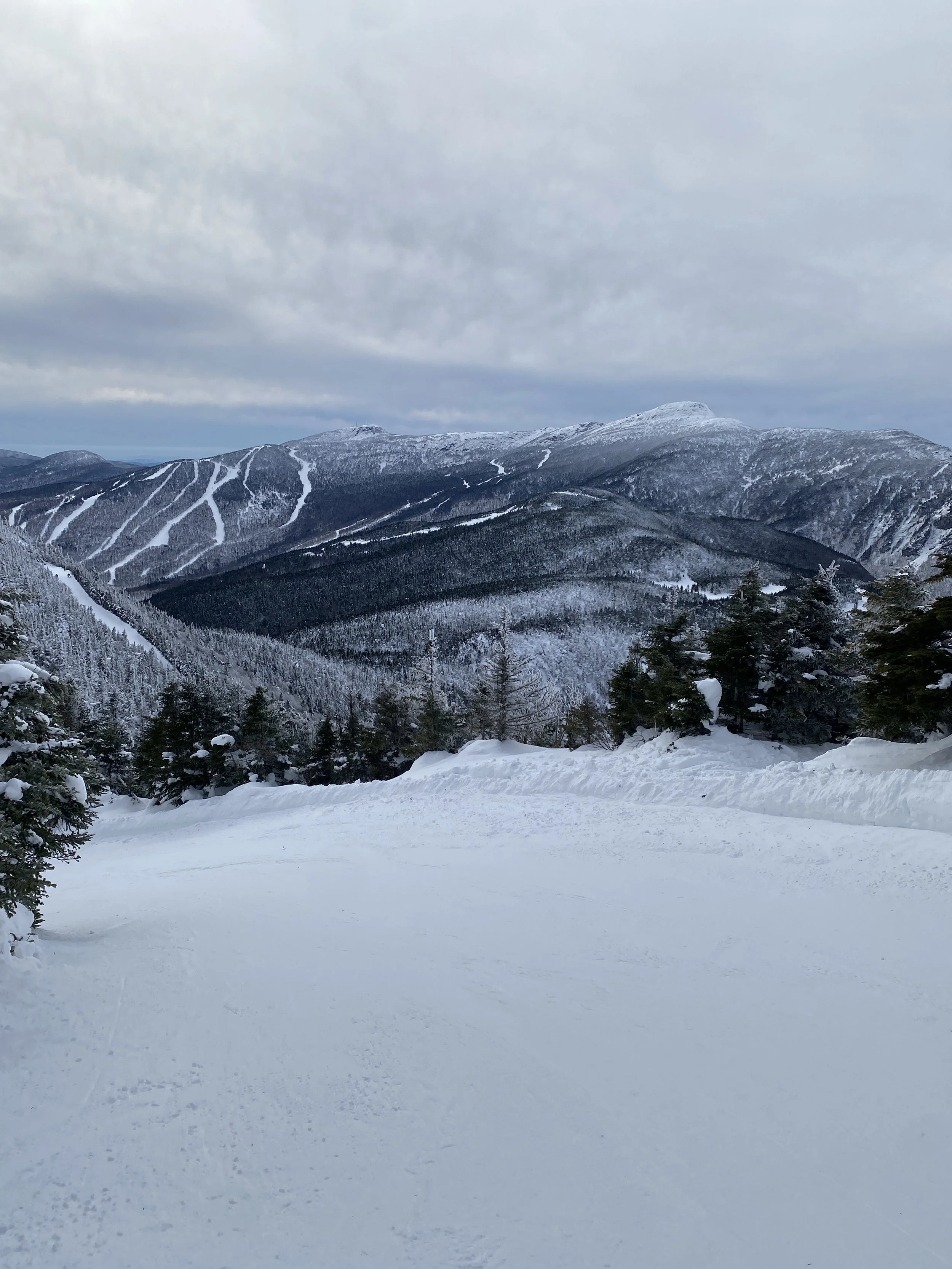 Weather wise it was a pretty nice day. As far as temperatures go, it was comfortable, with temperatures probably in the mid to upper 20s, and possibly the low 30s at the base. I can’t say with certainty, though, because I forgot to check! But it was warm enough that I decided not to wear a face mask. There were some clouds hanging around, but there were views in all directions. You could see neighboring Mount Mansfield, the Presidential’s over in New Hampshire, and even Jay Peak to the north. I know I’ve said this before, but I think this ski resort is underrated in terms of views. It’s a beautiful place to ski.