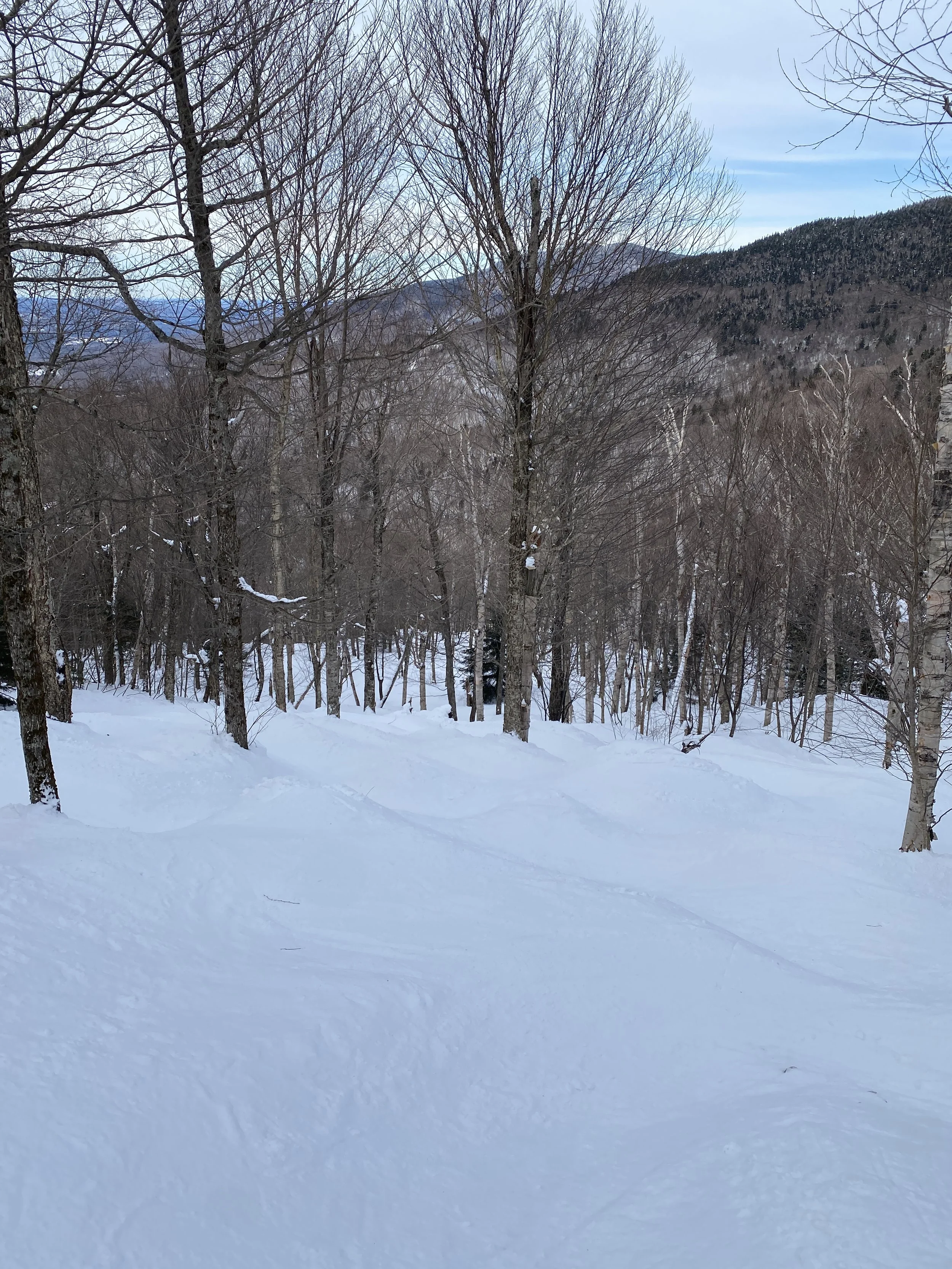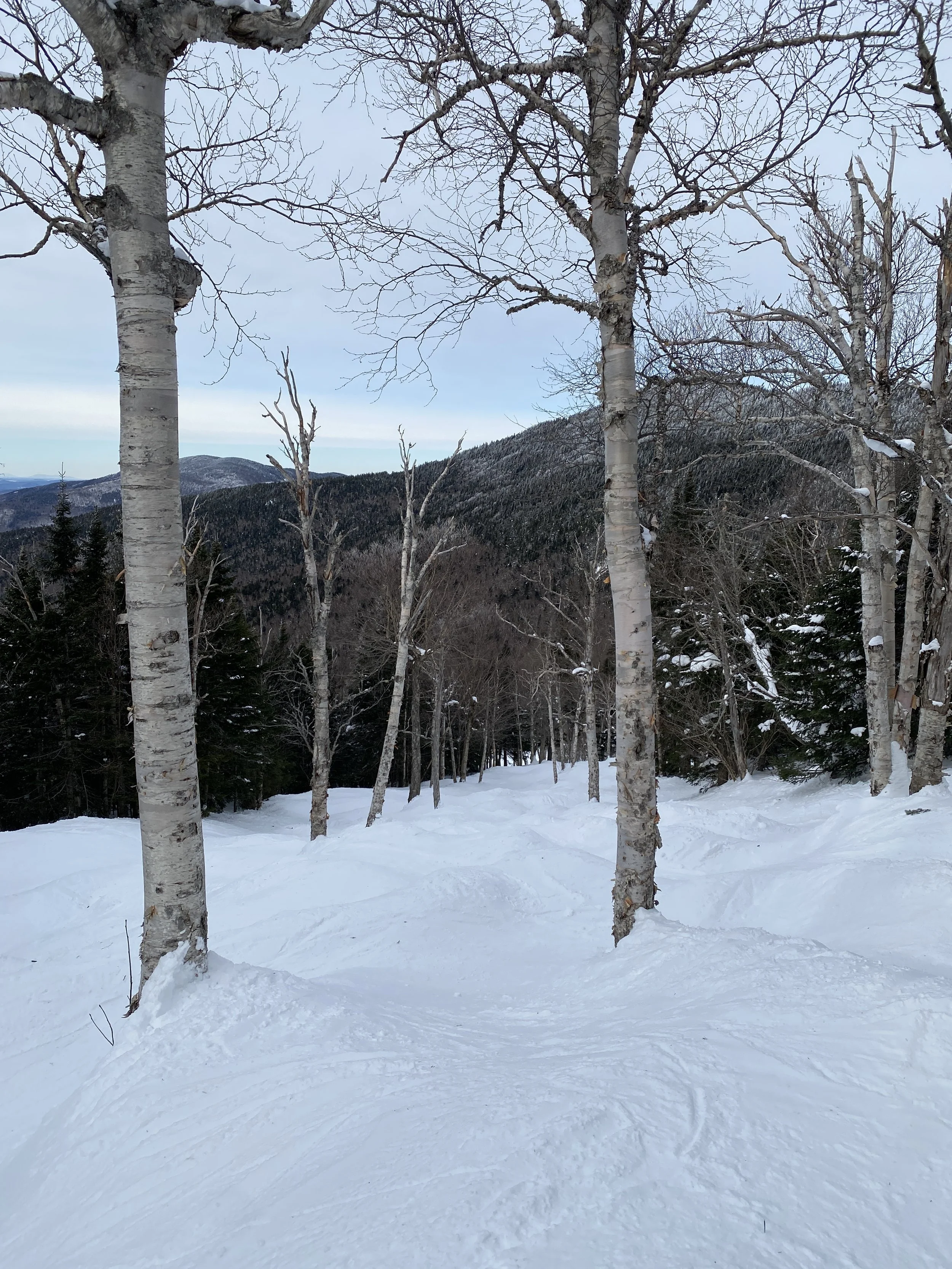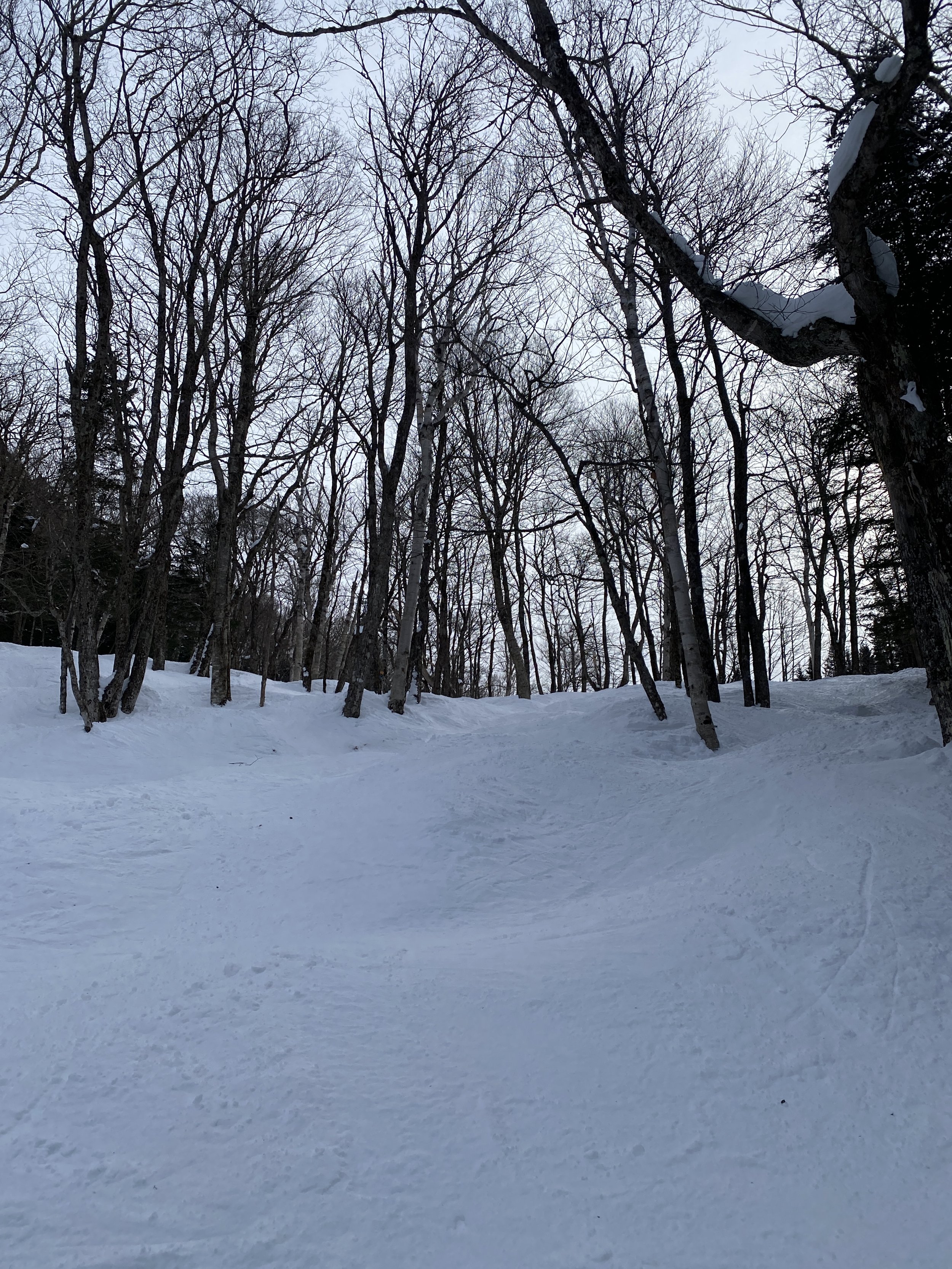 Smugglers’ Notch has a lot of terrain that’s left natural only, and I usually try to stick to that as much as possible, as I find the conditions to usually be better. The snow on the bumped runs and in the trees was great, as was the coverage. The groomers were fine, though I found them to be firm at times.