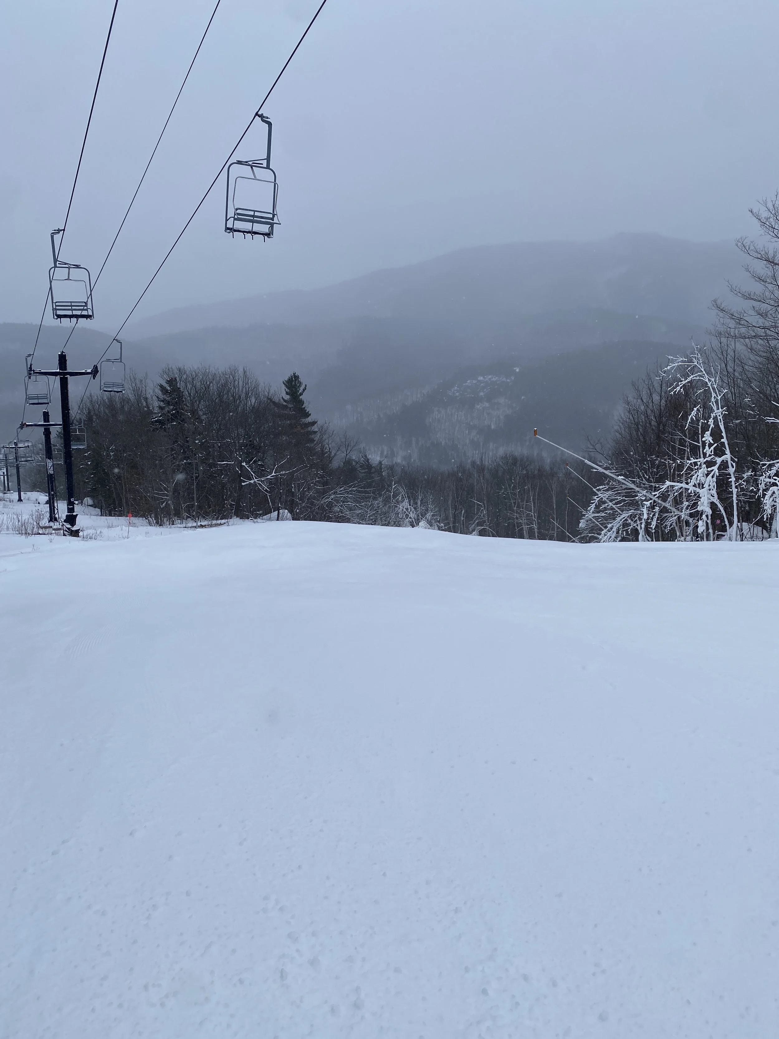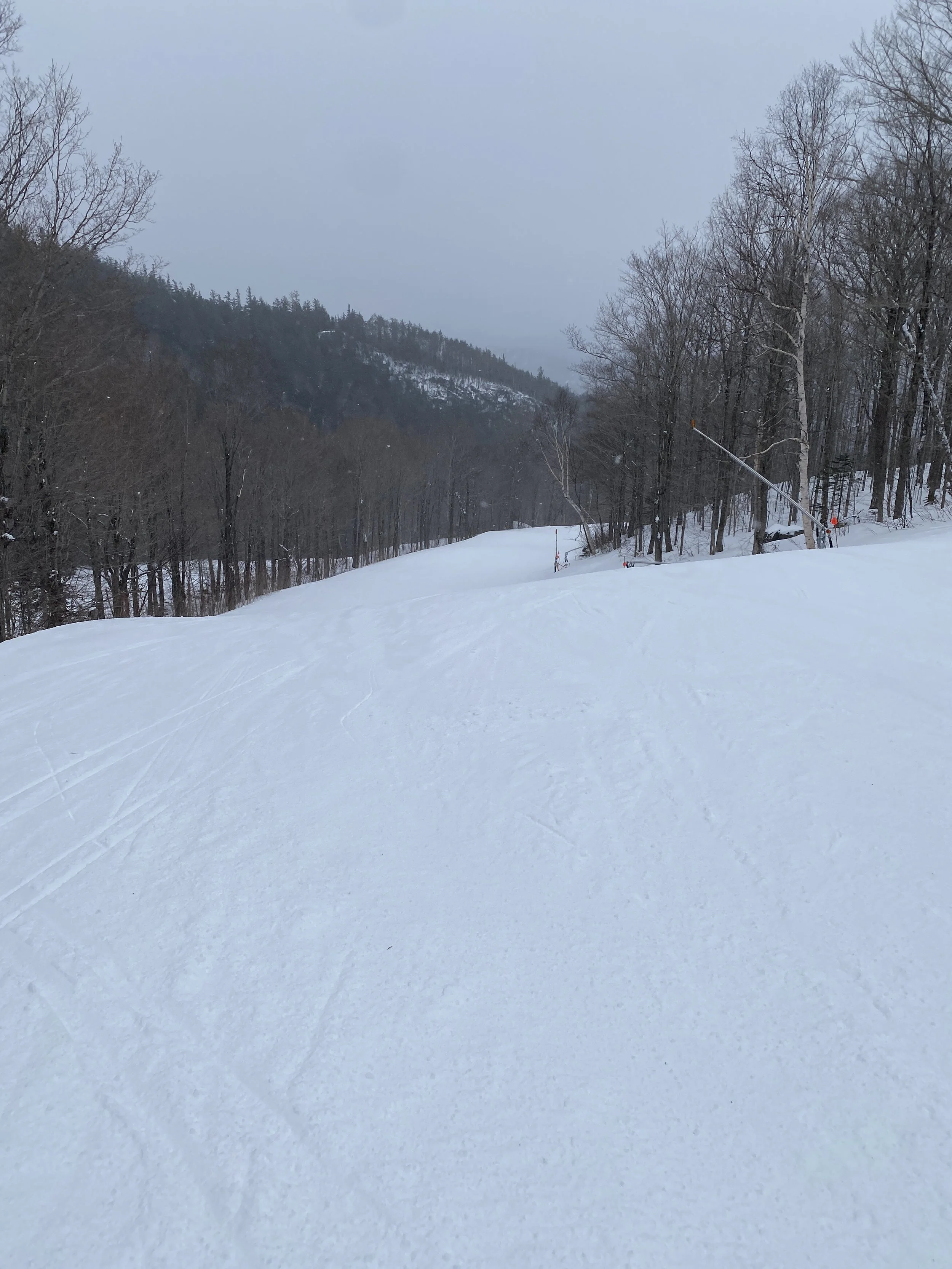 The glades at Whiteface close at 2:30 PM, so the tree fun was short-lived, but the rest of the mountain skied great — well, everything accessible off Little Whiteface at least. I did not go up to the summit or Lookout Mountain today, so I’m not sure how that terrain was.They had around 85 runs open, which included a run or two that were open for the first time this season, such as Lower Parkway. Conditions pretty much everywhere were packed powder or powder, though you could find firm spots here and there as usual, especially on steeper terrain like Victoria and Essex.