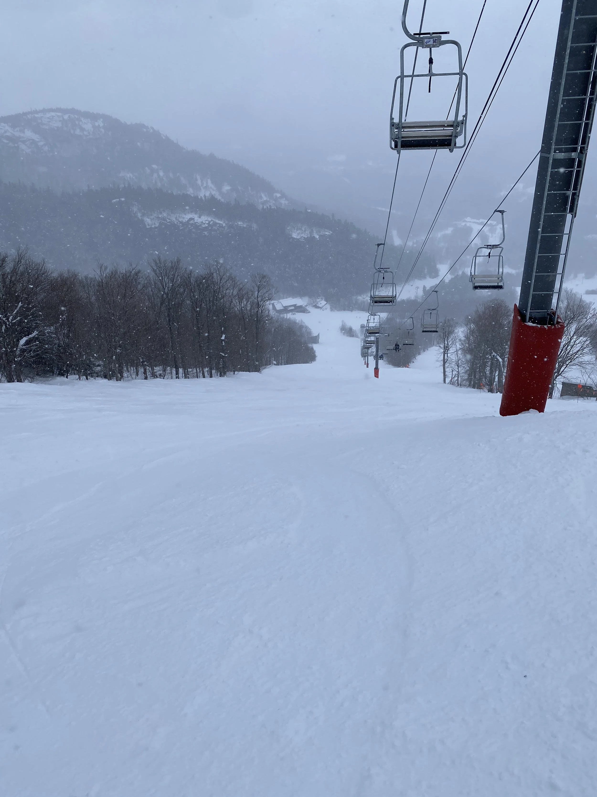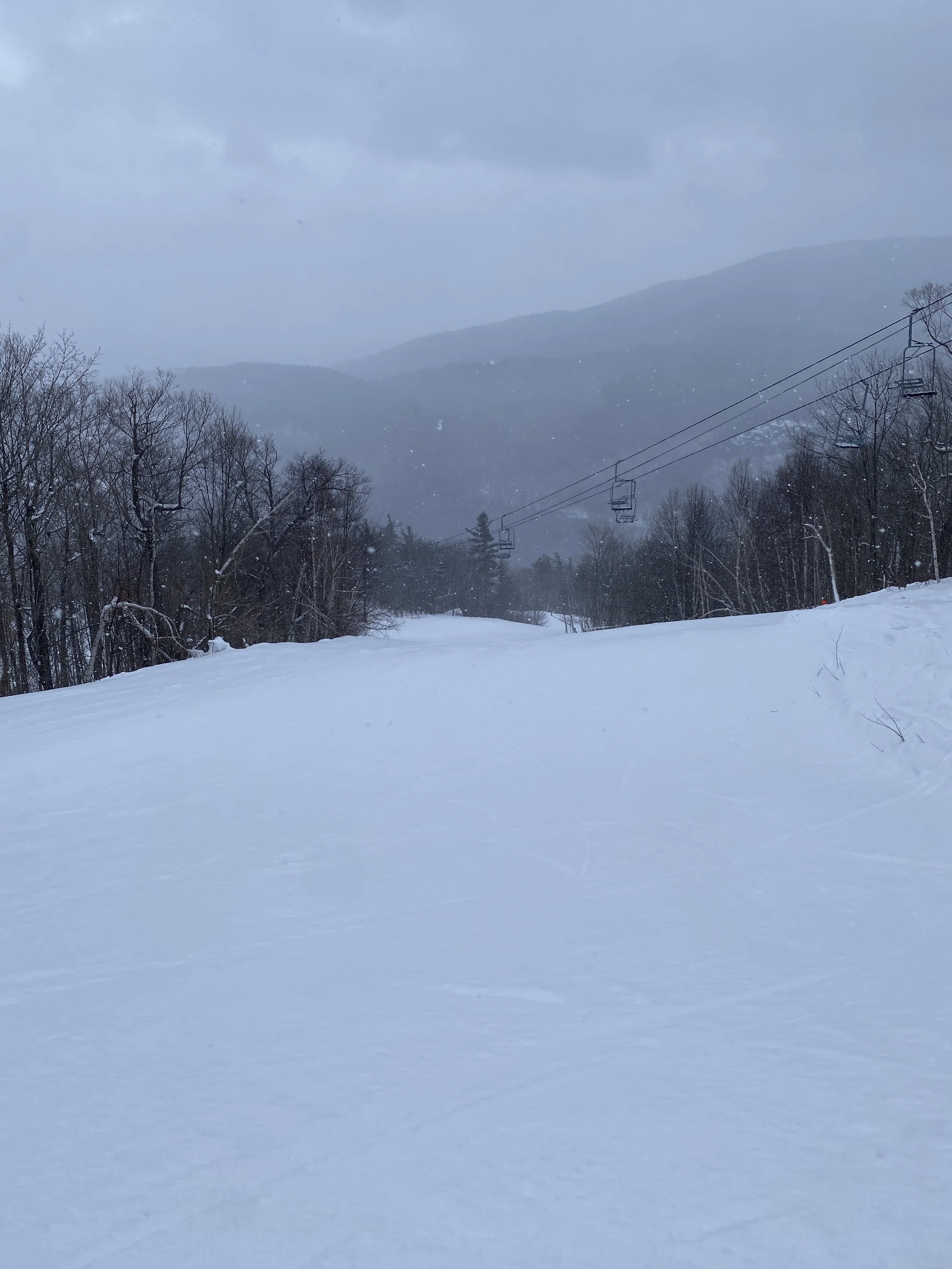 After that, my time was up, and I was back to skiing groomers. With the fresh snow, the left side of Mountain Run was a ton of fun today. This area always seems to collect wind blown snow. Another fun run was Parkway in full, and then Ausable Run after. The lower part of Parkway and Ausable Run were both mostly untouched, so they were covered in an inch or two of fresh powder.