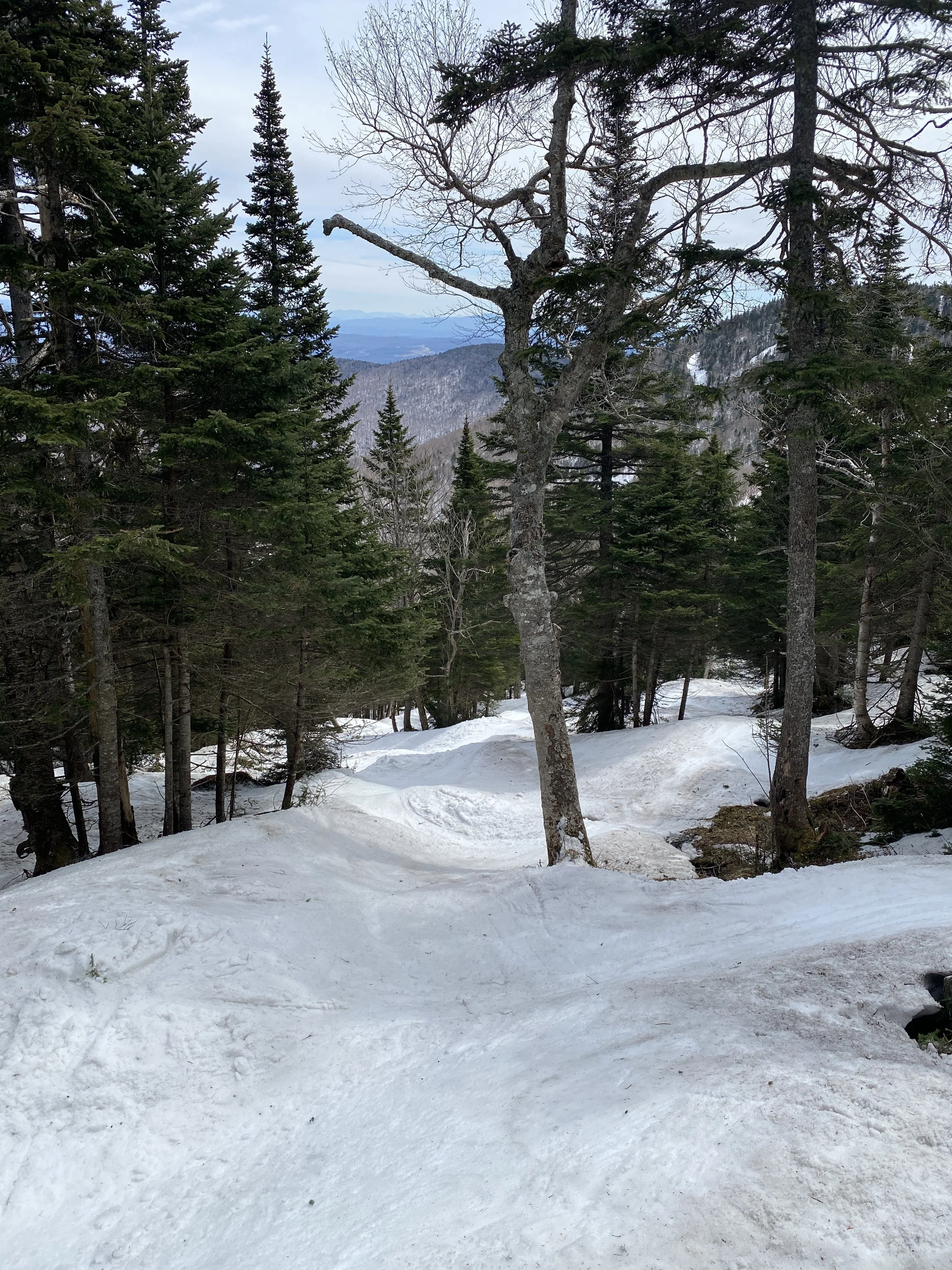 It may be mid-April, but I had a full on tree day at Jay Peak today. Most of the mountain was open, with 69 of 83 runs and glades available for skiing. Yeah, the base is slowly melting away, and there were some bare spots in the trees, but the skiing was pretty dang good for April 12.