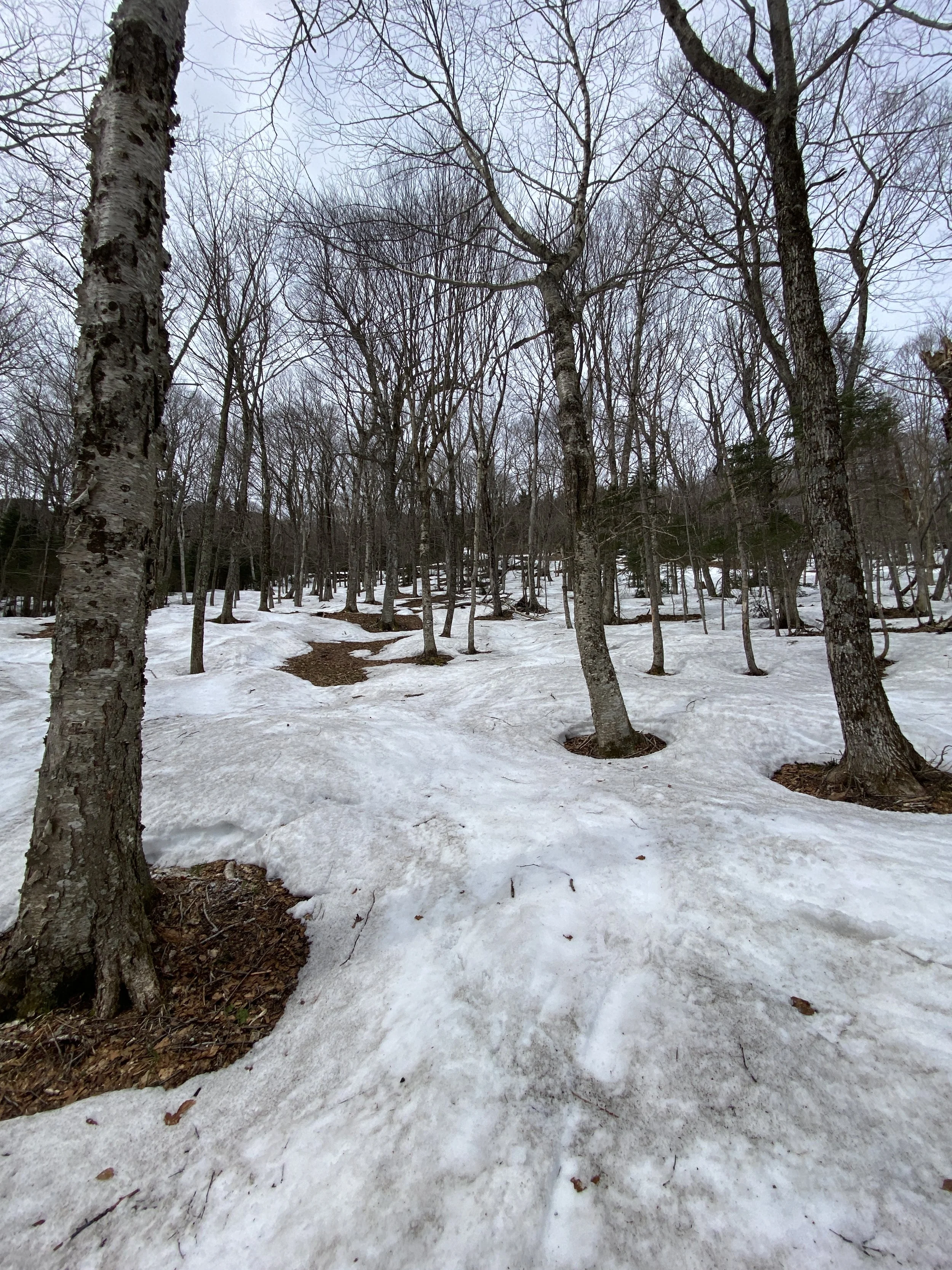 SKIING TREES IN VERMONT IN MID-APRIL