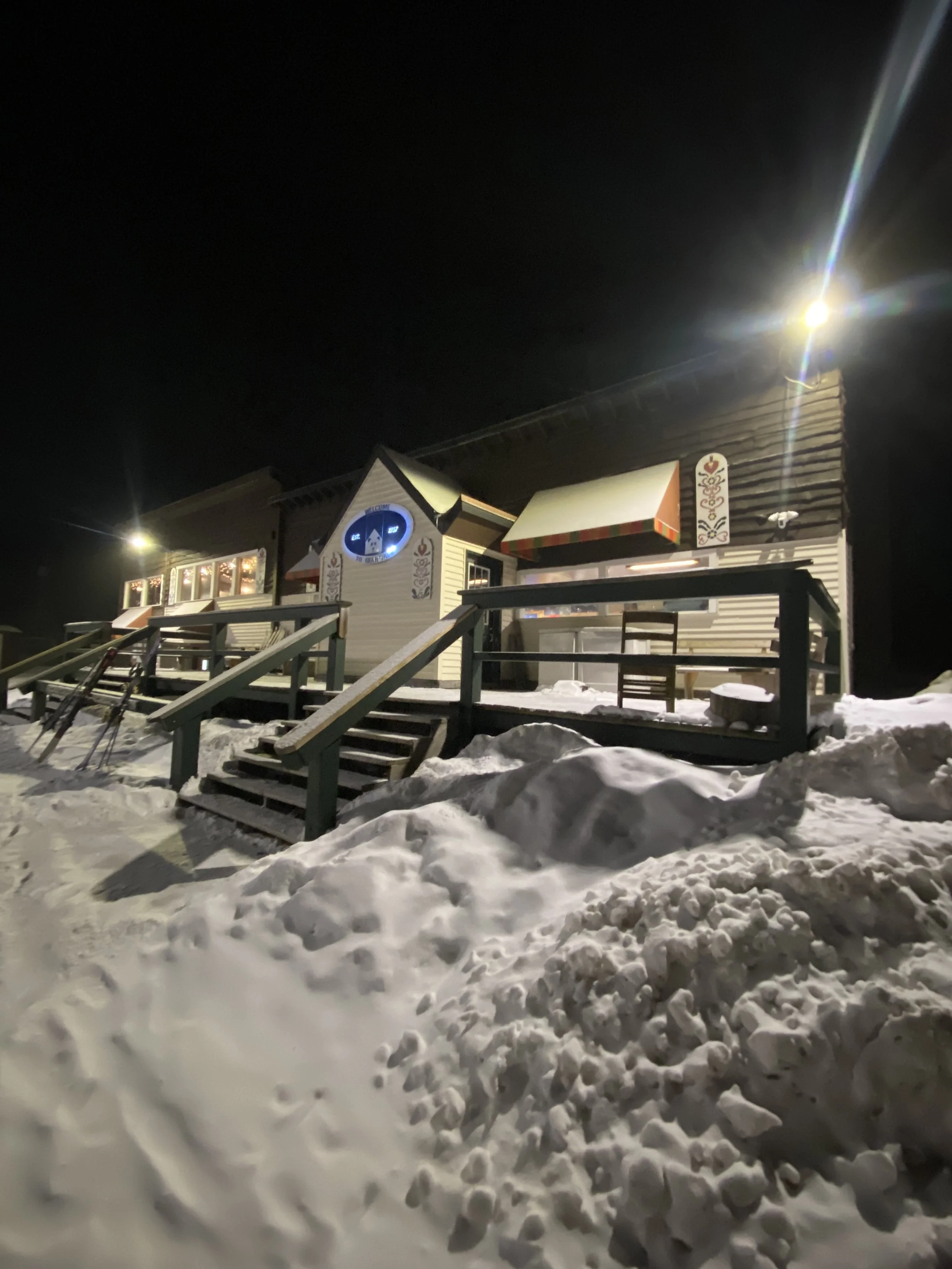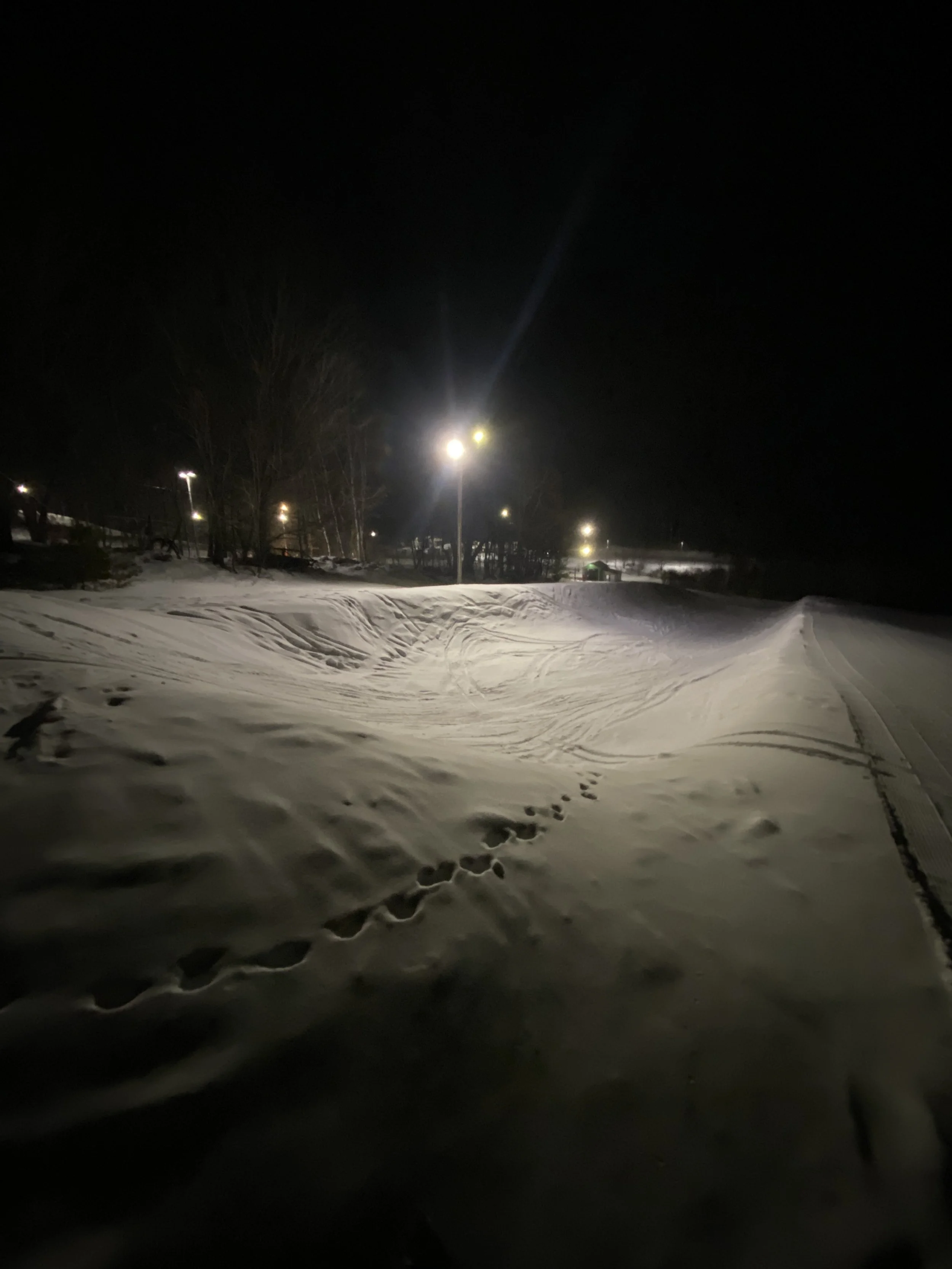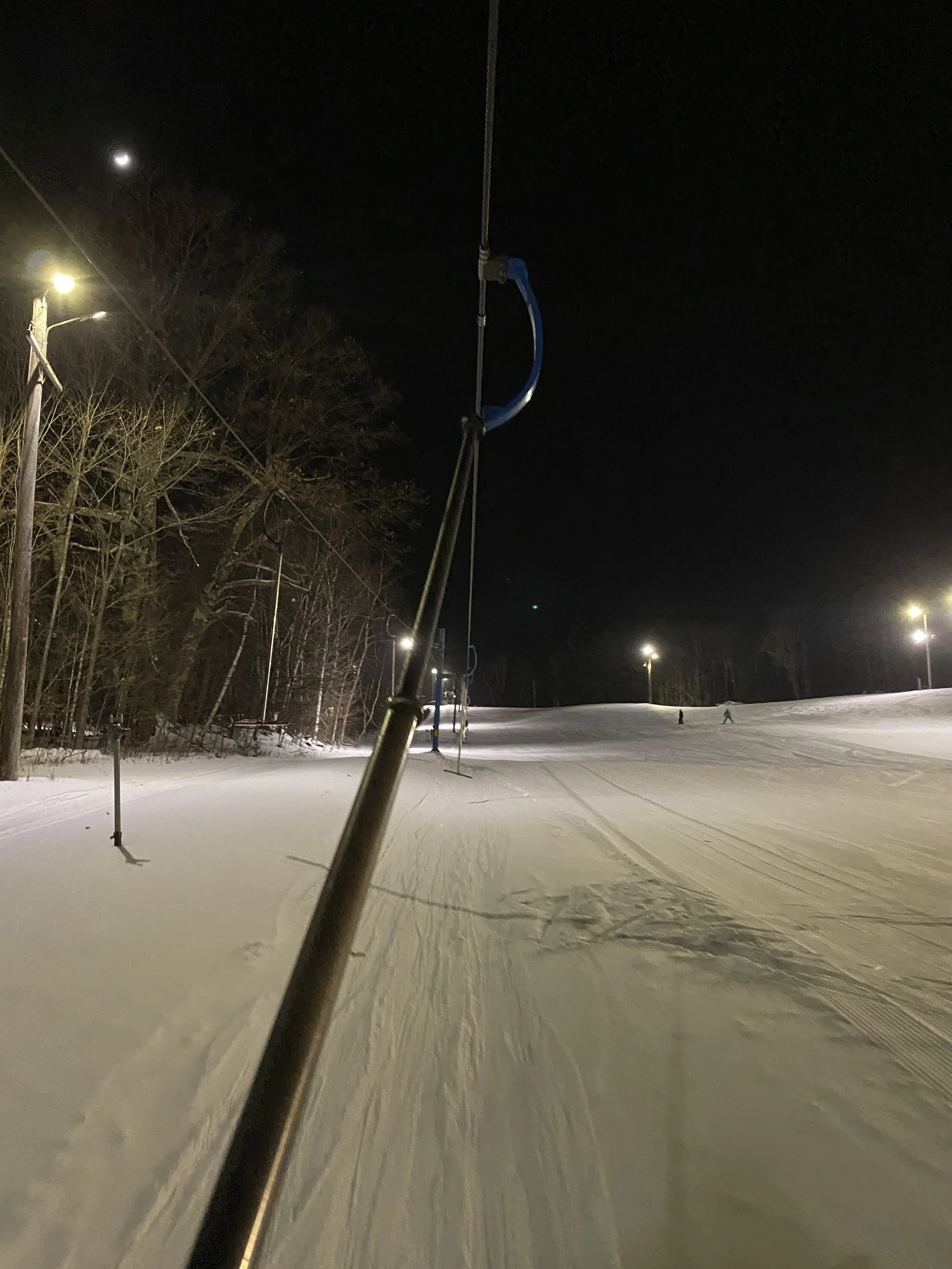 Conditions were outstanding, with packed powder and powder everywhere, and plenty of fresh corduroy, thanks to the hill being quiet. I know it’s a small ski area, but you can get decent speed and some nice turns in, and I had a great time doing just that. My run of the day was probably Orchard, which doesn’t have lights, but the lights on the hill lit it up just enough for it to be skiable. I found it to be pretty fast (relative), and the run itself is fairly narrow, so it was an interesting run to ski at night without a ton of light.