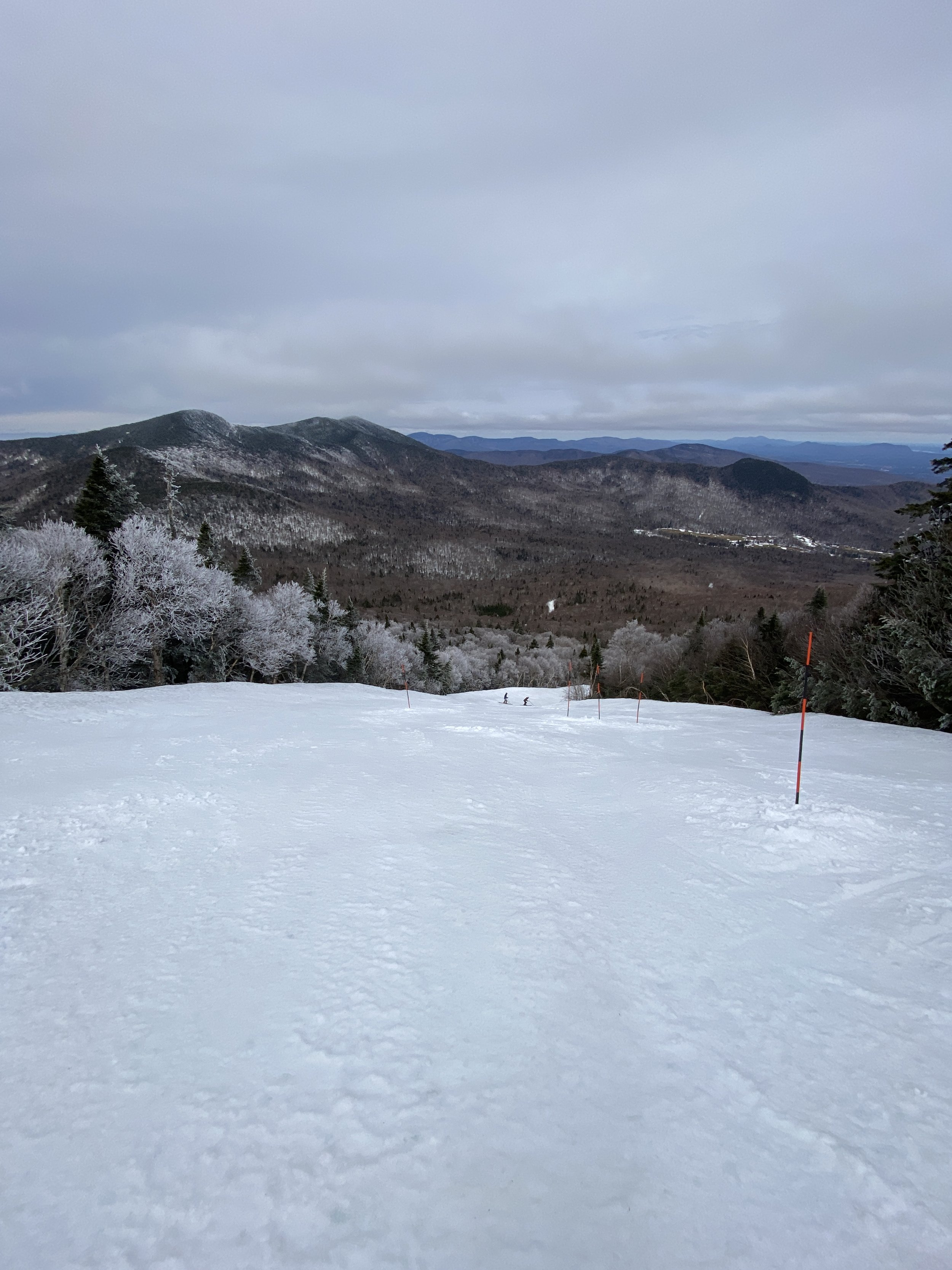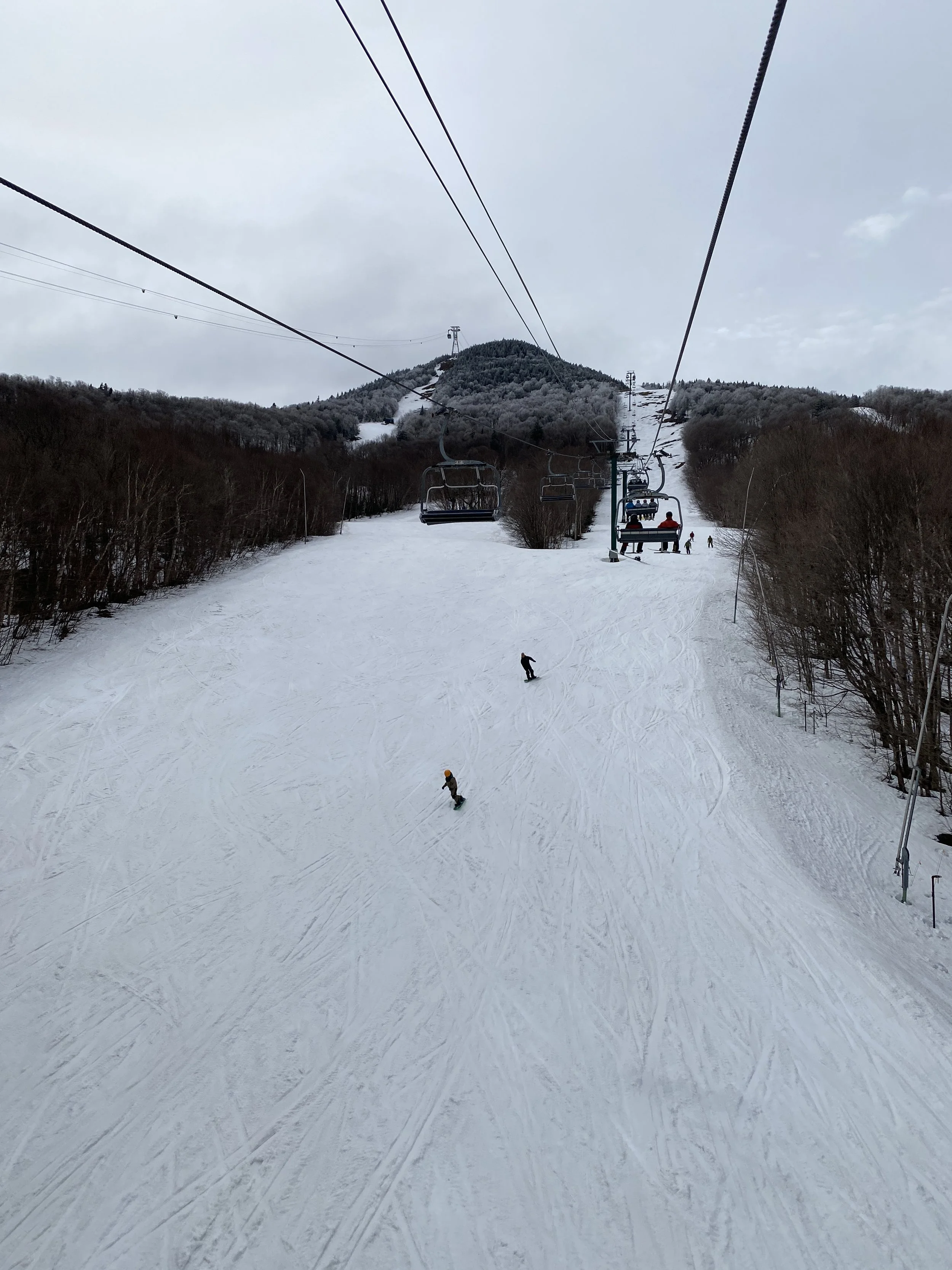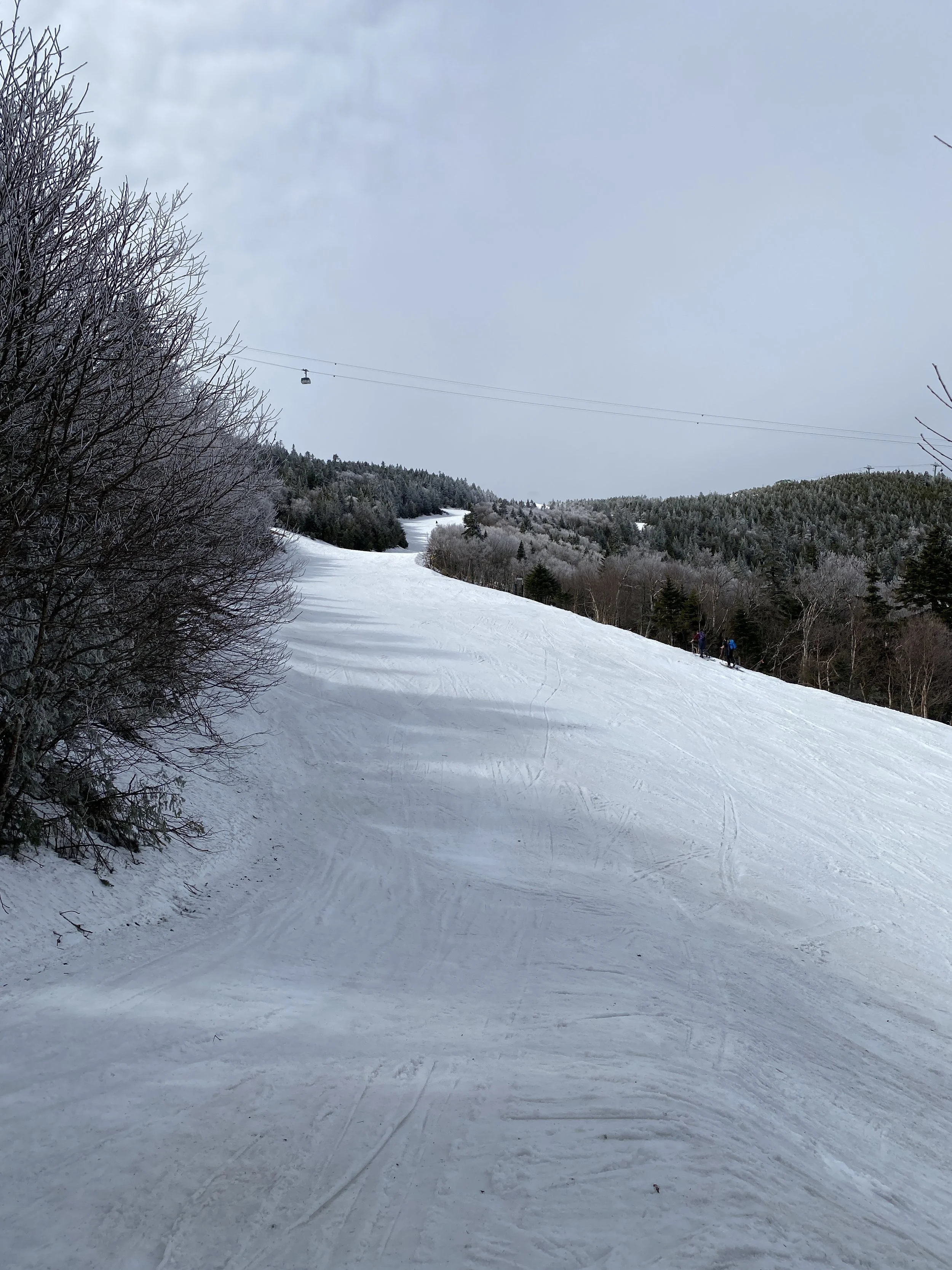 So, yes, today I ripped around the groomers at Jay Peak for the first time this season. Why? Because of conditions. It was warm yesterday, and then last night everything froze, which left the snow in the woods in pretty rough shape. Though the temperature was in the 40s today, there was little in the way of sunshine, and the trees never really softened up enough for anything substantial to open. I’d hoped the trees would open at some point when I decided to head to Jay this morning, but it is what it is. I still had a fun time!
