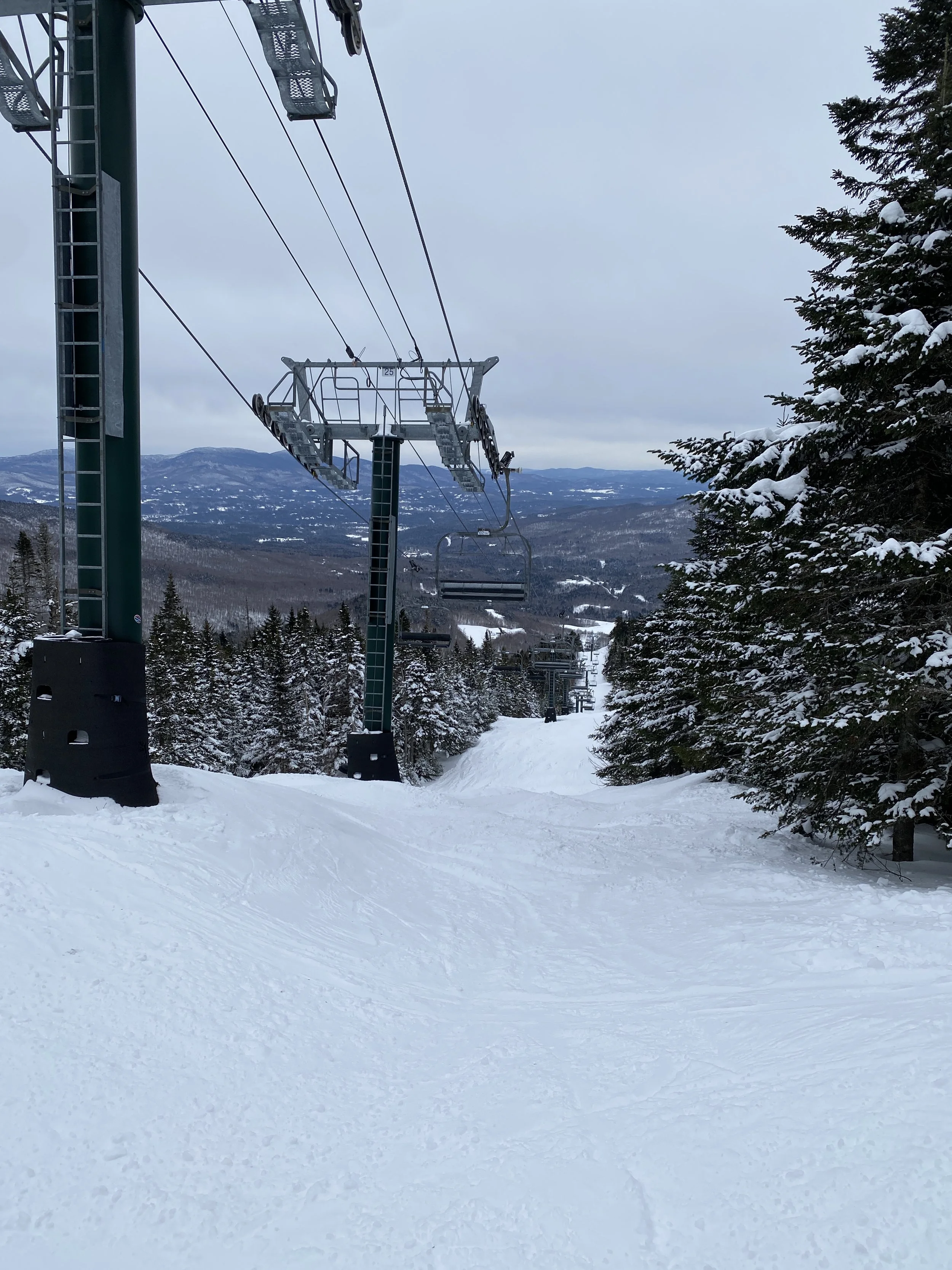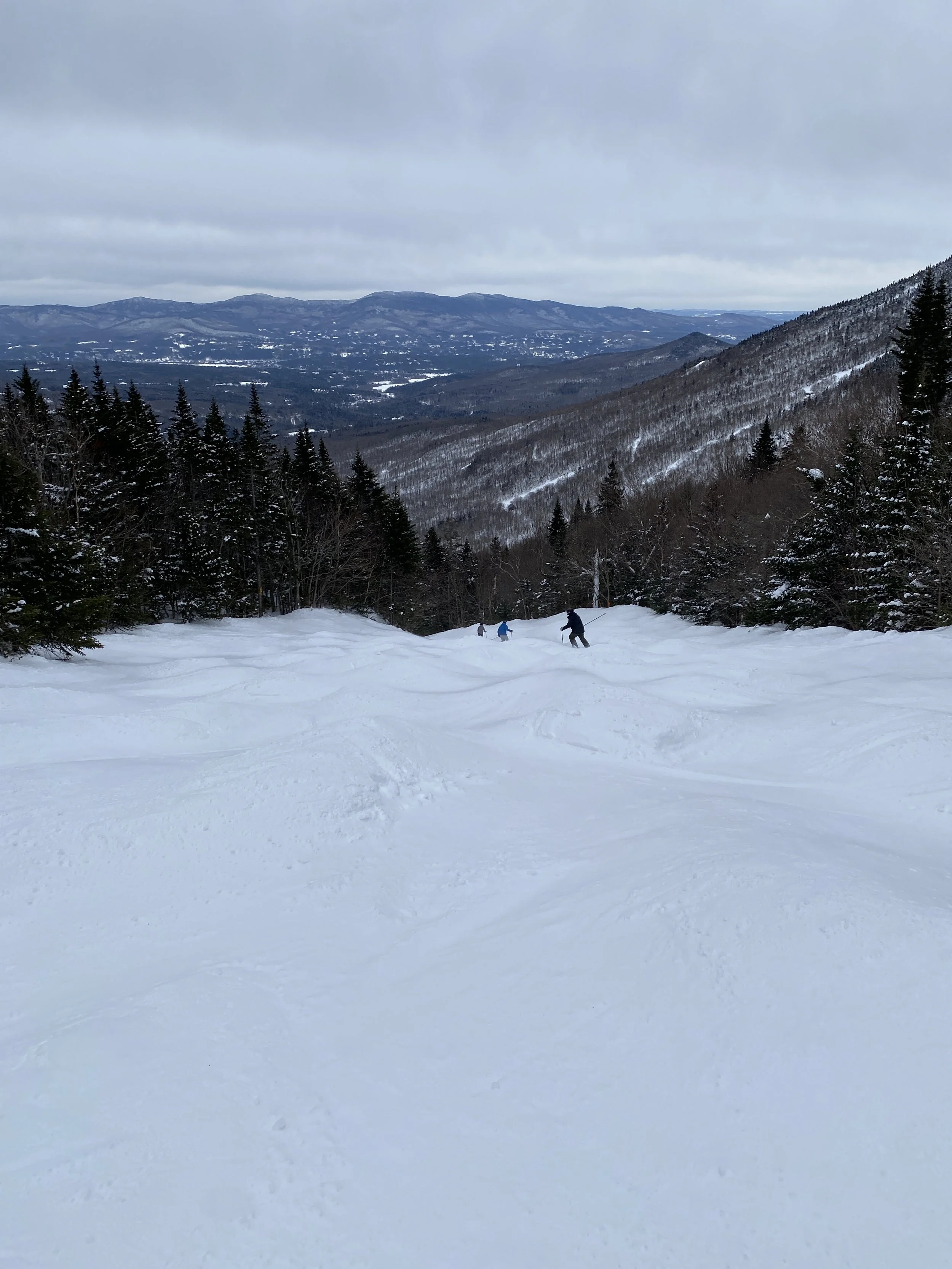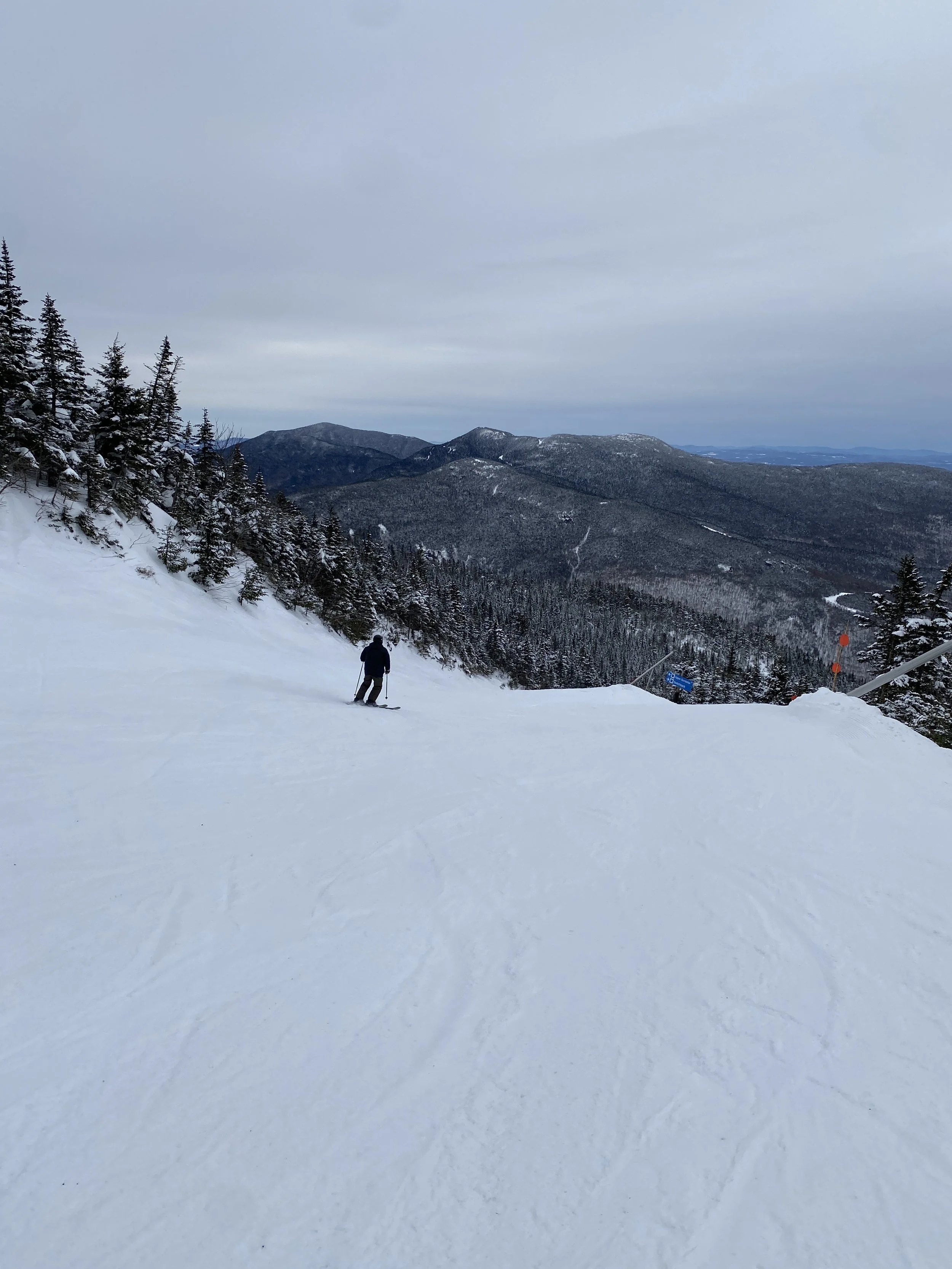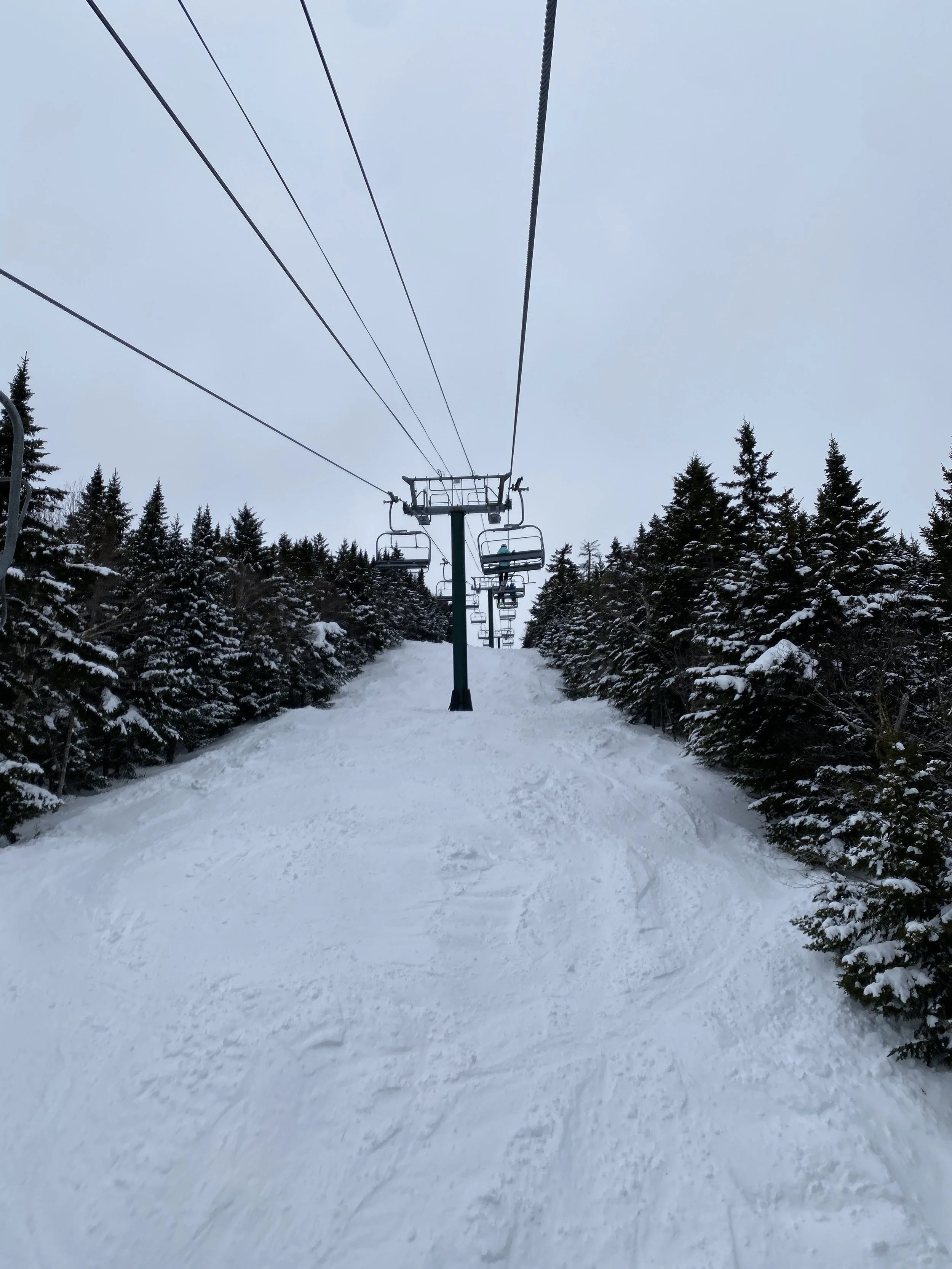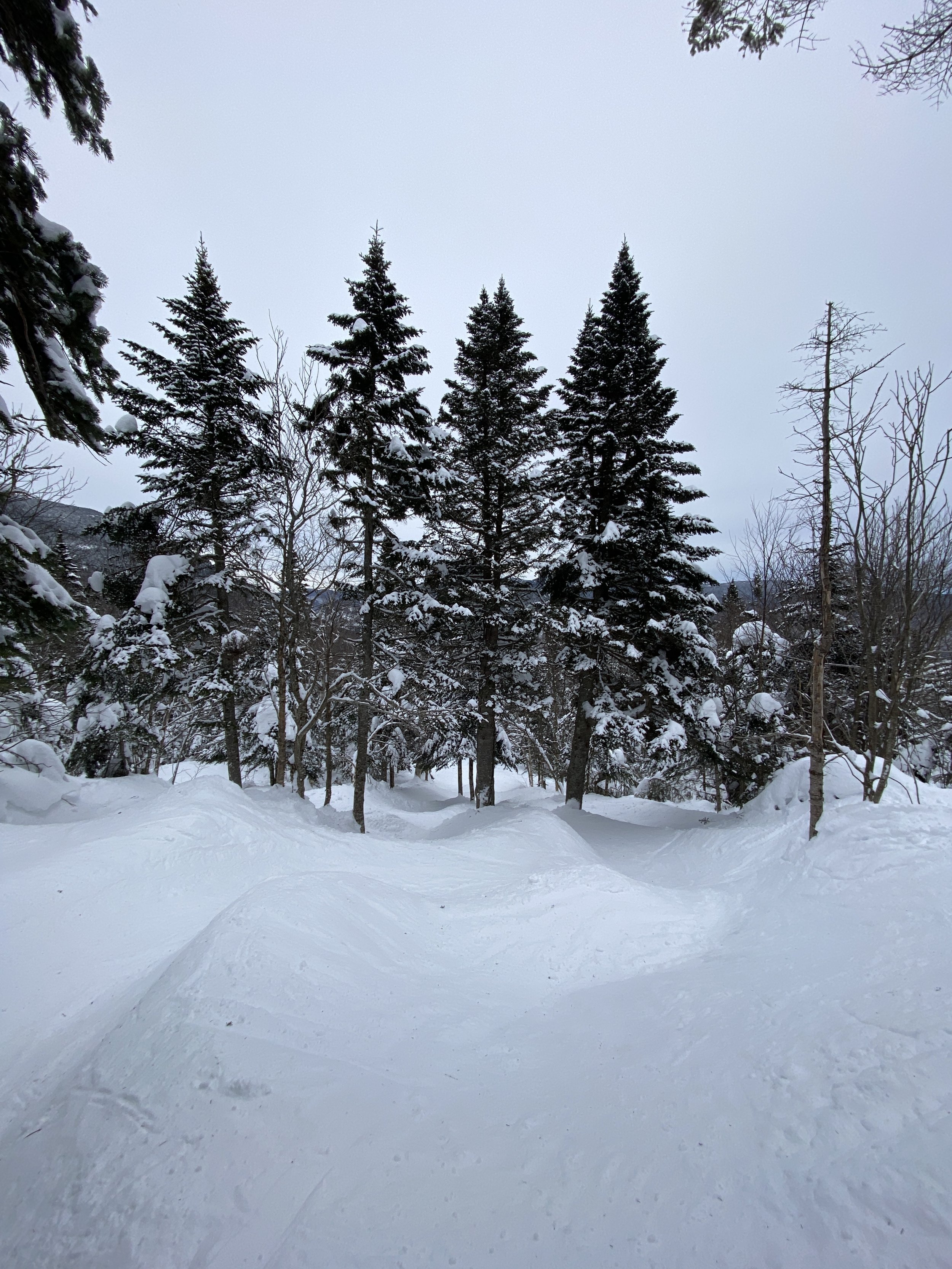 Conditions were a mixed bag. Most of the groomers on Mount Mansfield were fairly firm. Some of the notably icy runs included Nosedive, Liftline and Hayride. The groomers over at Spruce Peak were in better shape, and were probably the best groomers we skied all day conditions wise, with mostly packed powder everywhere. The natural snow trails were a bit more reliable, with conditions being overall better on them. My favorite natural snow run of the day was probably Chin Clip. The bumps on it were a manageable size and the snow was decent enough.