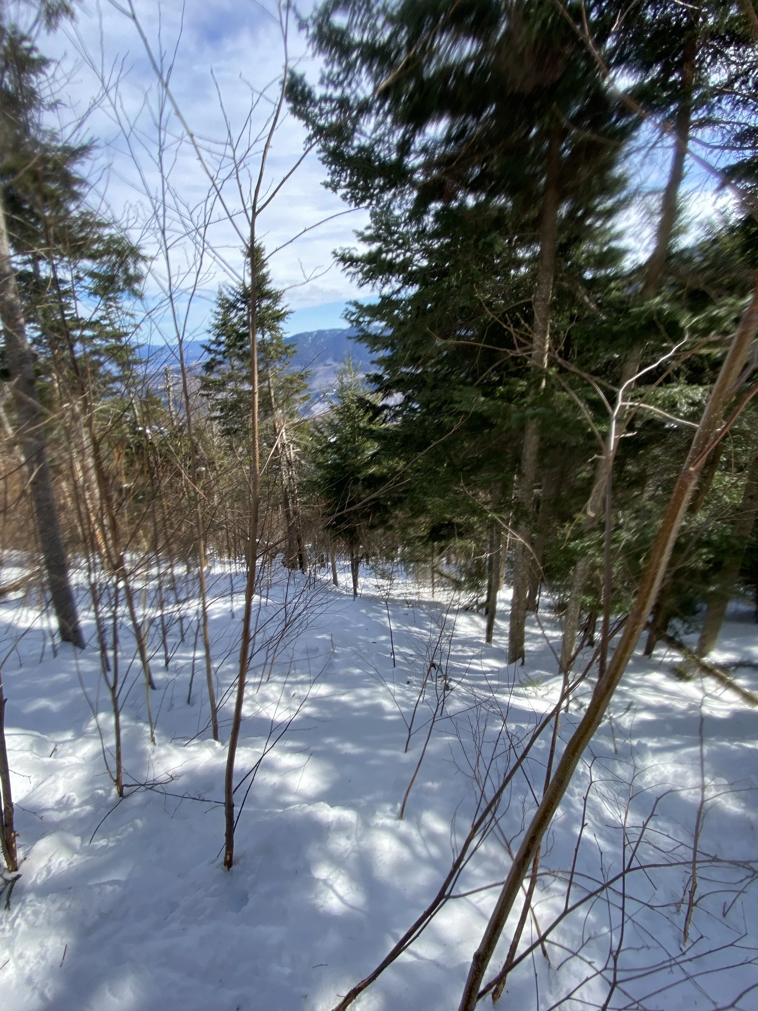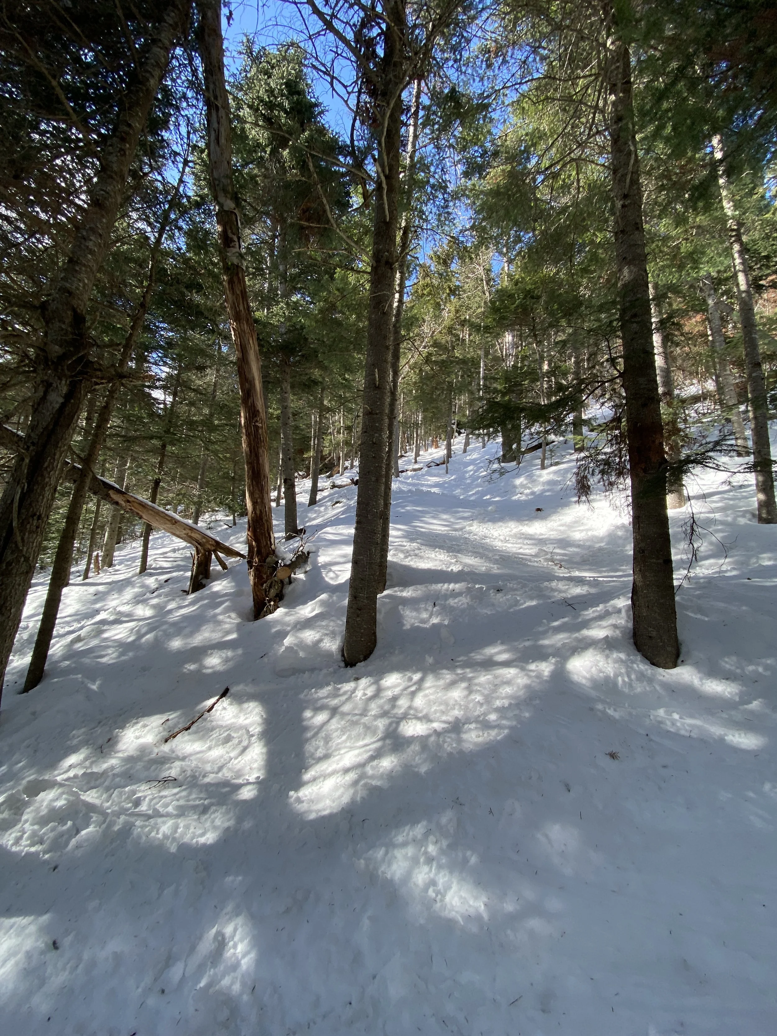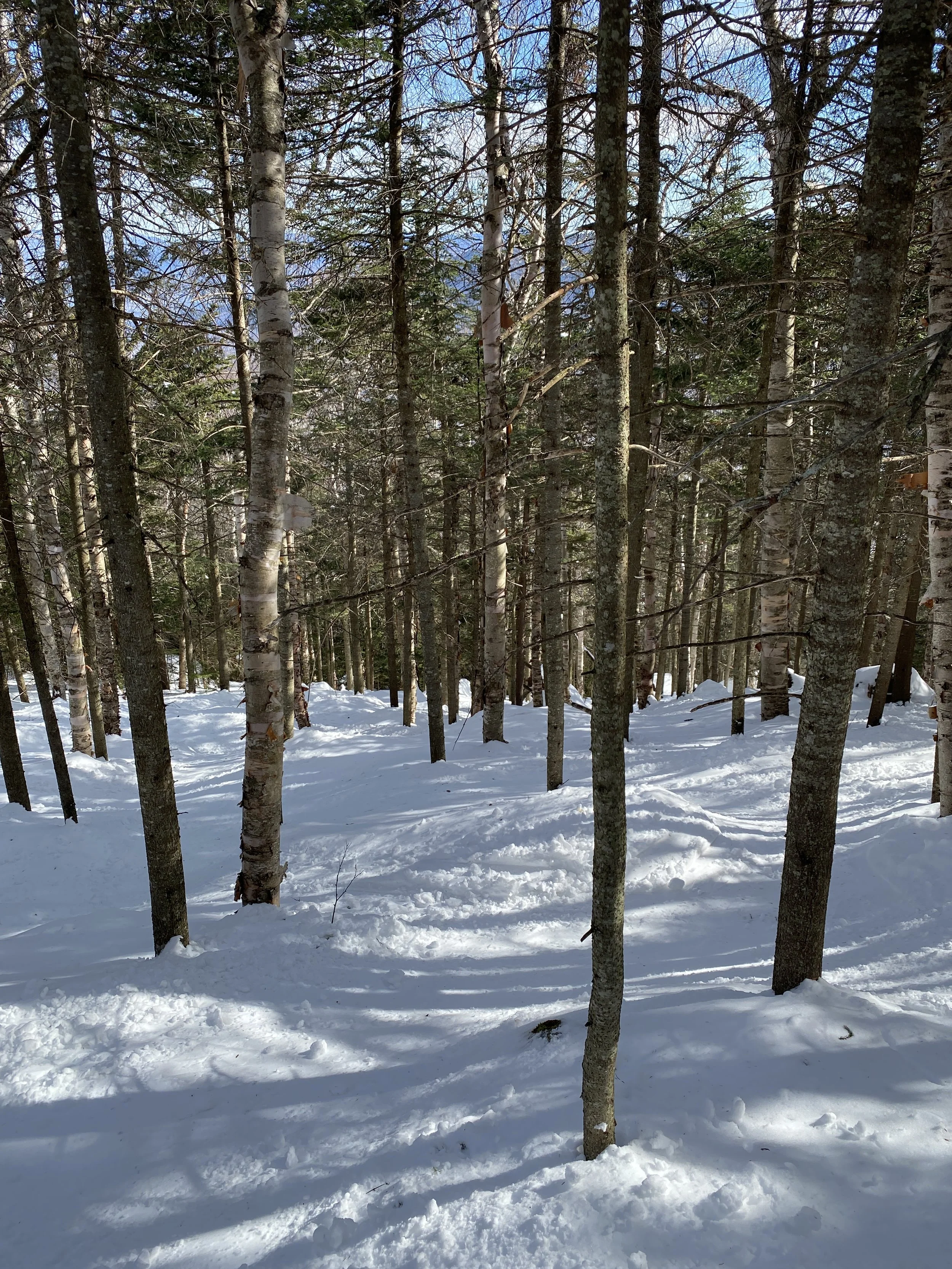 For the first time ever, I skied Rand’s Last Stand off Hoyt’s High. This glade is tight, steep and long. There were plenty of rocks and roots poking through it today, and the snow was heavy in areas that weren’t tracked out. This glade could really use some TLC. There’s some grown in areas and, at times, I found it difficult to follow where I was supposed to go. The lower part was fun, as it was a bit more open and clear. The top part would probably be fun with a lot of fresh snow. Today, though, I didn’t have the most enjoyable experience. I’ll ski it again someday, but it’s low on my list of favorite glades at Whiteface.