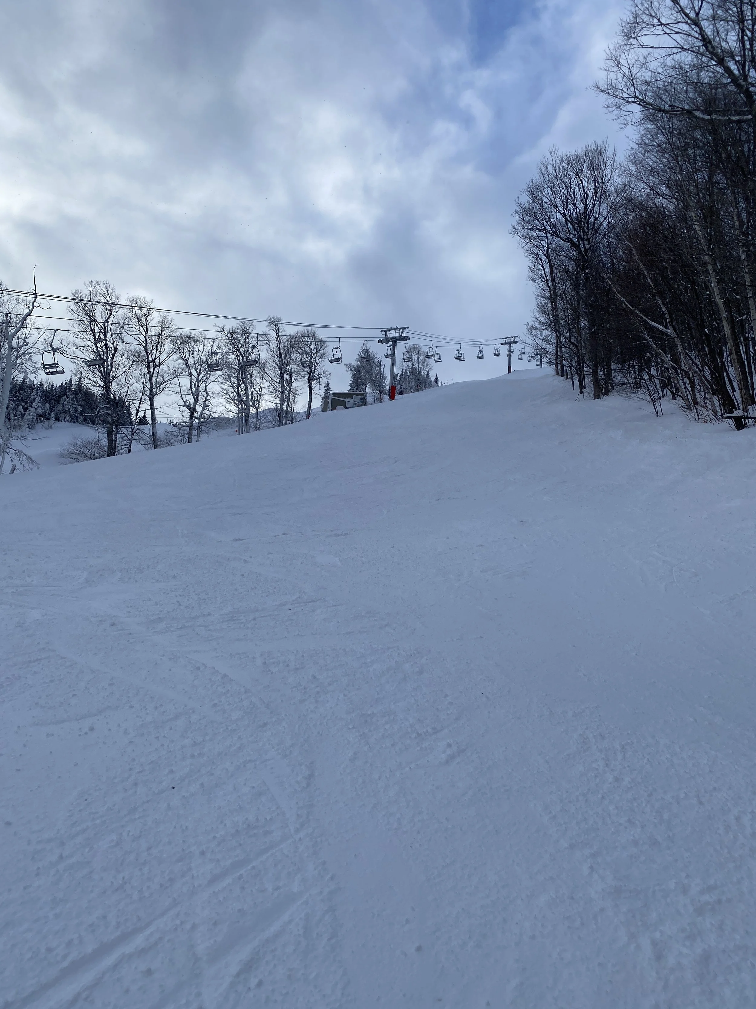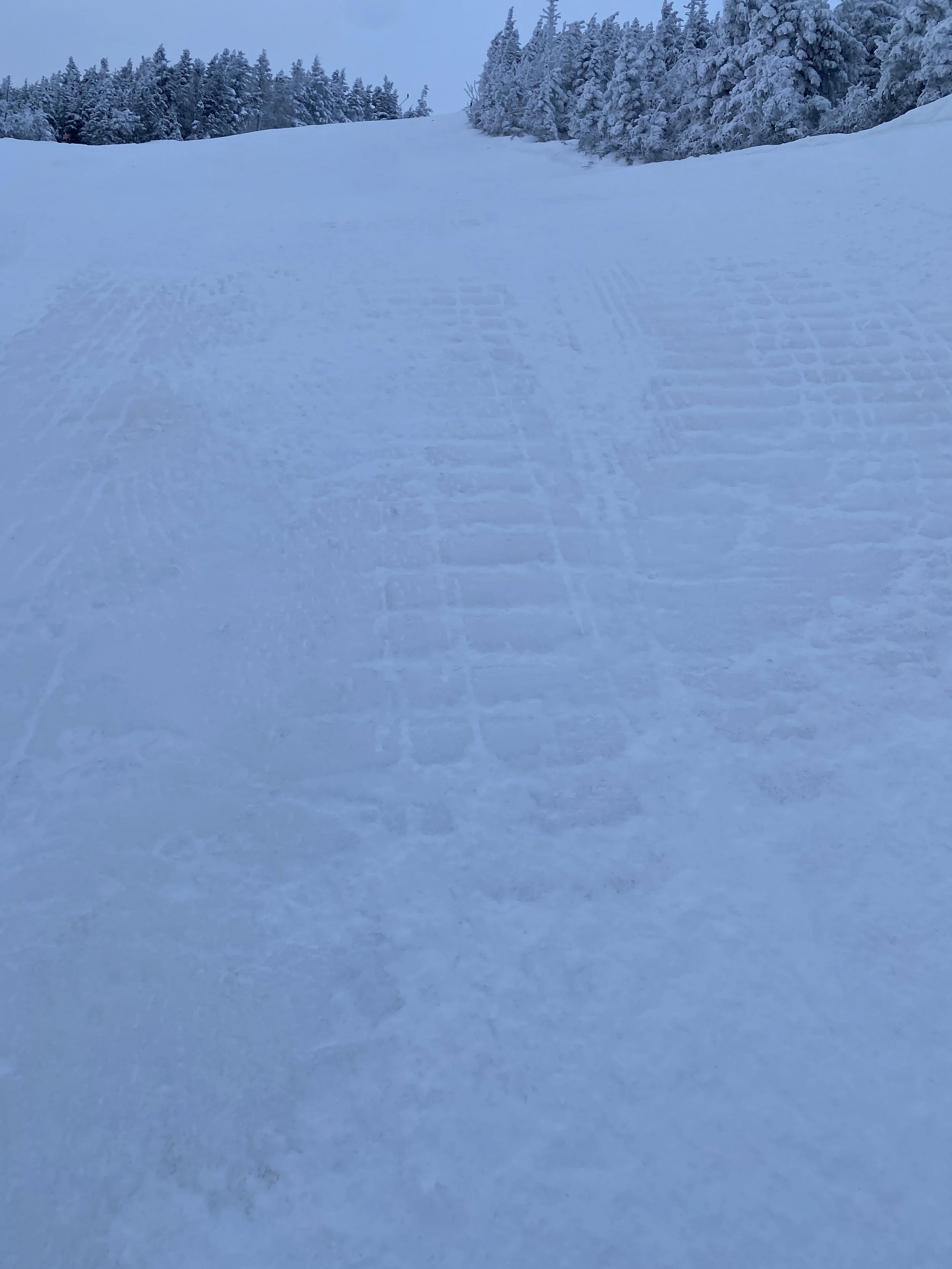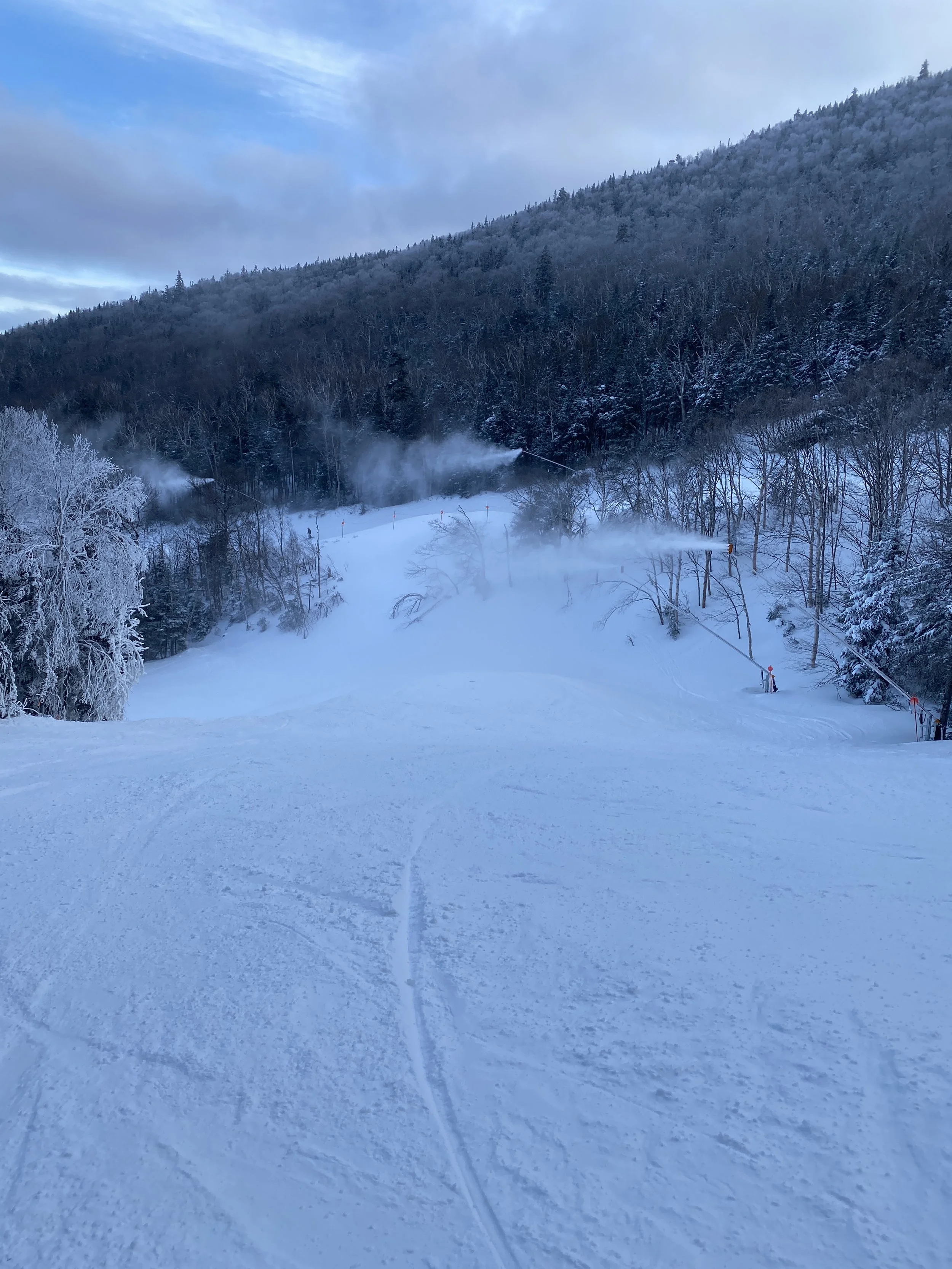 Elsewhere on the mountain, you could find slick spots here and there alongside the packed powder. Some trails, like Excelsior, had whales on them and they were actively making snow in a lot of places, including Excelsior, Lower Northway and Boreen, as well as several other trails. I found the snow coming out of the snow guns to be sticky in some spots, and with my toe bothering me, I was extra cautious anywhere it was being made.