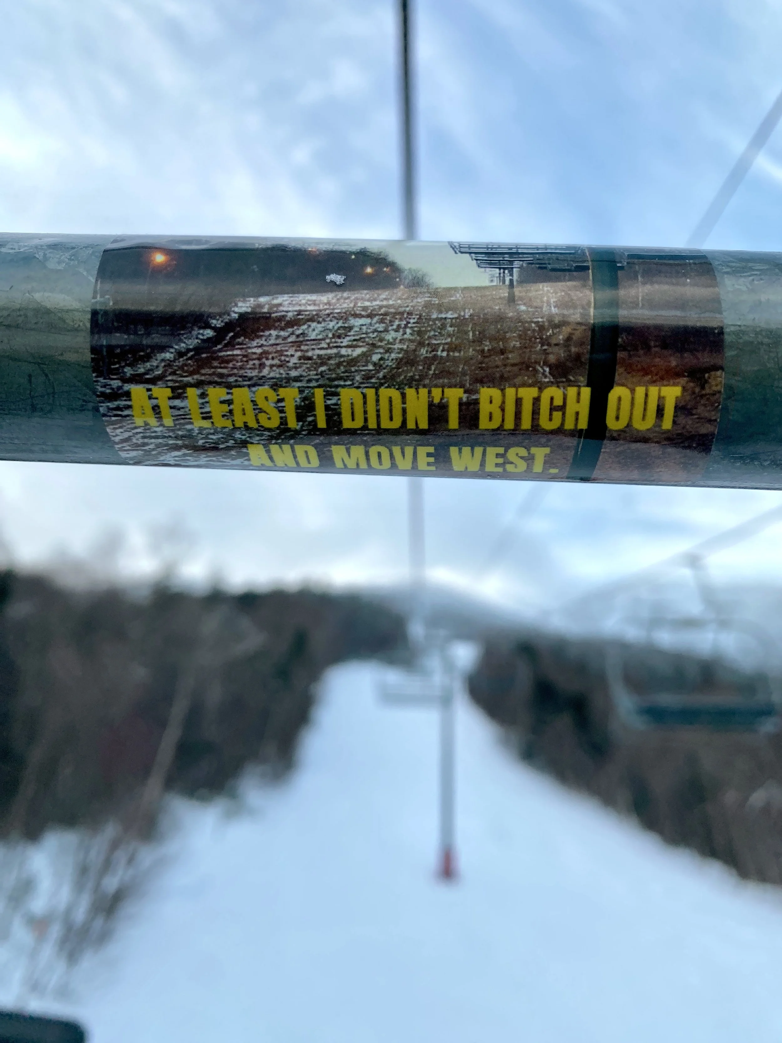 A funny sticker on the Summit Quad.