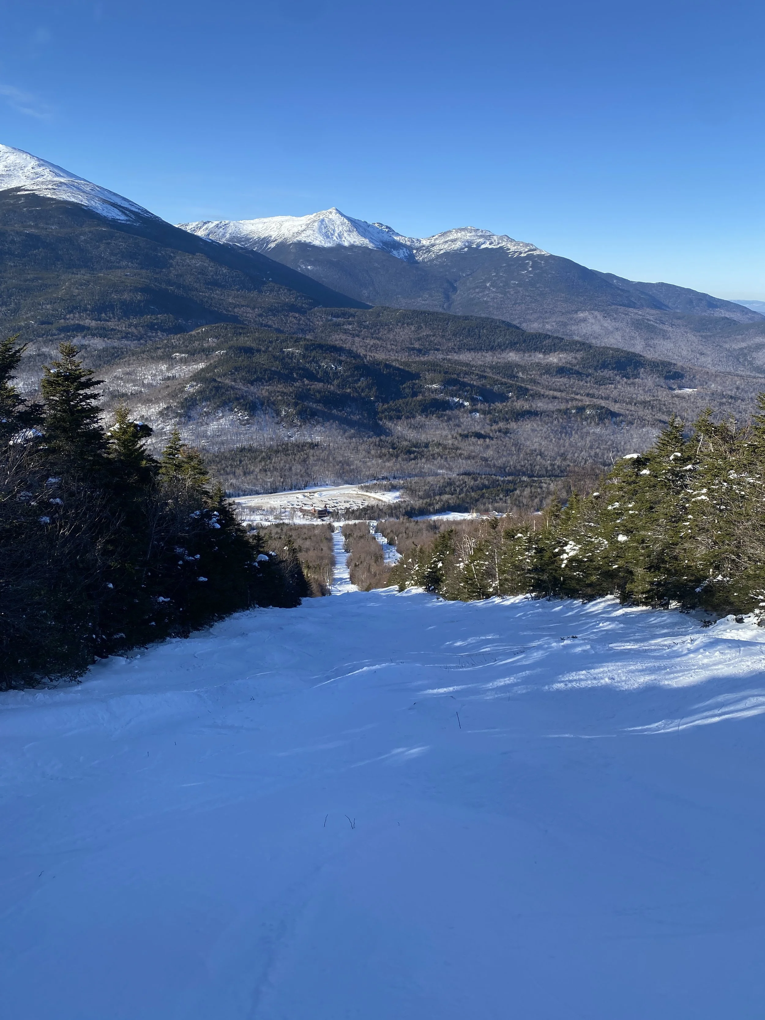 From Stowe’s stunning views of Mount Mansfield, to the numerous lookouts and vantage points at Whiteface, there are a lot of ski areas in the East with great views. But there’s one mountain in New Hampshire that may have the best of them all. I’m a sucker for a good view, so this morning I headed to where the license plates say “LIVE FREE OR DIE” to ski with one of, if not THE, best views in the East.