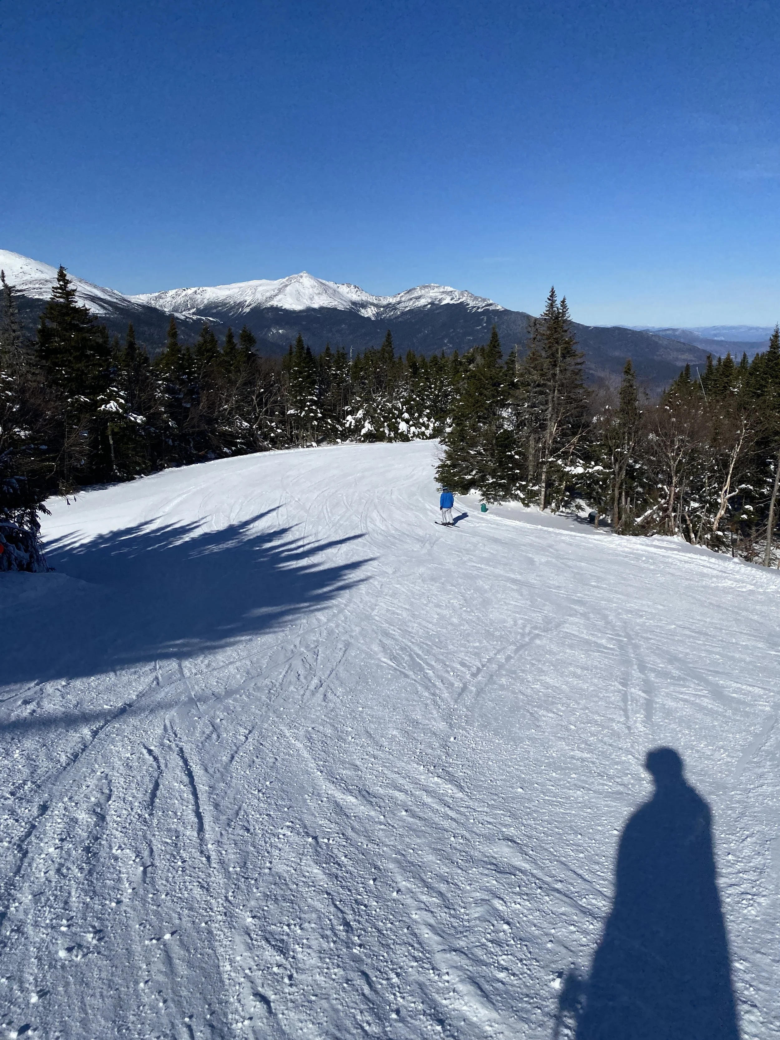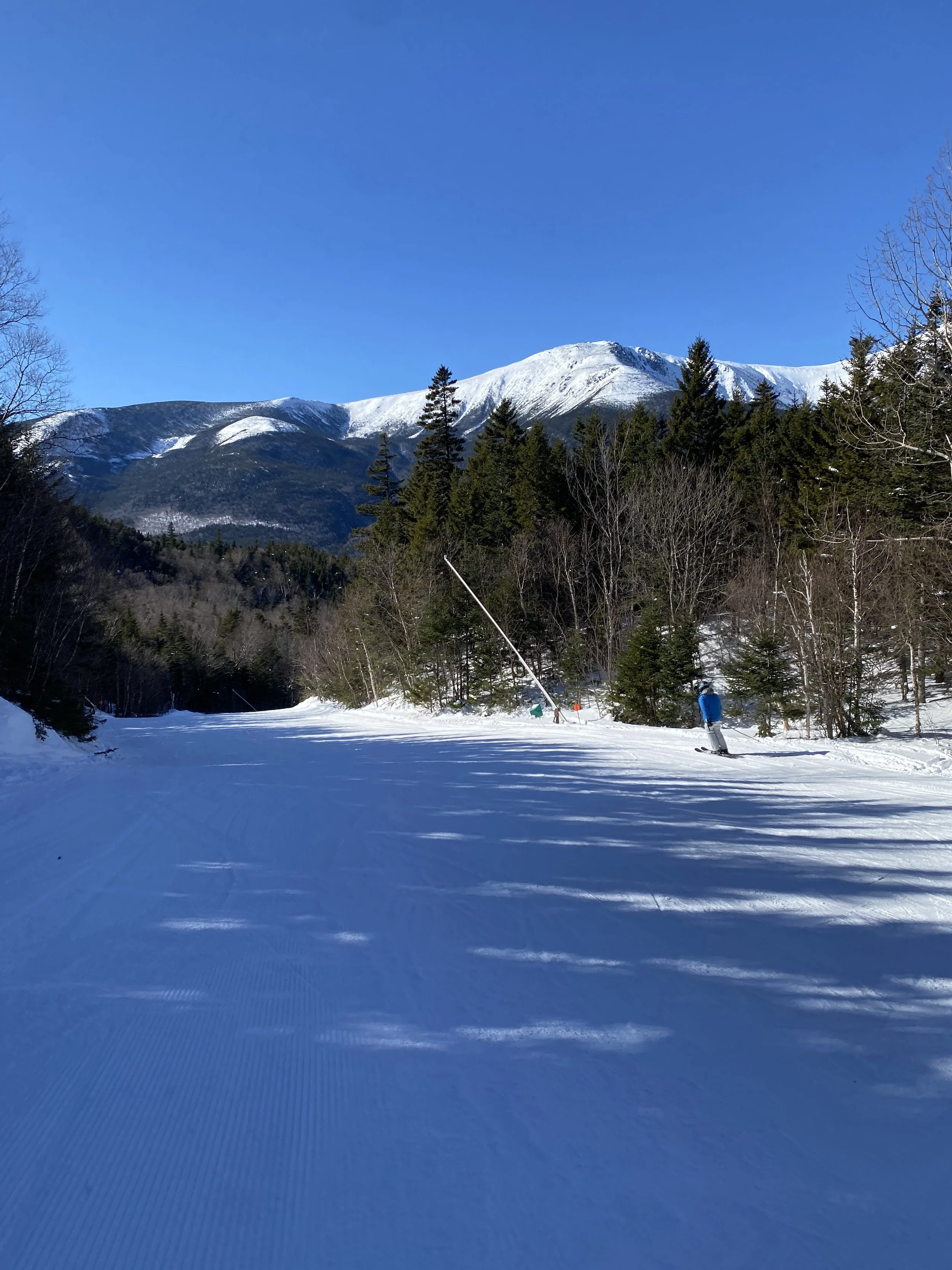 I got to Wildcat at about 10 a.m. The weather was excellent for a Wildcat ski day. There wasn’t a cloud in the sky and the view was on full display. The mountain was empty, though I did manage to find none other than Pro Skier Darren White hanging out in the lodge listening to Huey Lewis and the News. That’s his favorite band, so no surprise there.