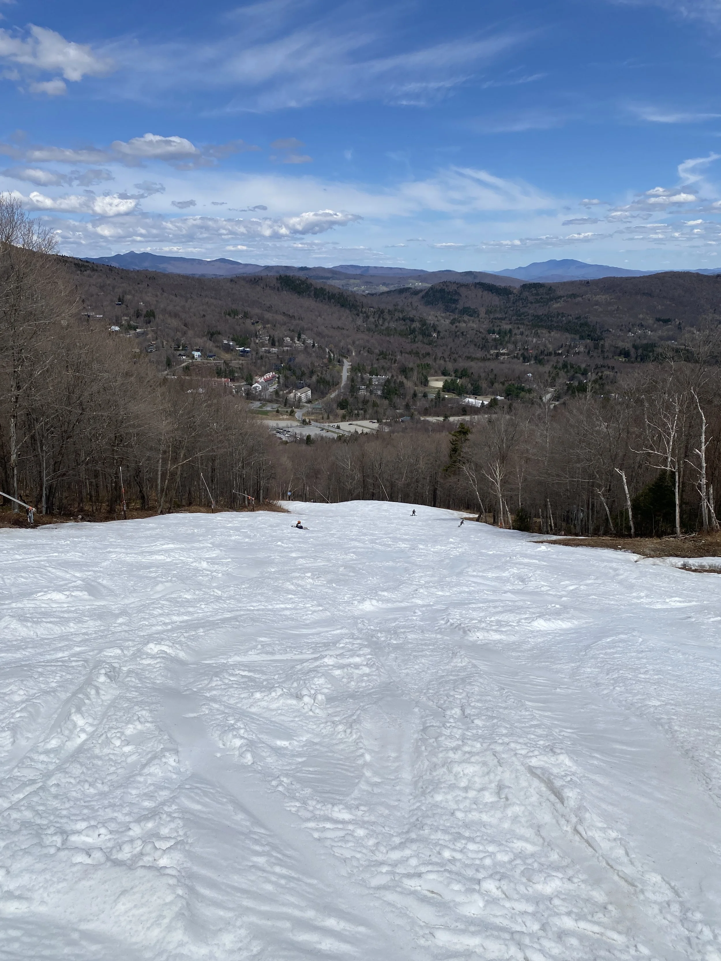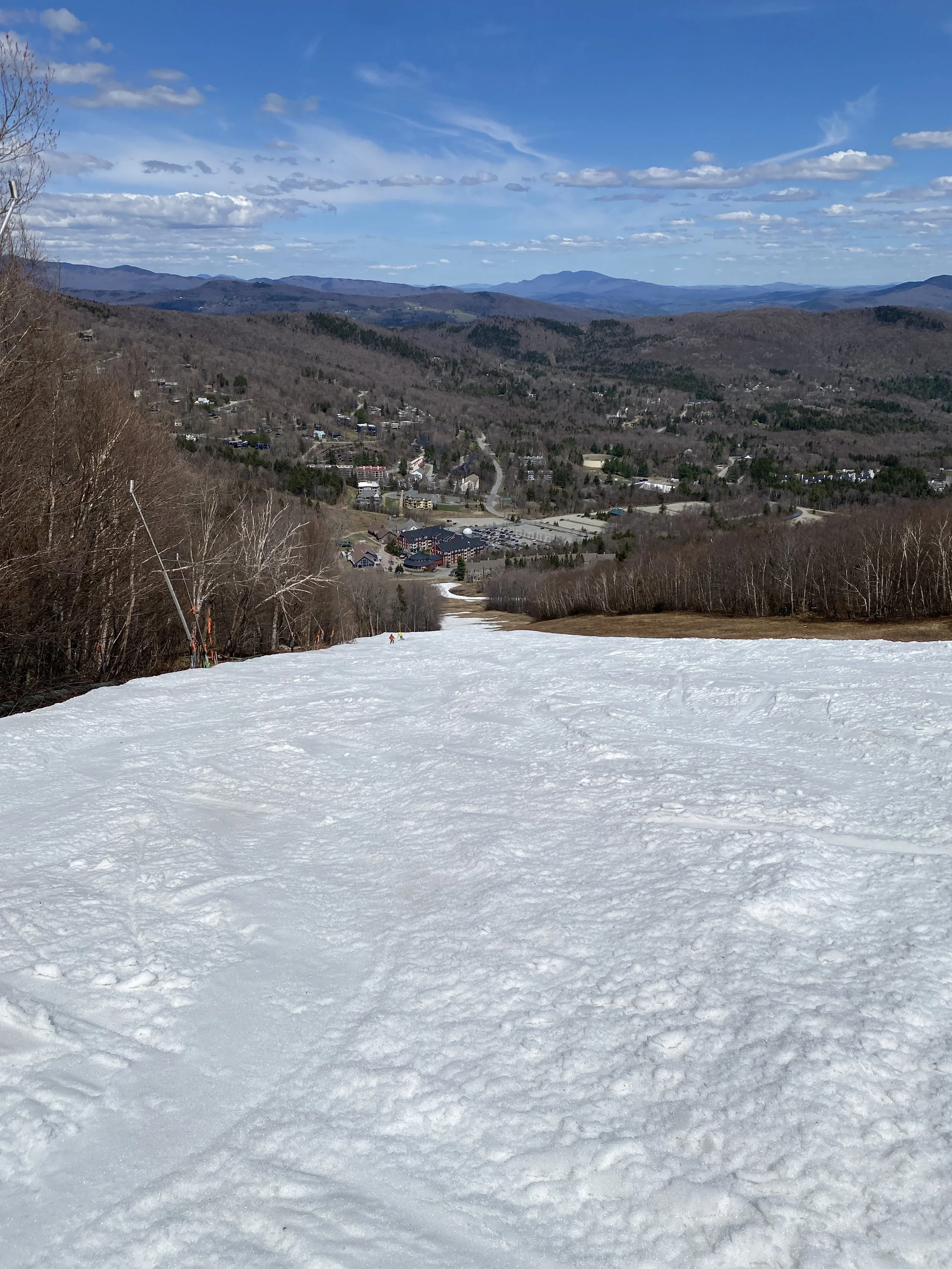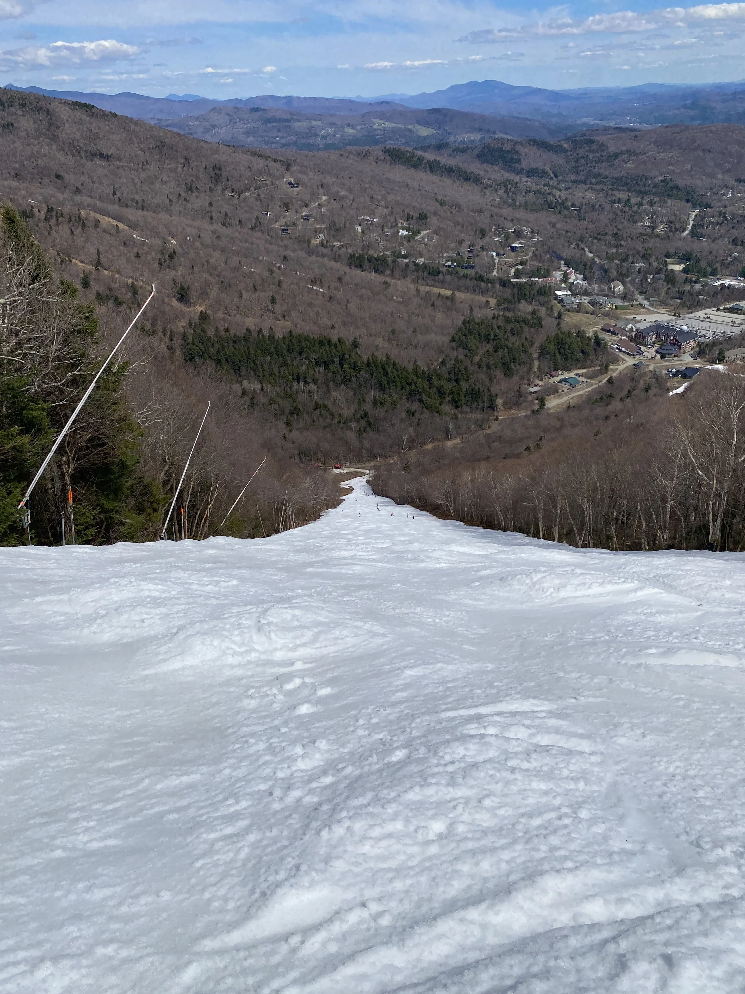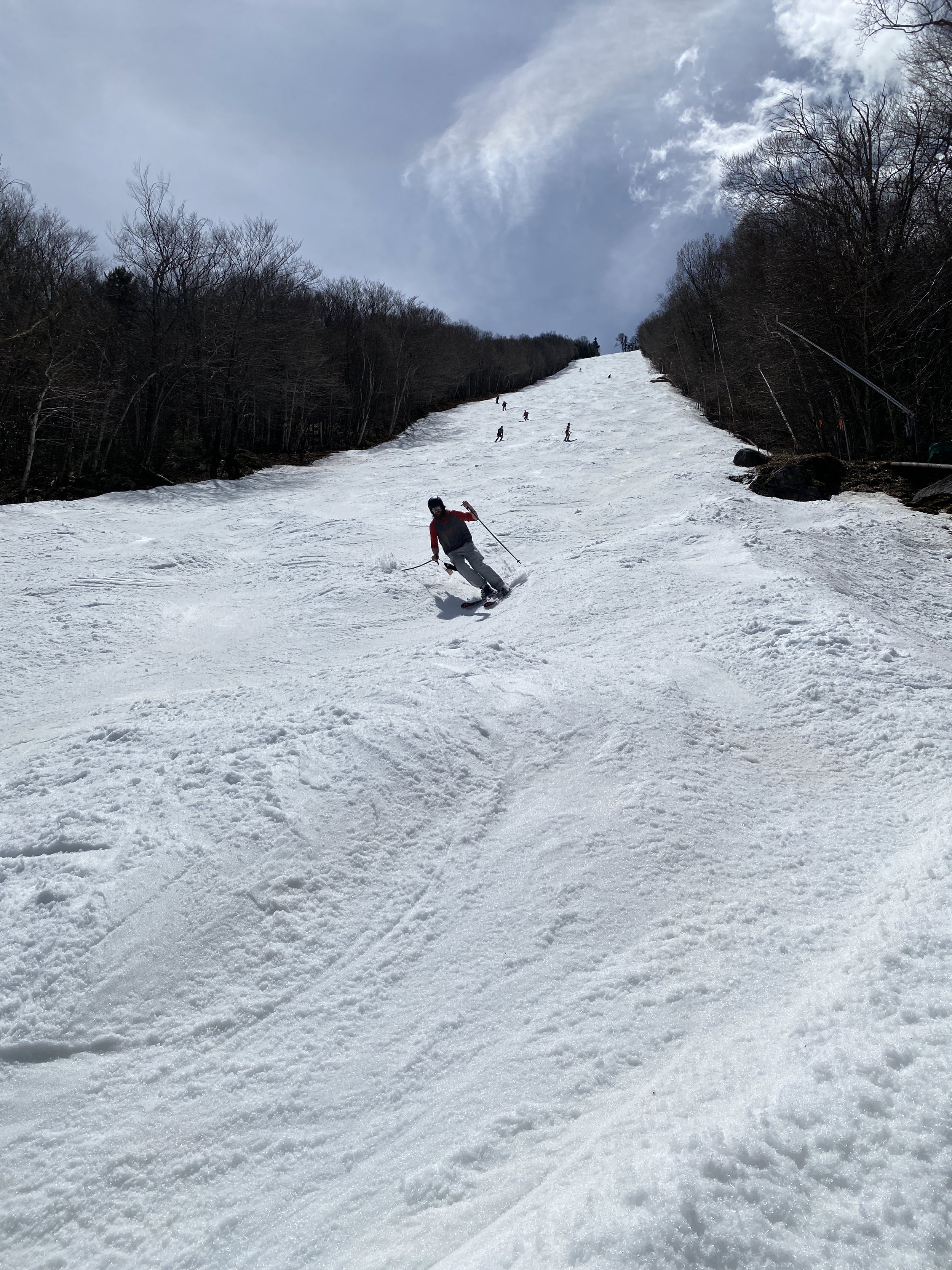 They had six runs open, all of which were accessed by the Valley House Quad. The six open runs amounted to three ways down: Stein’s Run to Coffee Run, Snowball to Spring Fling, and Snowball to Lower Snowball and Racer’s Edge. Given how nice the weather was, I figured the mountain would be a little busier than it was. With the light crowd, you were able to just ski right on to the lift, which was nice.
