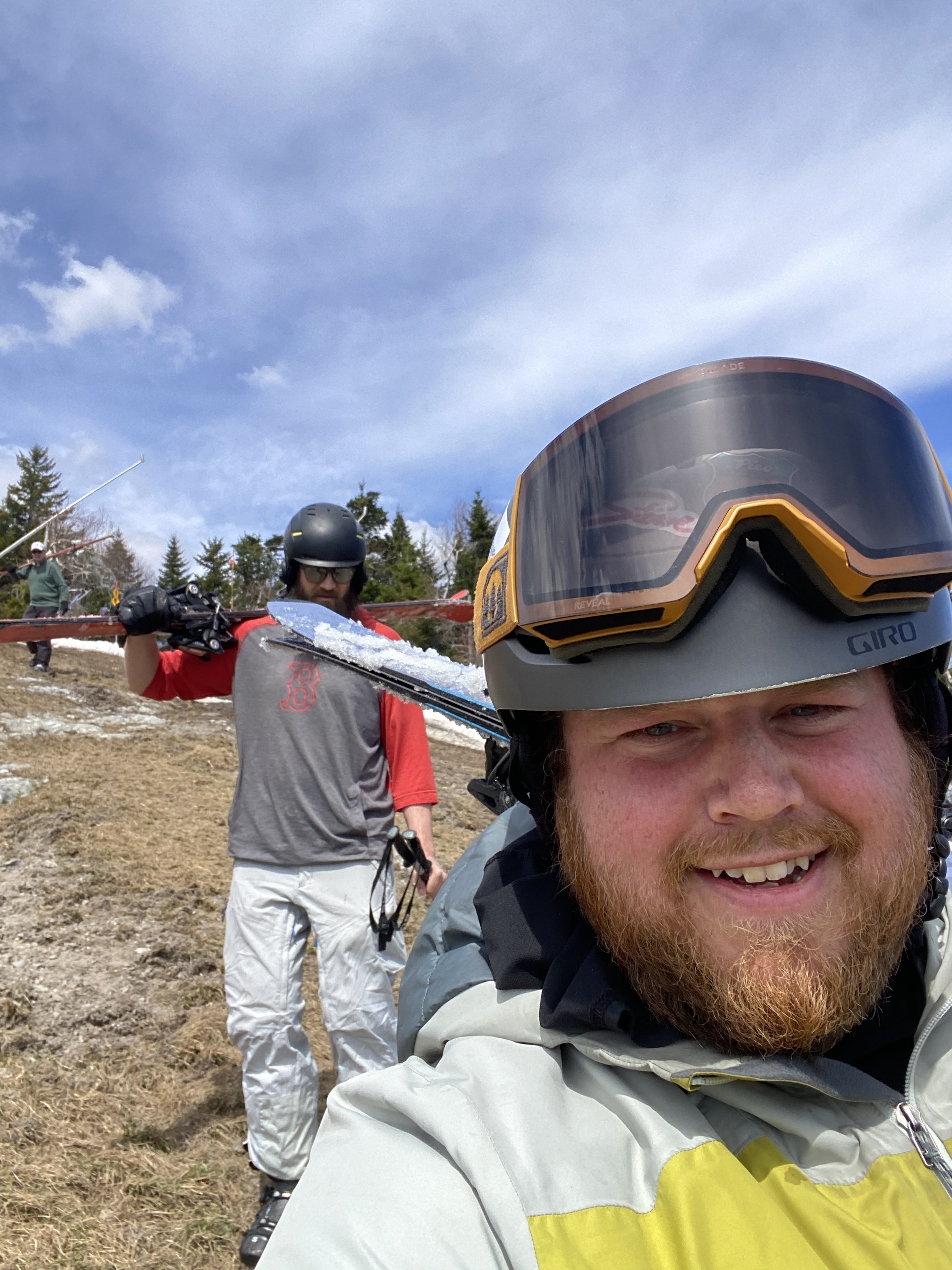 After skiing Stein’s, we went on an adventure down Snowball. There was a sign at the top warning that walking was required, and it wasn’t kidding. The very top of the run was skiable until maybe about halfway down, and then you had to pop off your skis, unless you’re an absolute animal who can ski dry grass. I’m not an animal, so I had to pop them off. The walk was actually fairly significant, and not a ton of fun in ski boots, but overall it wasn’t too bad.