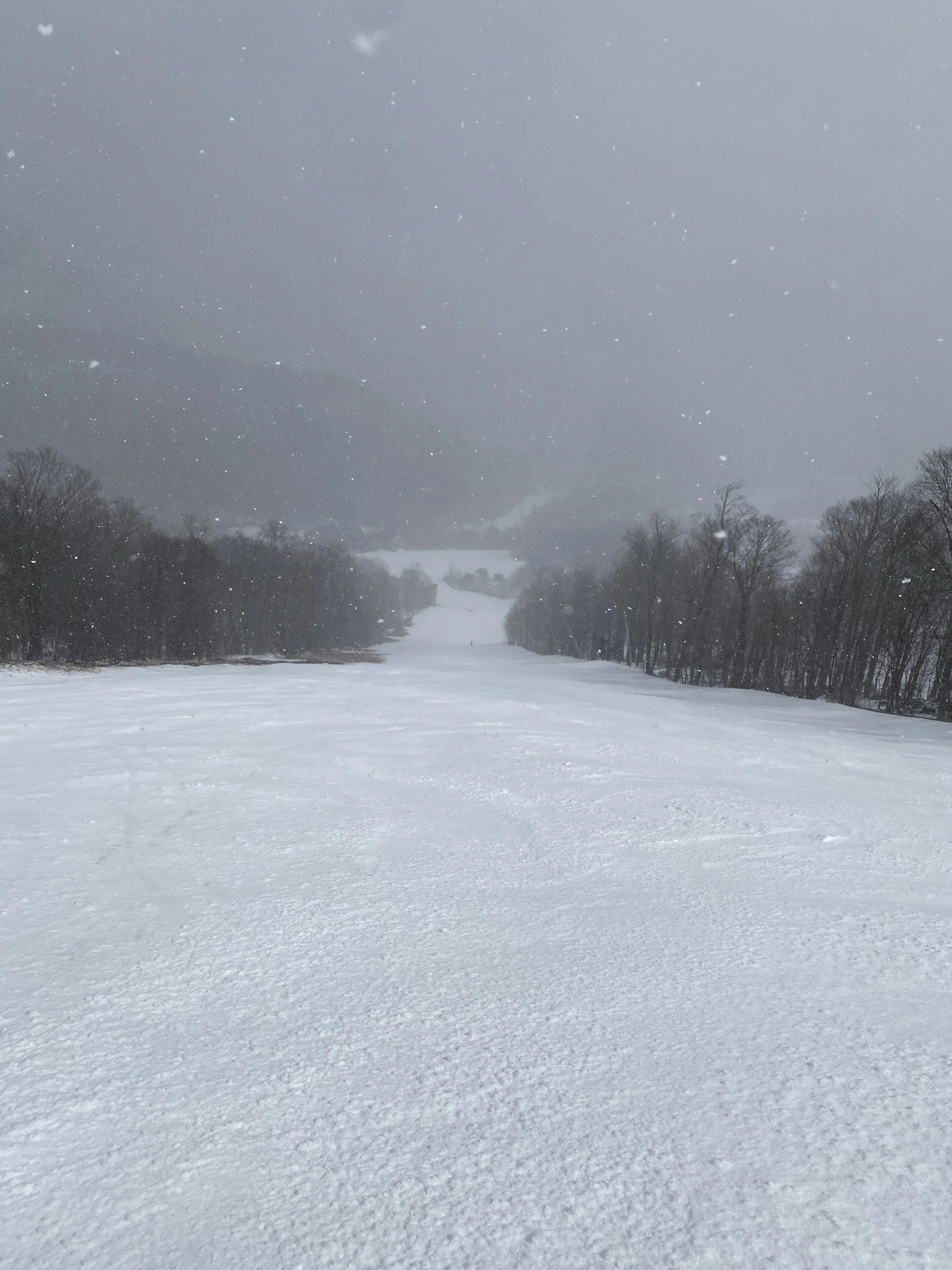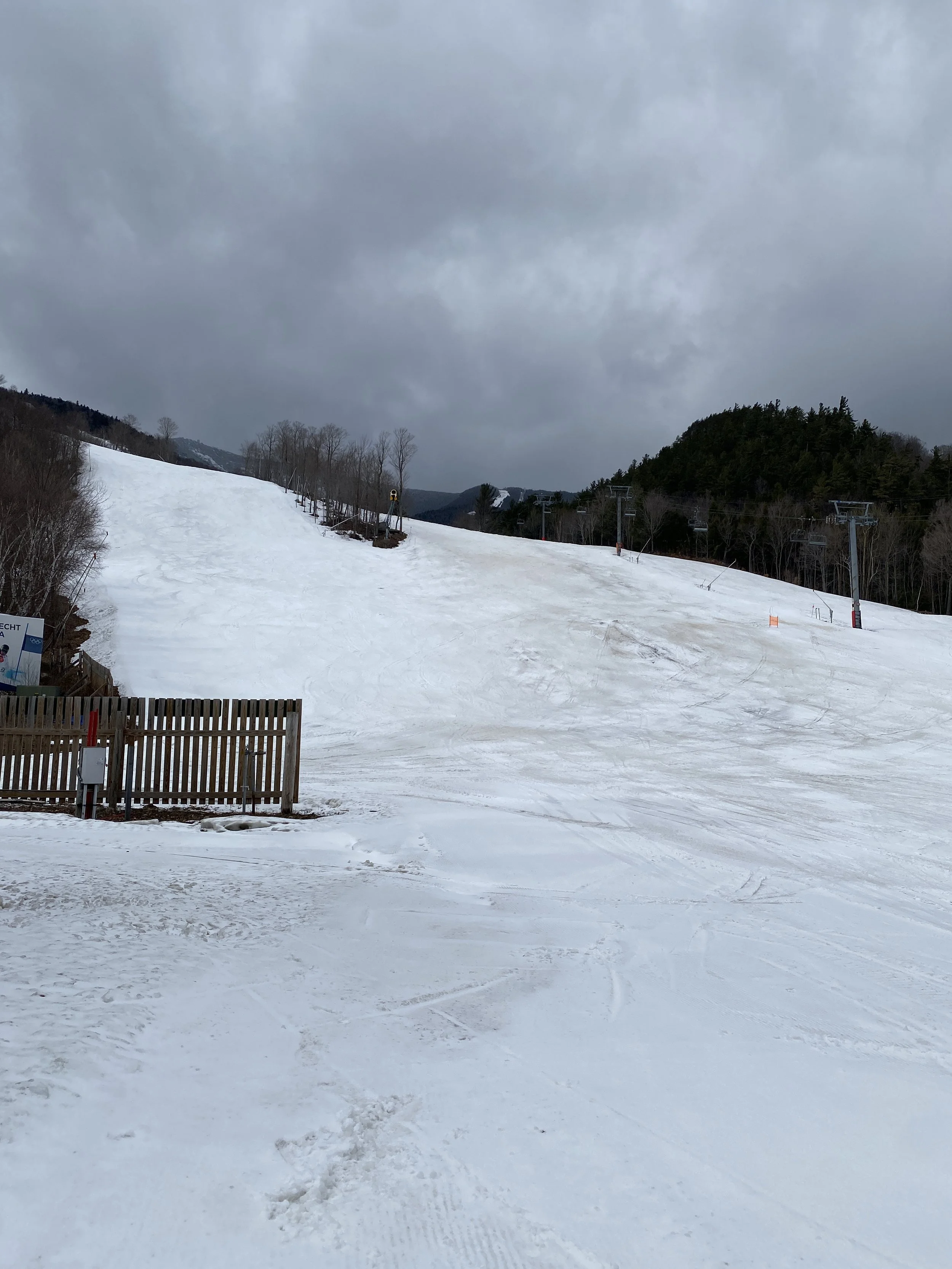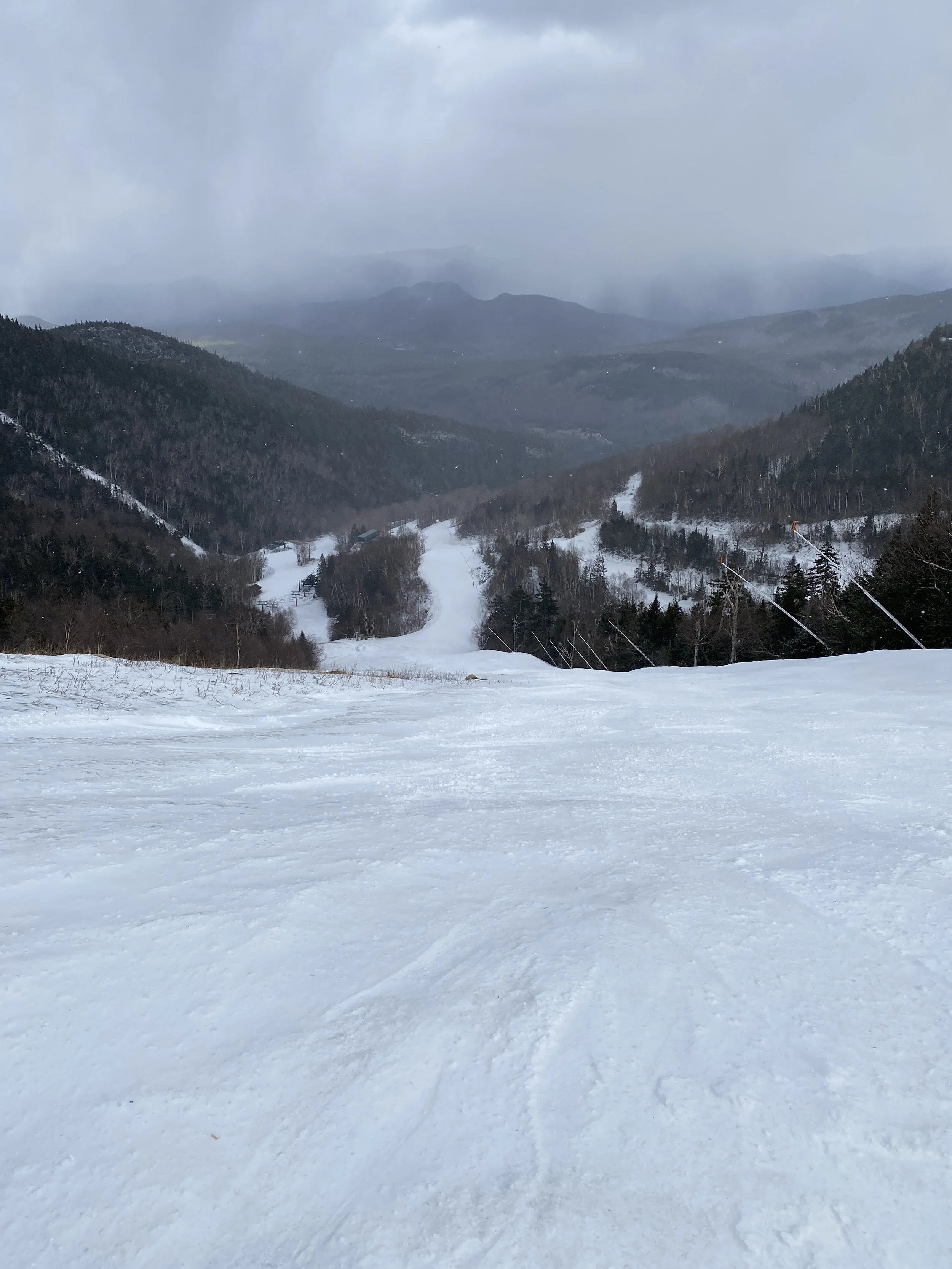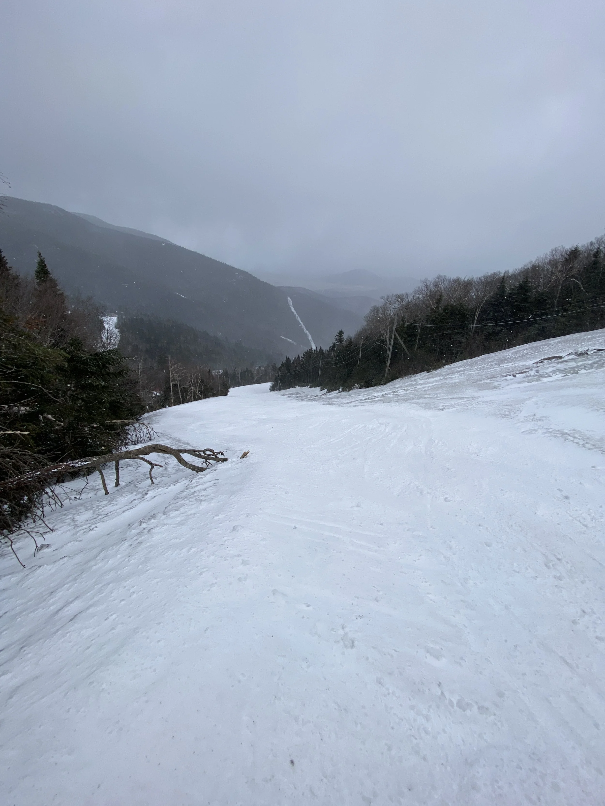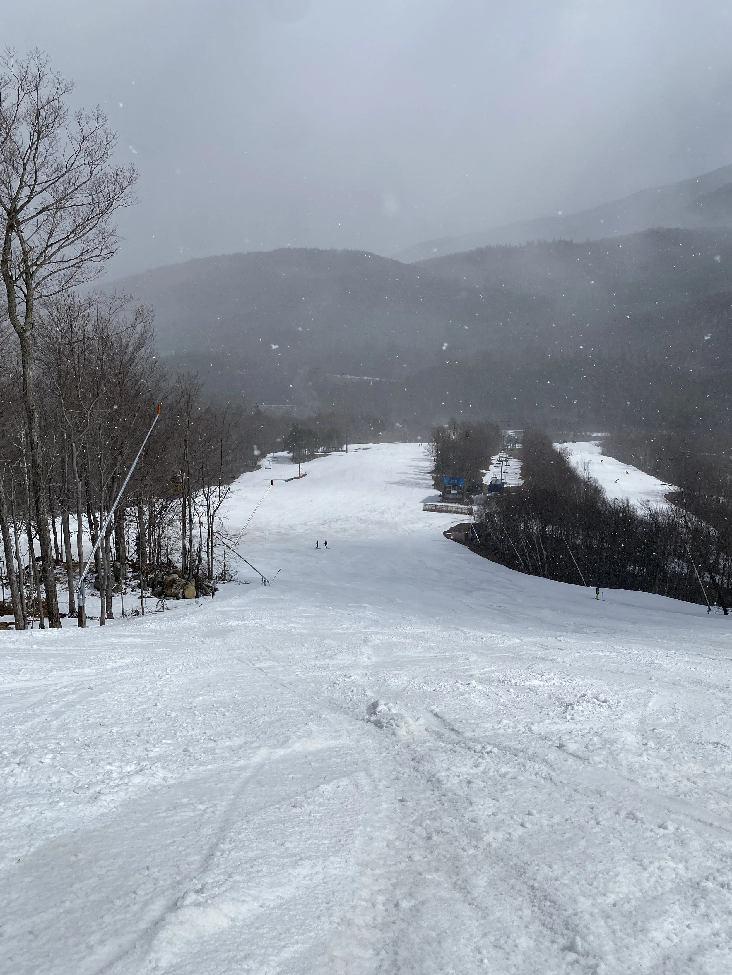 It felt like a winter day at Whiteface this afternoon. It was cold, at least relative to what it’s been, and there was snow in the air. The snow came down heavy at times, and it did accumulate a little up high. That said, it was really nice for it to just feel like winter once again. There aren’t many days left like this in the tank this season, though tomorrow does look to be a repeat, albeit with more snow.