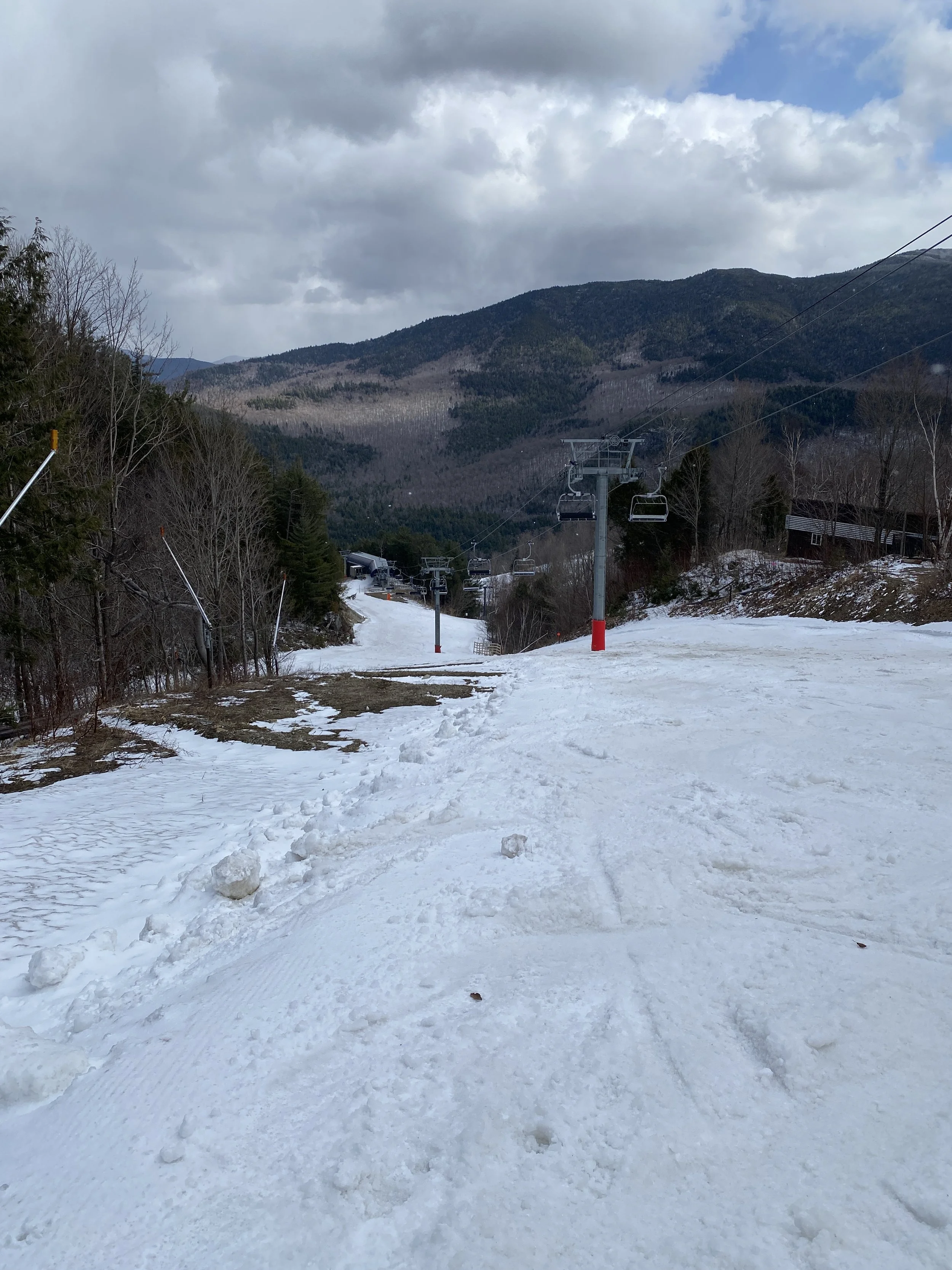 There are a couple of notable thin spots around the mountain. The entrance to Paron’s Run is now a narrow path, and a part of the left side of the run is down to bare rock. Victoria’s bare spot near the top is starting to spread further across the run. It’s also much longer than it was. Boreen’s bare spot near the start of the trail is also starting to spread across the run. Lower Skyward has multiple bare spots that are starting to get large or are large. It’s April 6, so this isn’t necessarily surprising, but it’s worth noting.